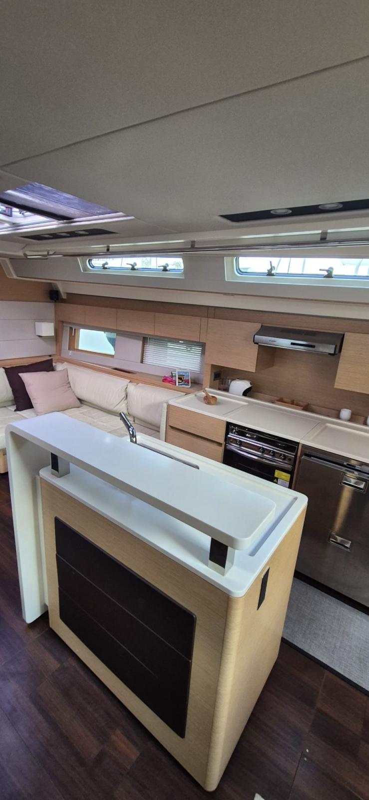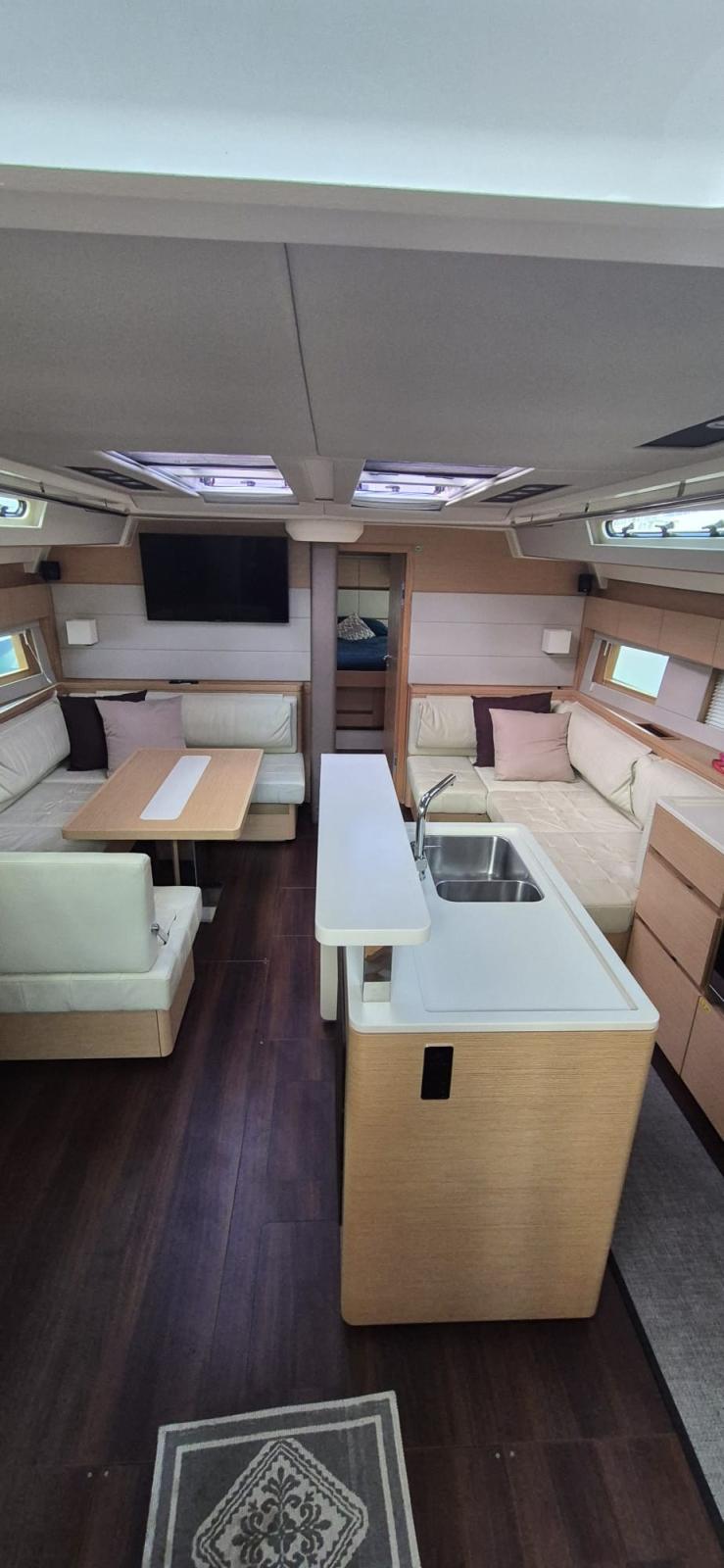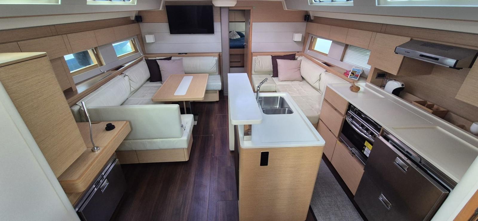 Hanse 588 de 2018 Version propriétaire, propriétaire unique, 4 cabines et 2 salles de bains, pont de voile, 7 piles (1x90 A, 4 x 200 A + 2 x A), chargeur 100 A et Code 0 de 2023.