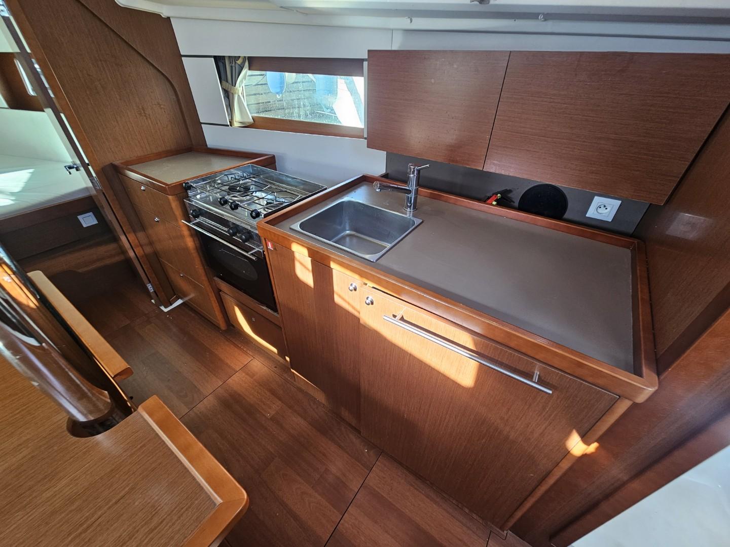 L’aménagement intérieur de cet Océanis 35 en version 2 cabines privilégie l’espace et le confort. À l’arrière, une belle cabine propriétaire offre un couchage spacieux et lumineux avec de nombreux rangements. La cabine avant complète l’ensemble pour accueillir famille ou invités. Le carré convivial et la cuisine en L fonctionnelle créent un espace de vie agréable et chaleureux. Le chauffage Webasto assure un confort optimal en toutes saisons.