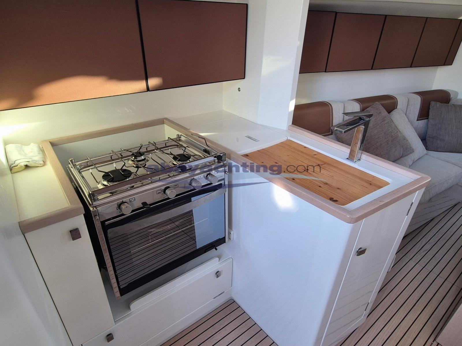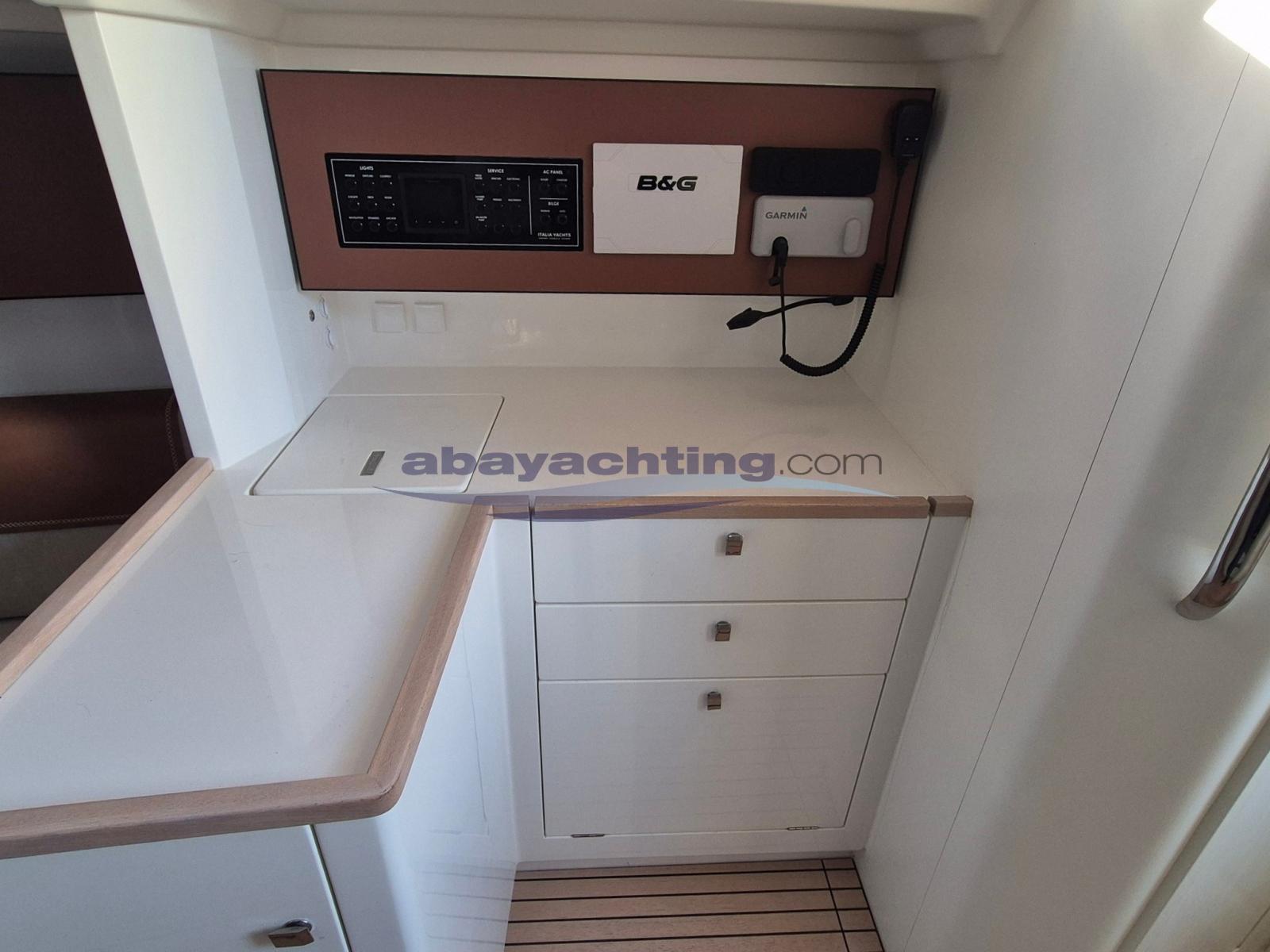 Équipé d'un double jeu de voiles : grand-voile et foc à lattes intégrales en Norlam + grand-voile et foc en Quantum-Sail (ex-démonstration), gennaker North Sails, 6 winchs, capote, hublots doubles dans les cabines arrière (en option), table de cockpit amovible, gréement en tige et électronique B&G complète avec pilote automatique et AIS.