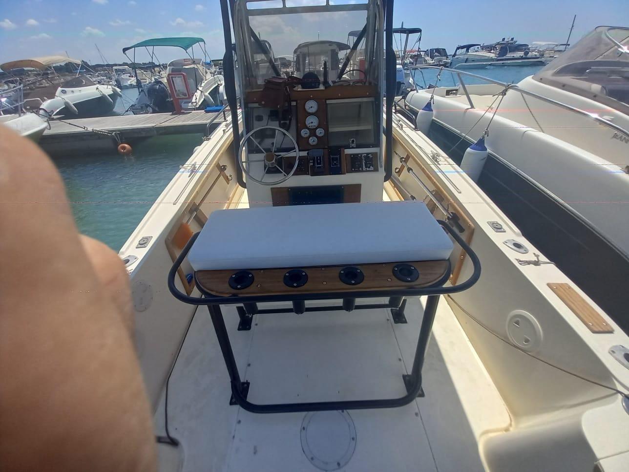 Moteur d’étrave Minnkota de 112 lbs de poussée, avec batterie portable 36V 100 ah ; La remorque est une 35 q. rétrogradée en 27 27 q. avec treuil électrique ; NOUVEAU moteur Suzuky 250 ch 2008, Suzuky 15 ch actuellement 40 heures ; REMISE COMPLÈTE 2023 : système électrique, avec panneau à boutons-poussoirs activant tous les accessoires via la même connexion, idem pour les thermiques, pour chaque bouton correspond un fusible thermique, un guindlet d’ancre, un T Top, une rambarde, un éco / gps lowrance HDS 12 Live et un transducteur b275 LHW, enceintes sur T Top boss, fusion stéréo, lowrance VHF, double commande pour moteur de secours, coussins, carénage de sablage traitement préventif International Gelshiel 200, plaque de masse, restauration antidérapante ; NOUVEAU 2024 : Système de volets Bennet, nouvelle timonerie Mavi Mare ; la médiation de 5 % + TVA de 22 % à payer par l’acheteur (la TVA est calculée sur le montant de la médiation).