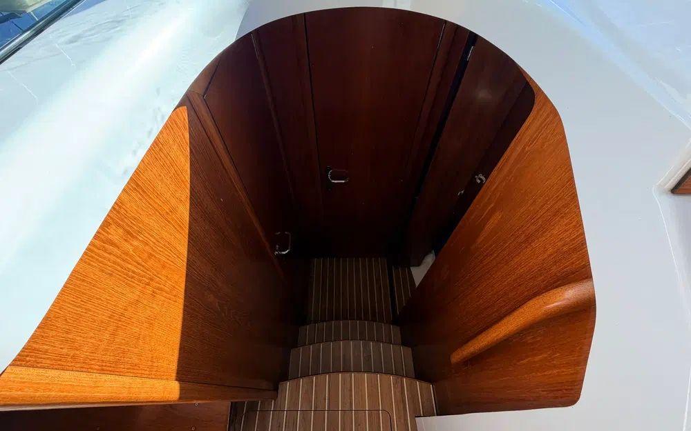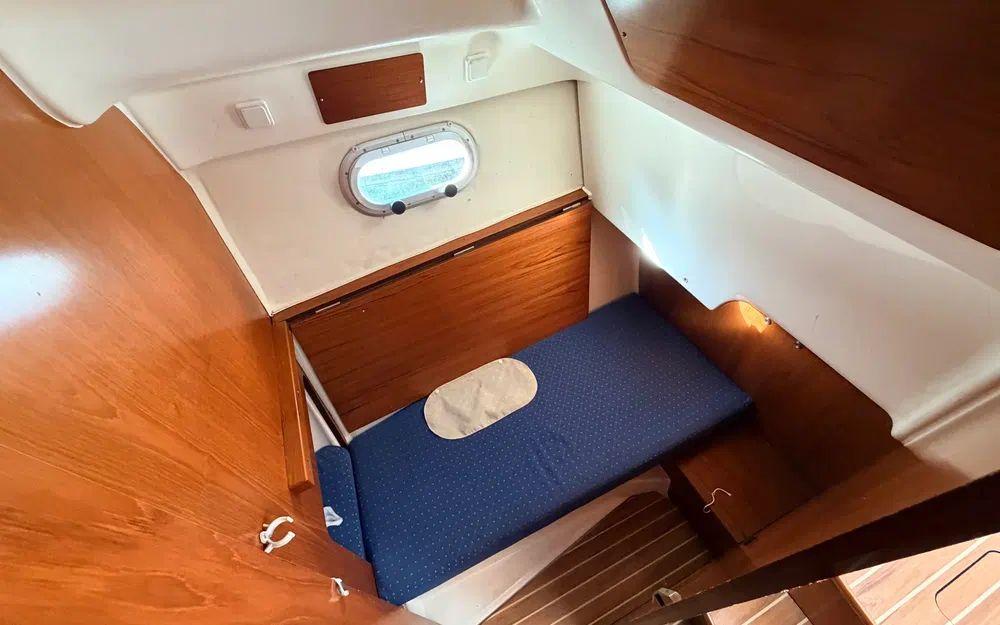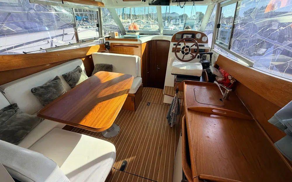 Aménagements intérieurs propres et bien conservés.Timonerie lumineuse avec excellente visibilité et poste de pilotage ergonomique.Cabine offrant des couchages confortables et des rangements adaptés à la croisière côtière.Boiseries, selleries et équipements intérieurs en bon état d’usage.
