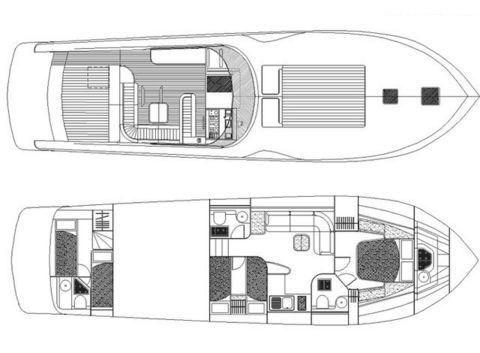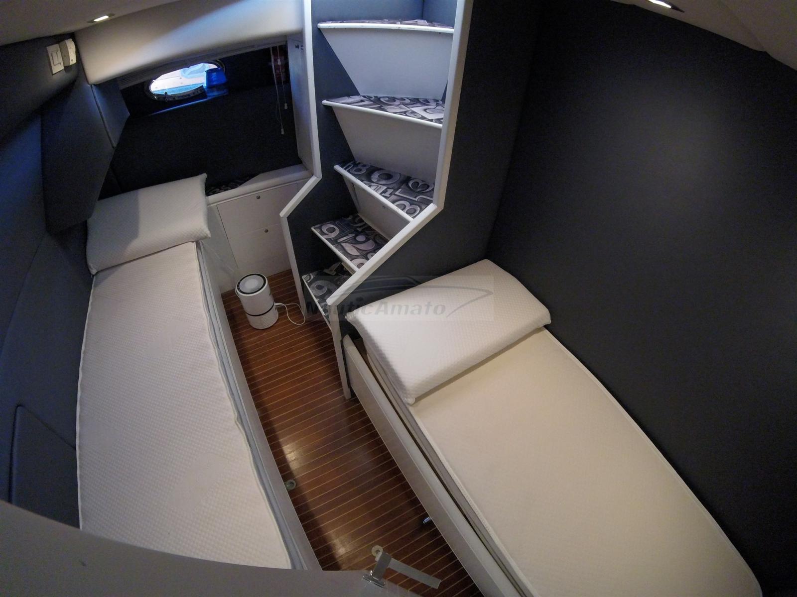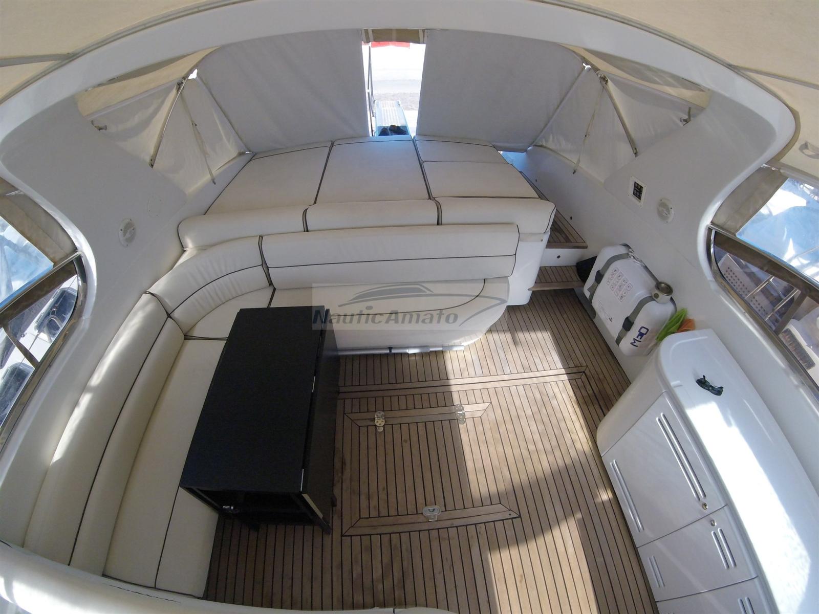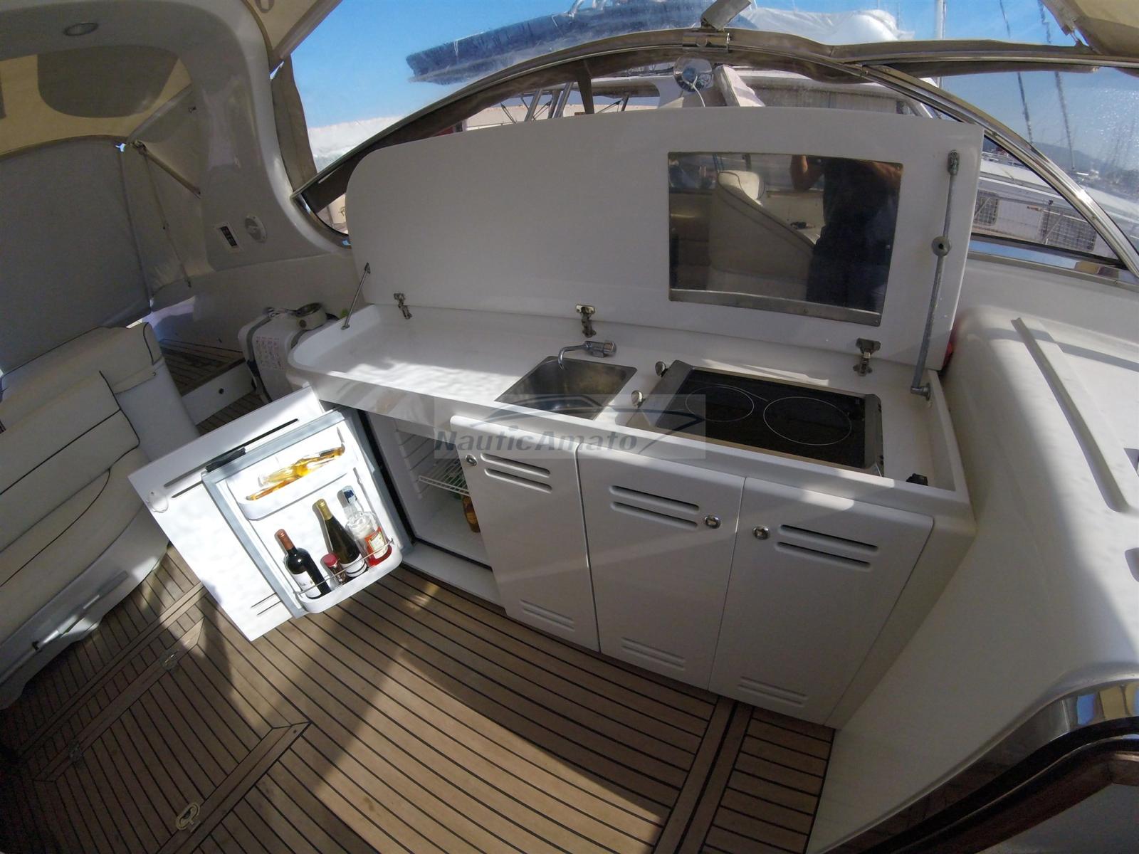 Alarme moteur, Alarme de pompe de cale, Eau sous pression, Câble d’alimentation à quai, Douche de cockpit, Phare de poursuite, Flaps hydrauliques, Extincteur(s) fixe(s), Indicateurs de flaps, Lavabo dans le cockpit, Éclairage de courtoisie, Spots sous-marins, Passerelle (Idraulica), Cockpit en teck, Prise de quai, Guindeau électrique, Echelle de bain, table de cockpit, Table pliante de salon.