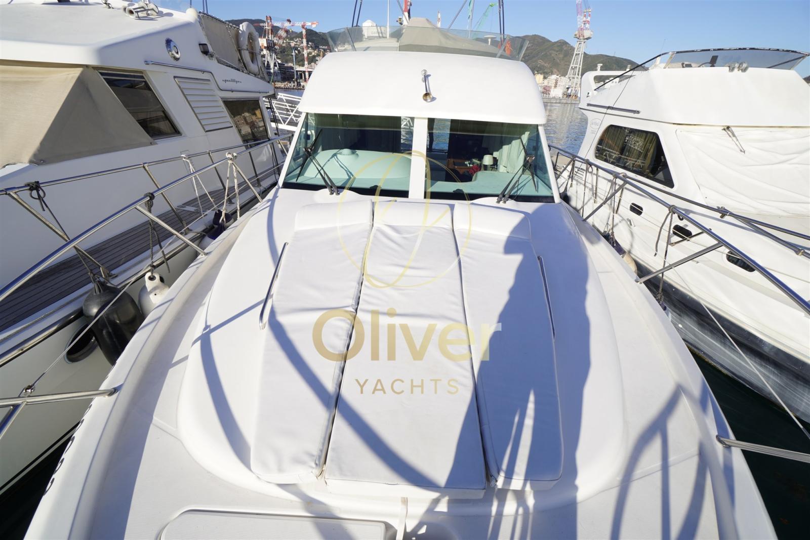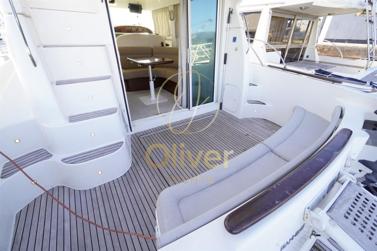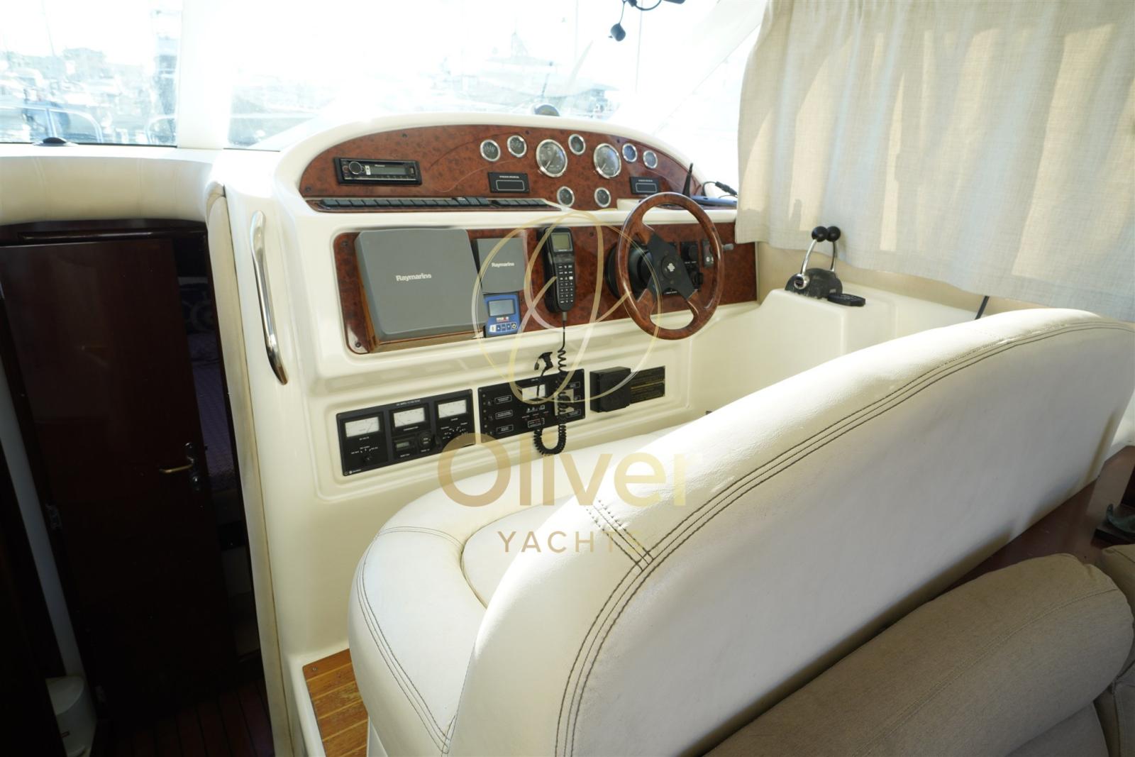 Alarme gaz, Alarme moteur, Alarme de pompe de cale, Alternateur, Auto Dynamic Trim Interceptor, Eau sous pression, Câble d’alimentation à quai, Filères, Douche de cockpit, Double barre à roue, Fixation de l’ancre, Flaps électriques, Extincteur(s) fixe(s), Indicateurs de flaps, Lavage de chaine, Lavabo dans le cockpit, Éclairage de courtoisie, Moniteur de batterie, Panneau solaire, Défenses, Passerelle (IDRAULICA), Plateforme arrière, Pompe de cale automatique, Pompe de cale manuelle, Pont en teck, Porte latérale, Cockpit en teck, Prise de quai, Connexion eau sous pression à quai, Répétiteur électronique, Guindeau électrique, Echelle de bain, Annexe, Corne.
