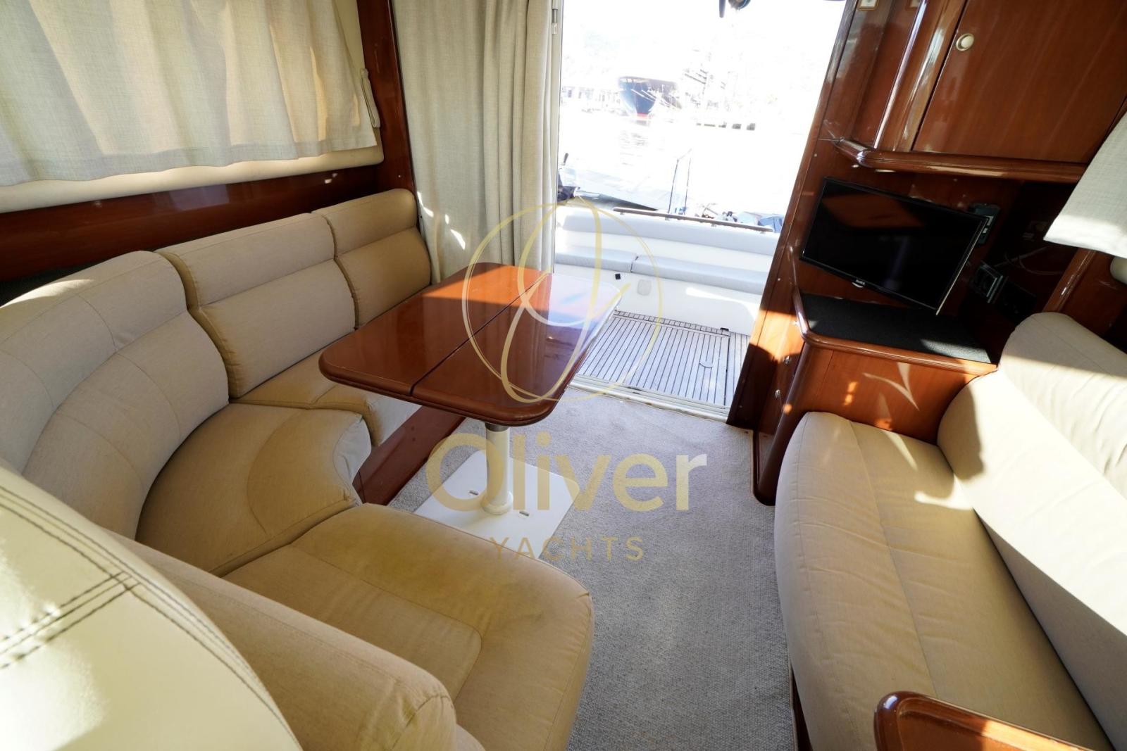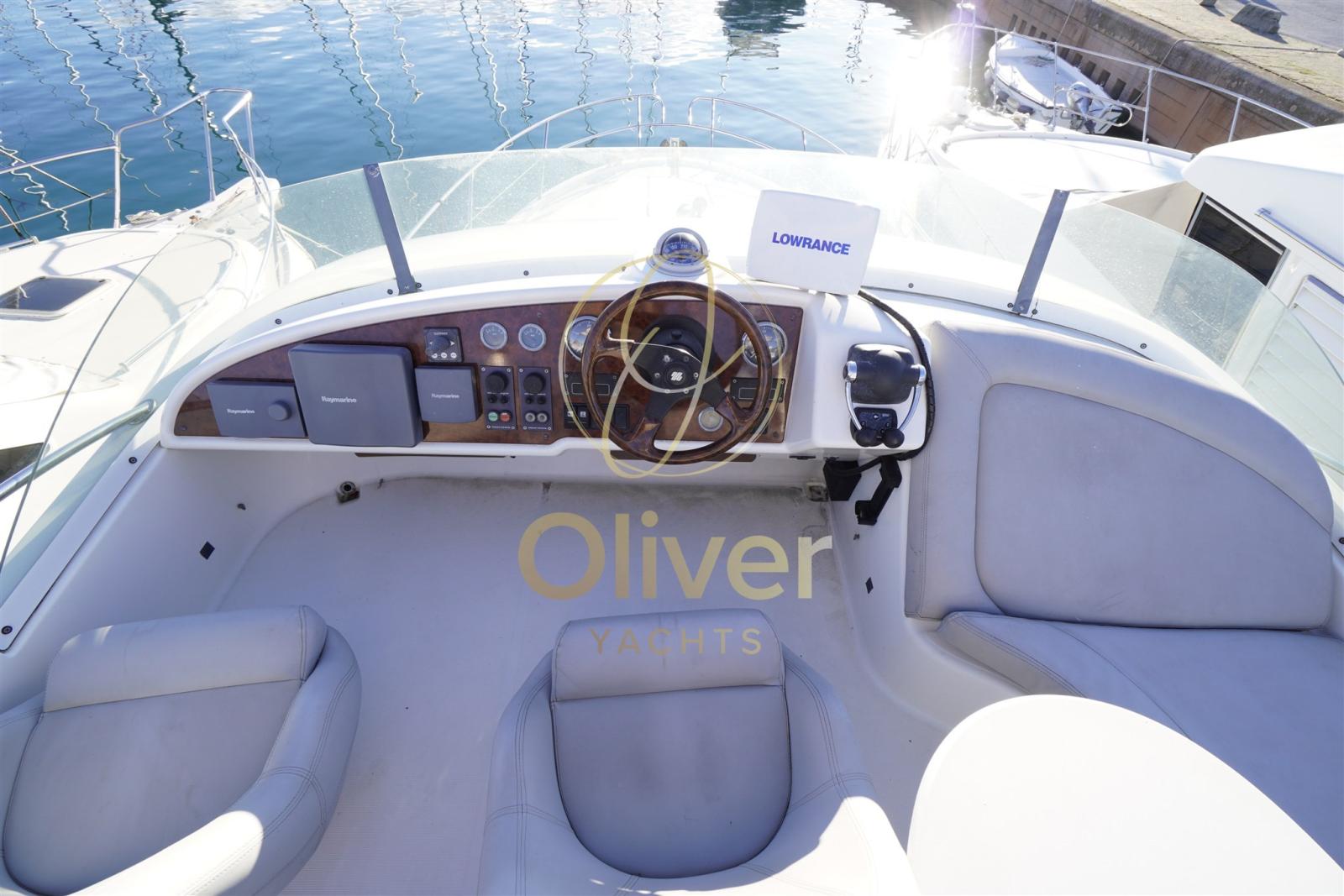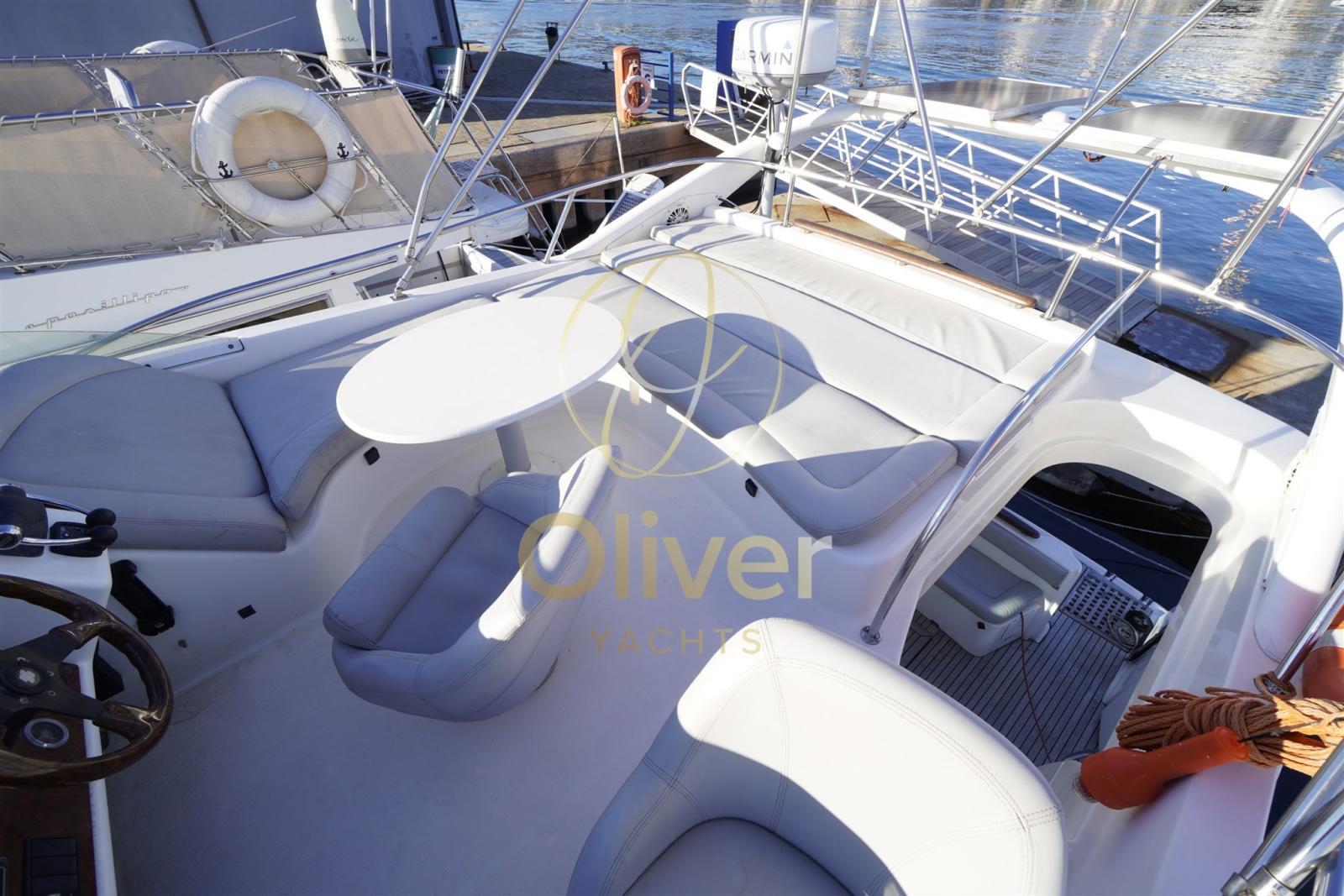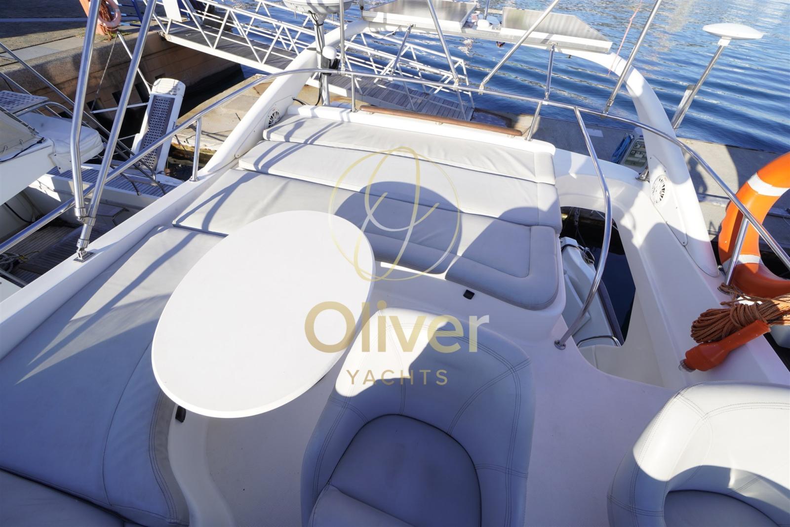 Alarme gaz, Alarme moteur, Alarme de pompe de cale, Alternateur, Auto Dynamic Trim Interceptor, Eau sous pression, Câble d’alimentation à quai, Filères, Douche de cockpit, Double barre à roue, Fixation de l’ancre, Flaps électriques, Extincteur(s) fixe(s), Indicateurs de flaps, Lavage de chaine, Lavabo dans le cockpit, Éclairage de courtoisie, Moniteur de batterie, Panneau solaire, Défenses, Passerelle (IDRAULICA), Plateforme arrière, Pompe de cale automatique, Pompe de cale manuelle, Pont en teck, Porte latérale, Cockpit en teck, Prise de quai, Connexion eau sous pression à quai, Répétiteur électronique, Guindeau électrique, Echelle de bain, Annexe, Corne.