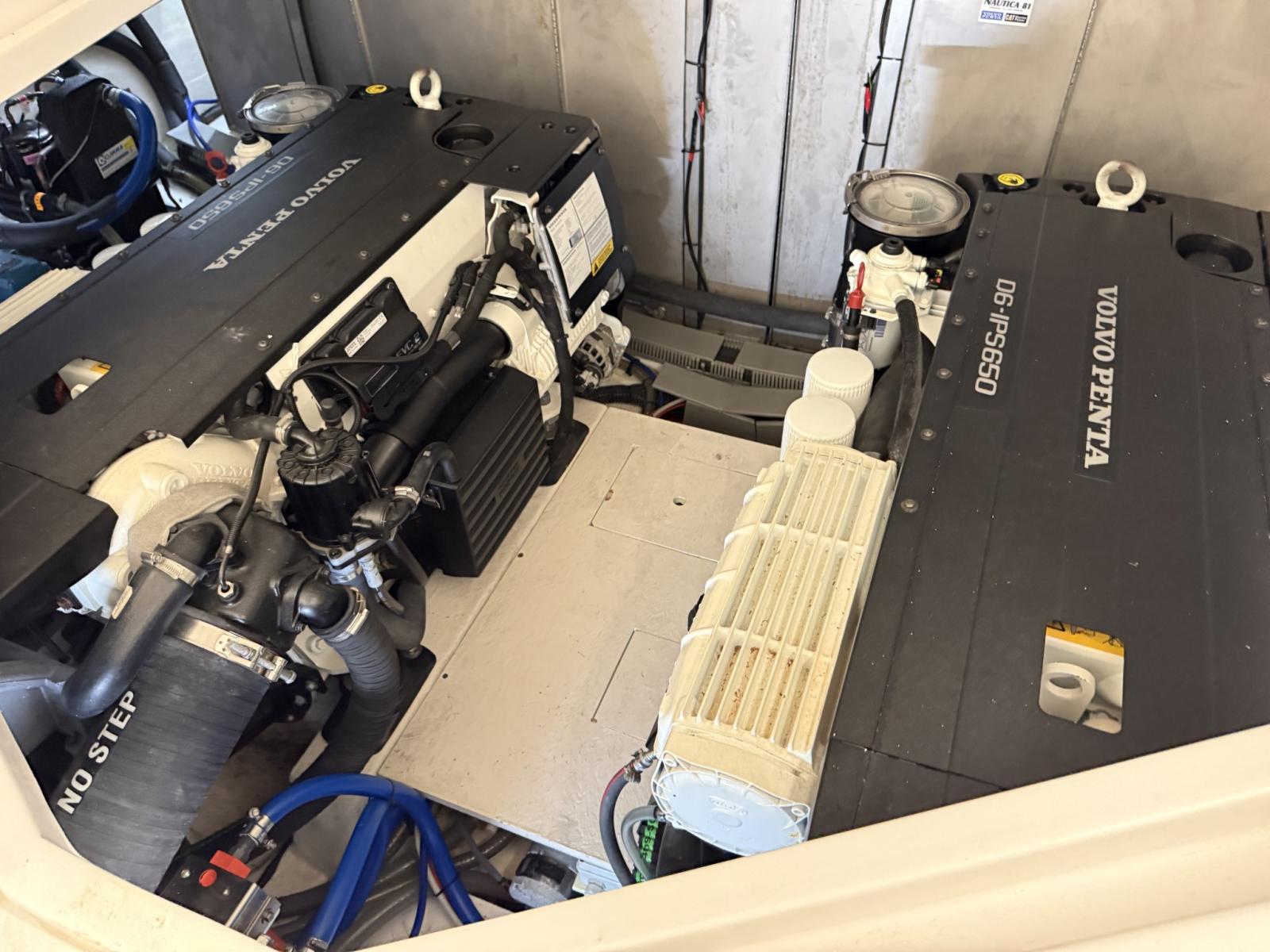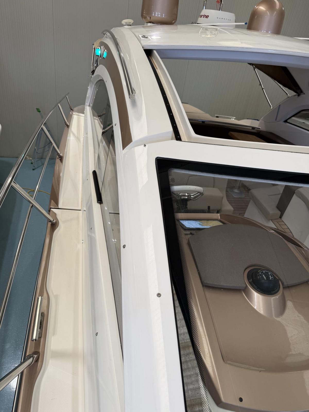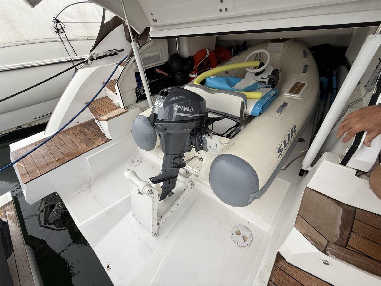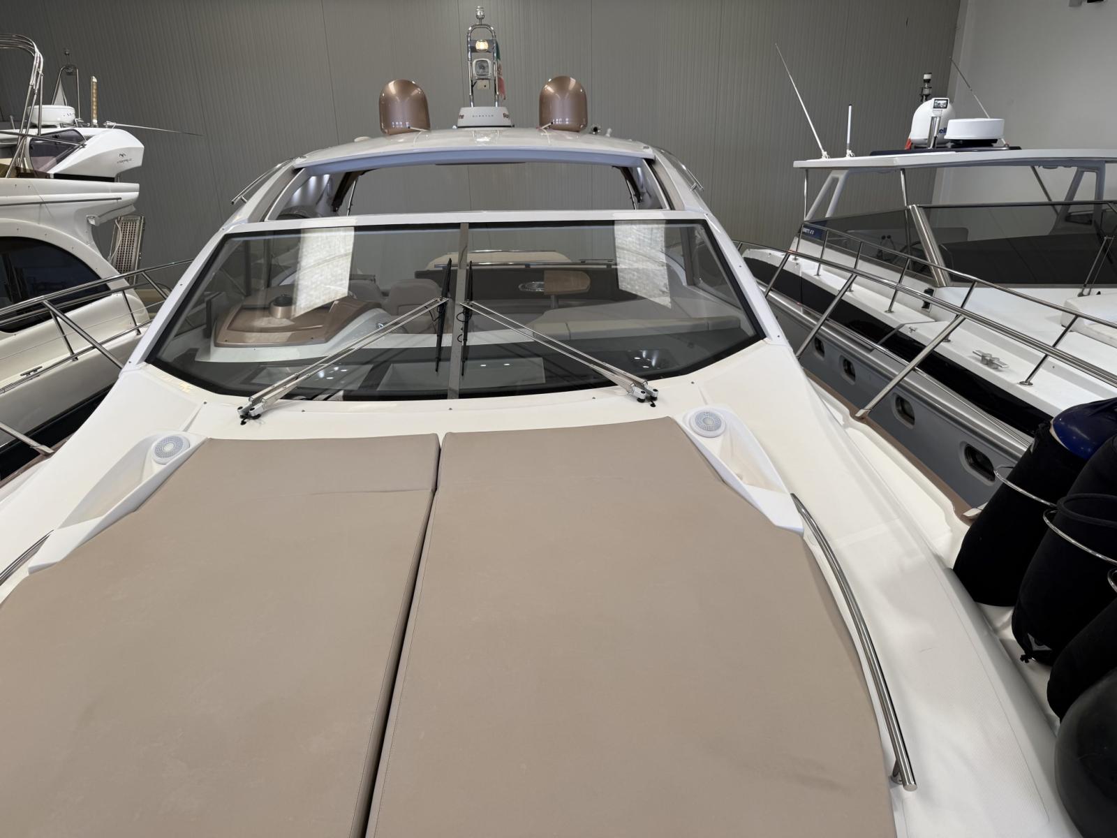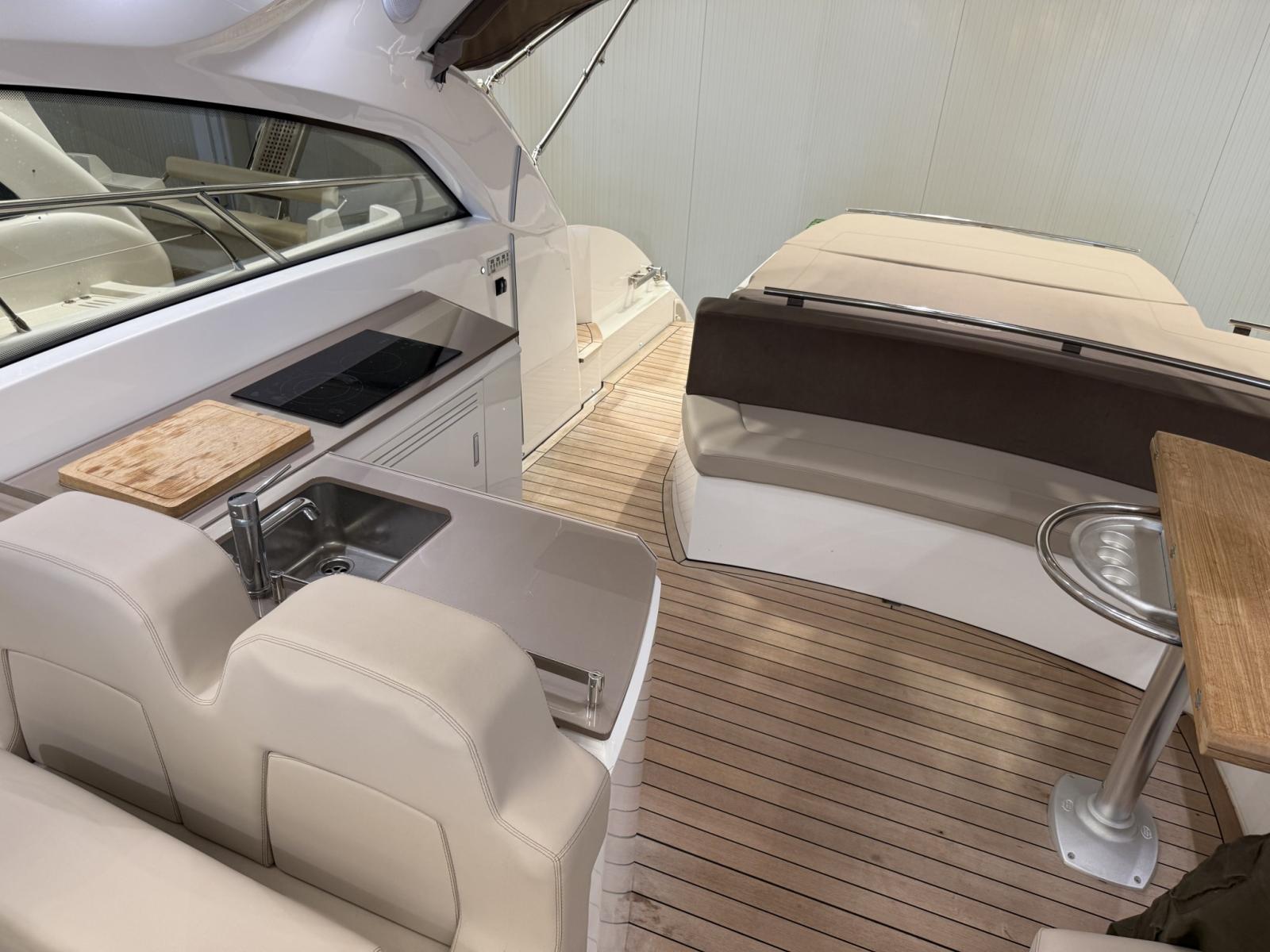 Alarme moteur, Alarme de pompe de cale, Ouverture du compartiment moteur électrique, Eau sous pression, Douche de cockpit, Phare de poursuite, Flaps hydrauliques, Garage à annexe, Hard top, Extincteur(s) fixe(s), Indicateurs de flaps, Lavabo dans le cockpit, Éclairage de courtoisie, Spots sous-marins, Passerelle, Plateforme arrière, Cockpit en teck, Prise de quai, Guindeau électrique, Echelle de bain, table de cockpit, Corne.