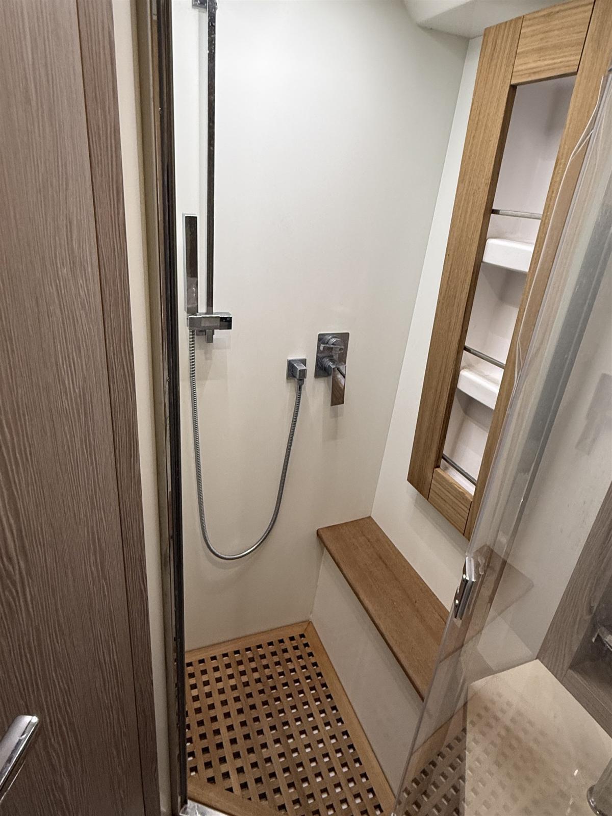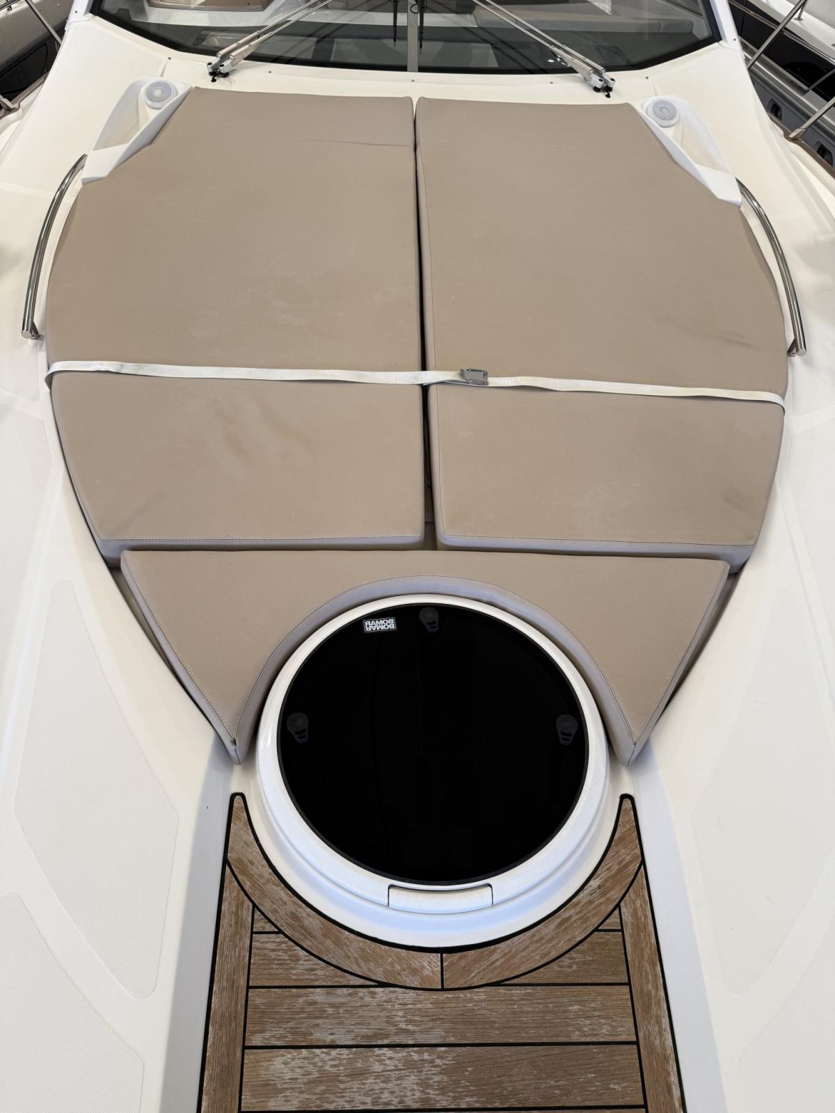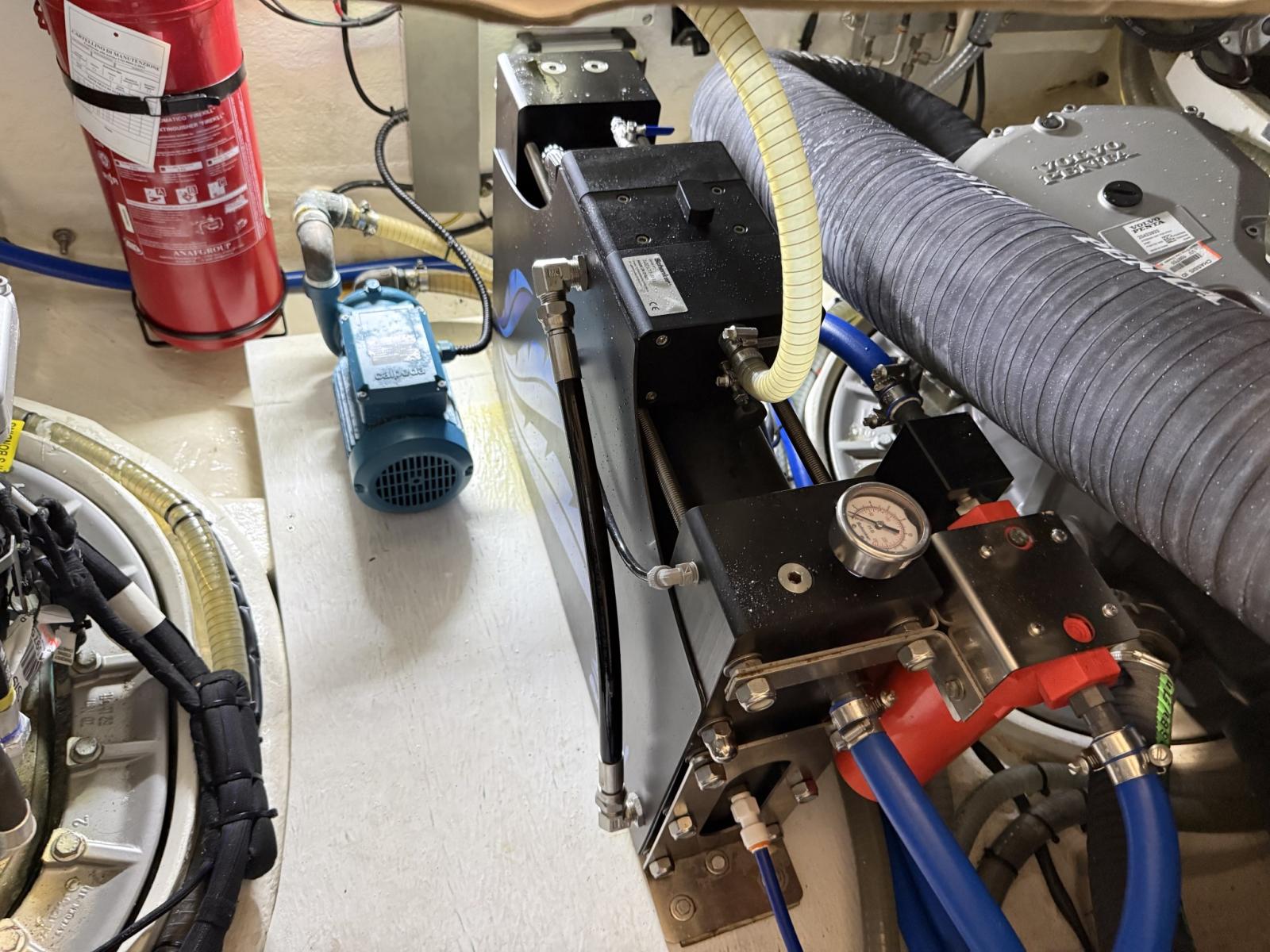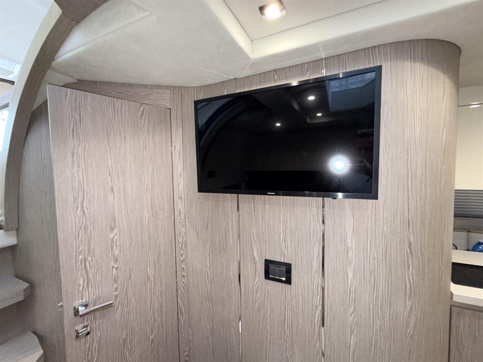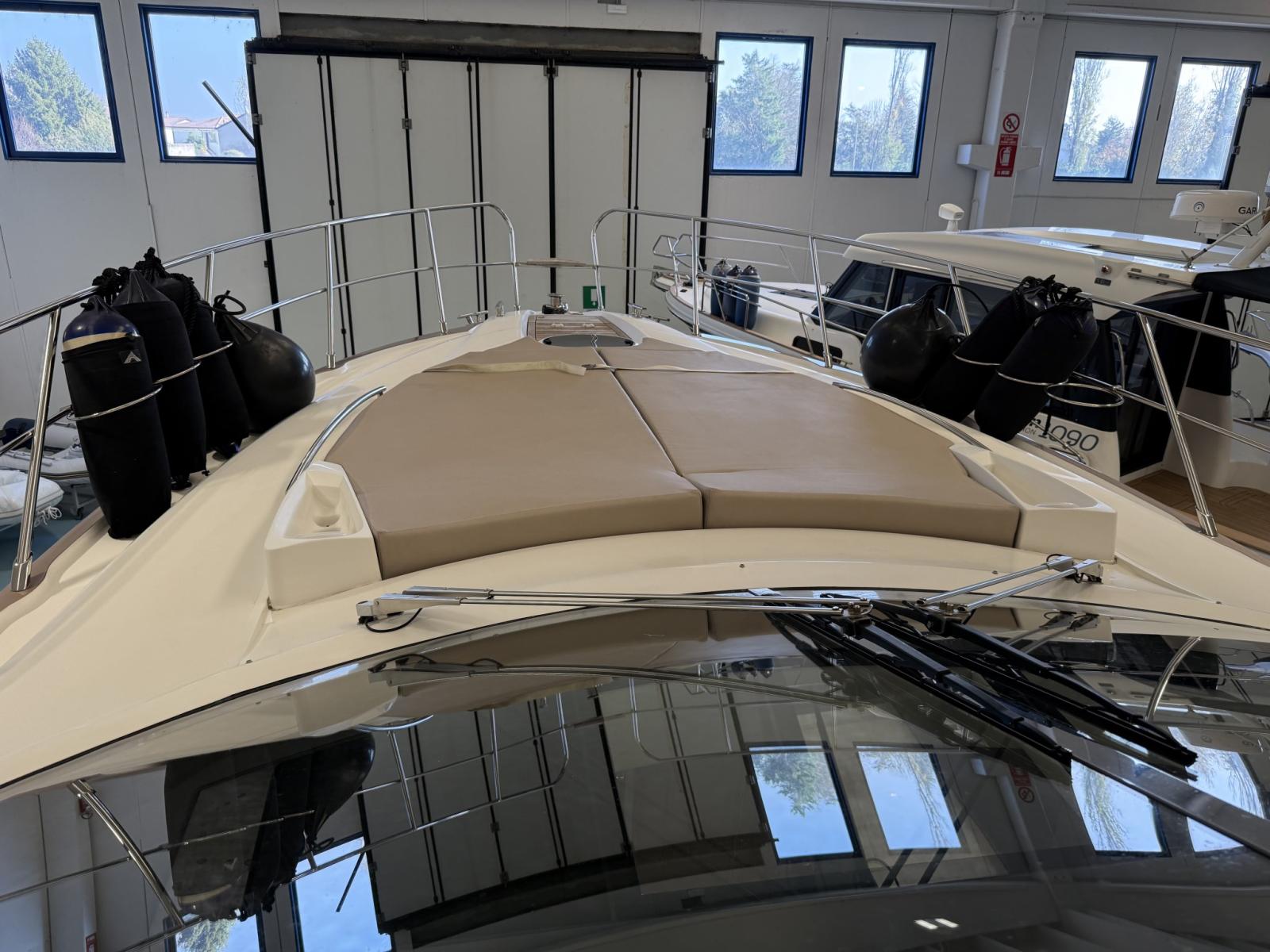 Alarme moteur, Alarme de pompe de cale, Ouverture du compartiment moteur électrique, Eau sous pression, Douche de cockpit, Phare de poursuite, Flaps hydrauliques, Garage à annexe, Hard top, Extincteur(s) fixe(s), Indicateurs de flaps, Lavabo dans le cockpit, Éclairage de courtoisie, Spots sous-marins, Passerelle, Plateforme arrière, Cockpit en teck, Prise de quai, Guindeau électrique, Echelle de bain, table de cockpit, Corne.