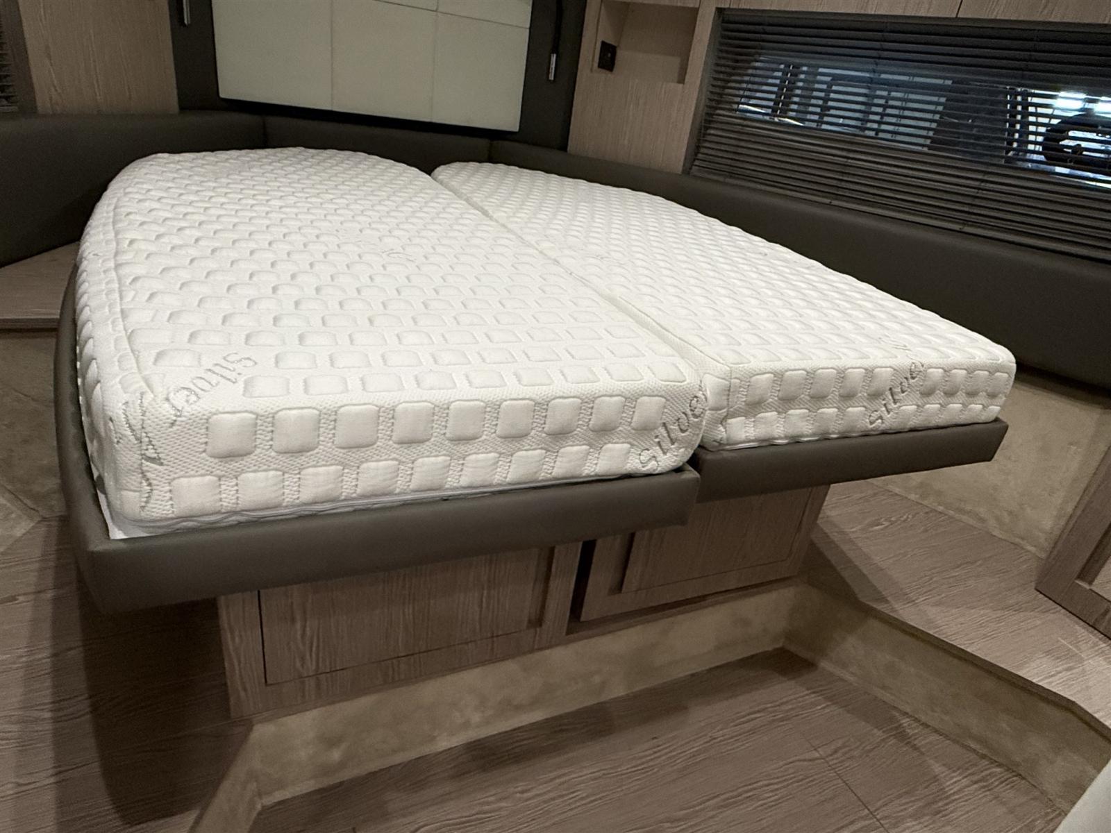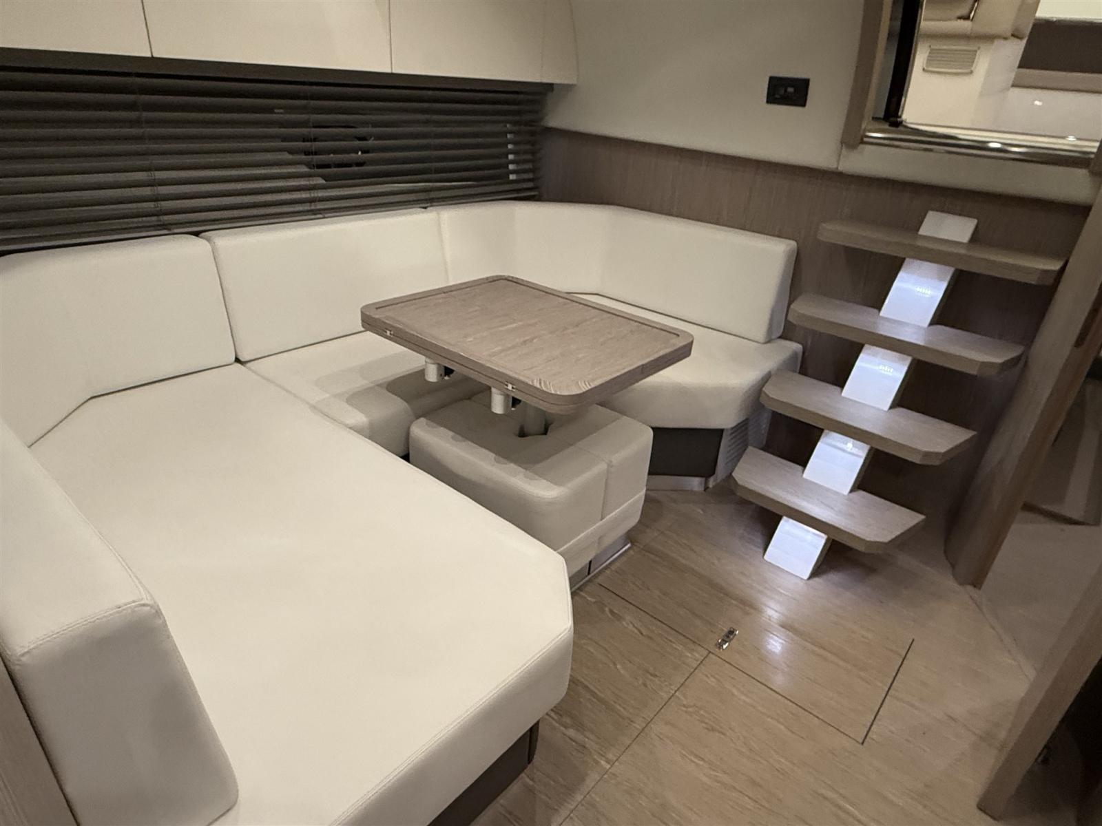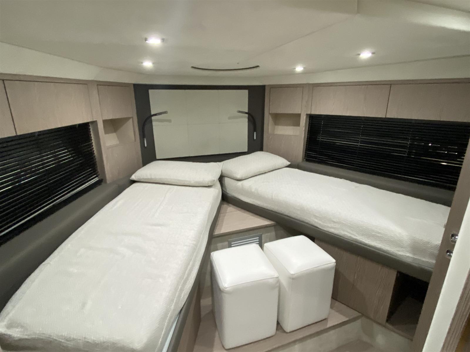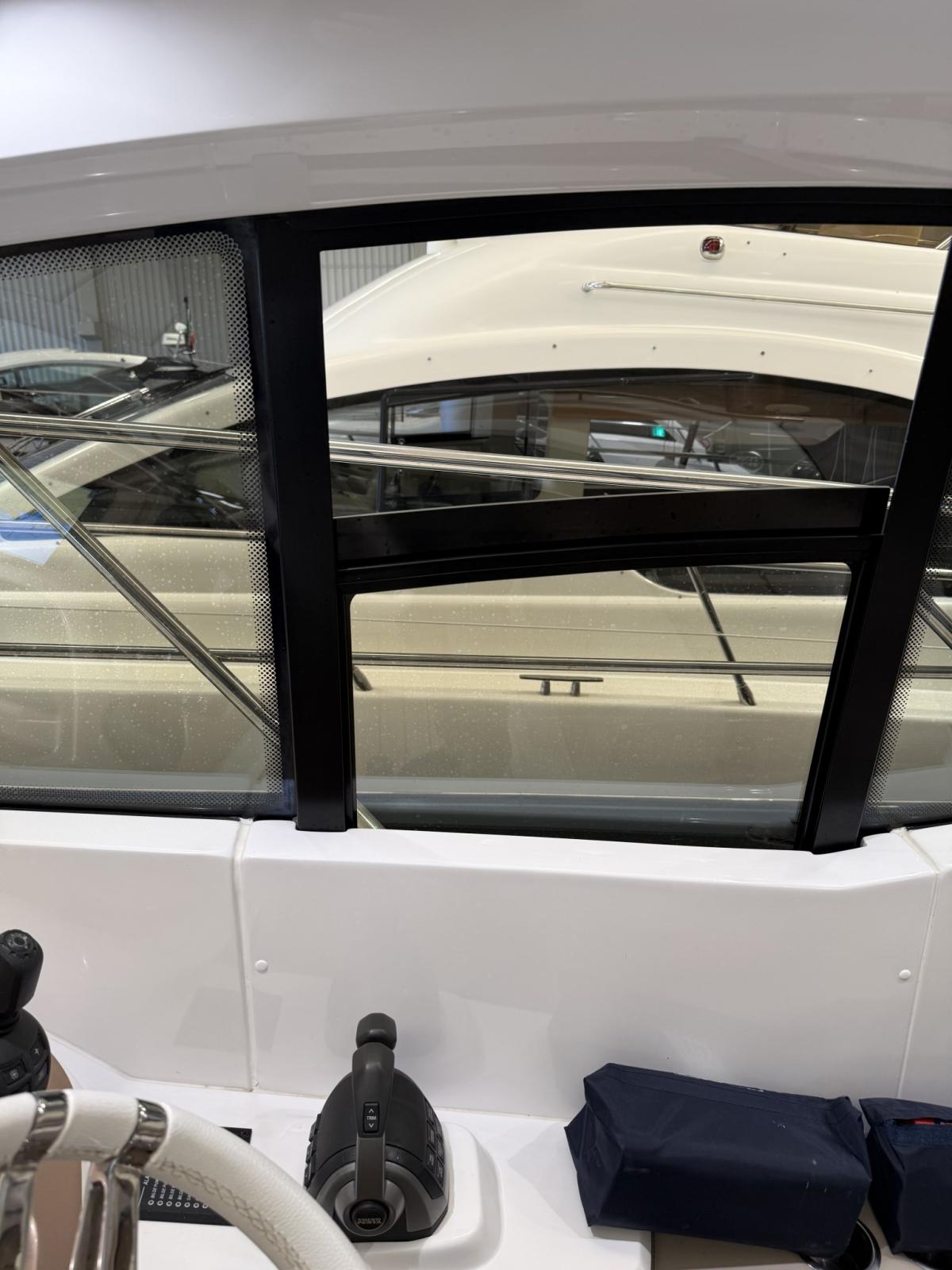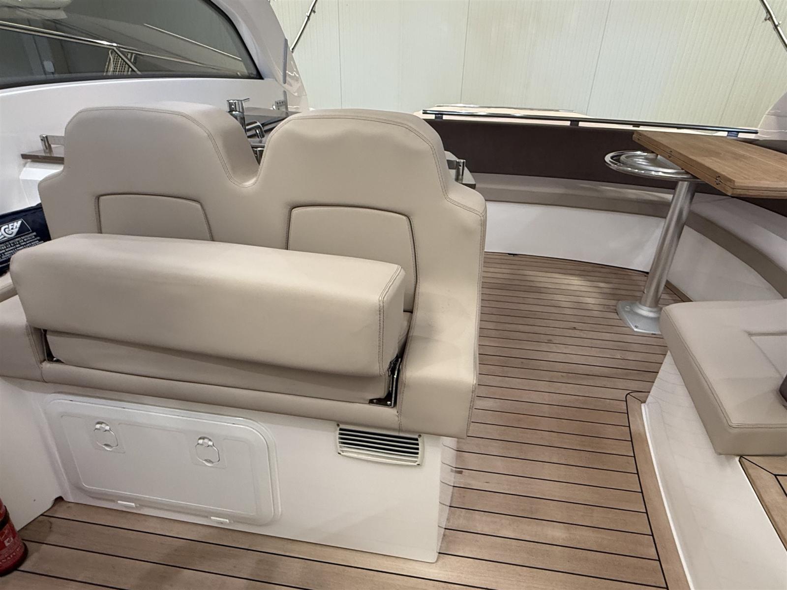 Alarme moteur, Alarme de pompe de cale, Ouverture du compartiment moteur électrique, Eau sous pression, Douche de cockpit, Phare de poursuite, Flaps hydrauliques, Garage à annexe, Hard top, Extincteur(s) fixe(s), Indicateurs de flaps, Lavabo dans le cockpit, Éclairage de courtoisie, Spots sous-marins, Passerelle, Plateforme arrière, Cockpit en teck, Prise de quai, Guindeau électrique, Echelle de bain, table de cockpit, Corne.