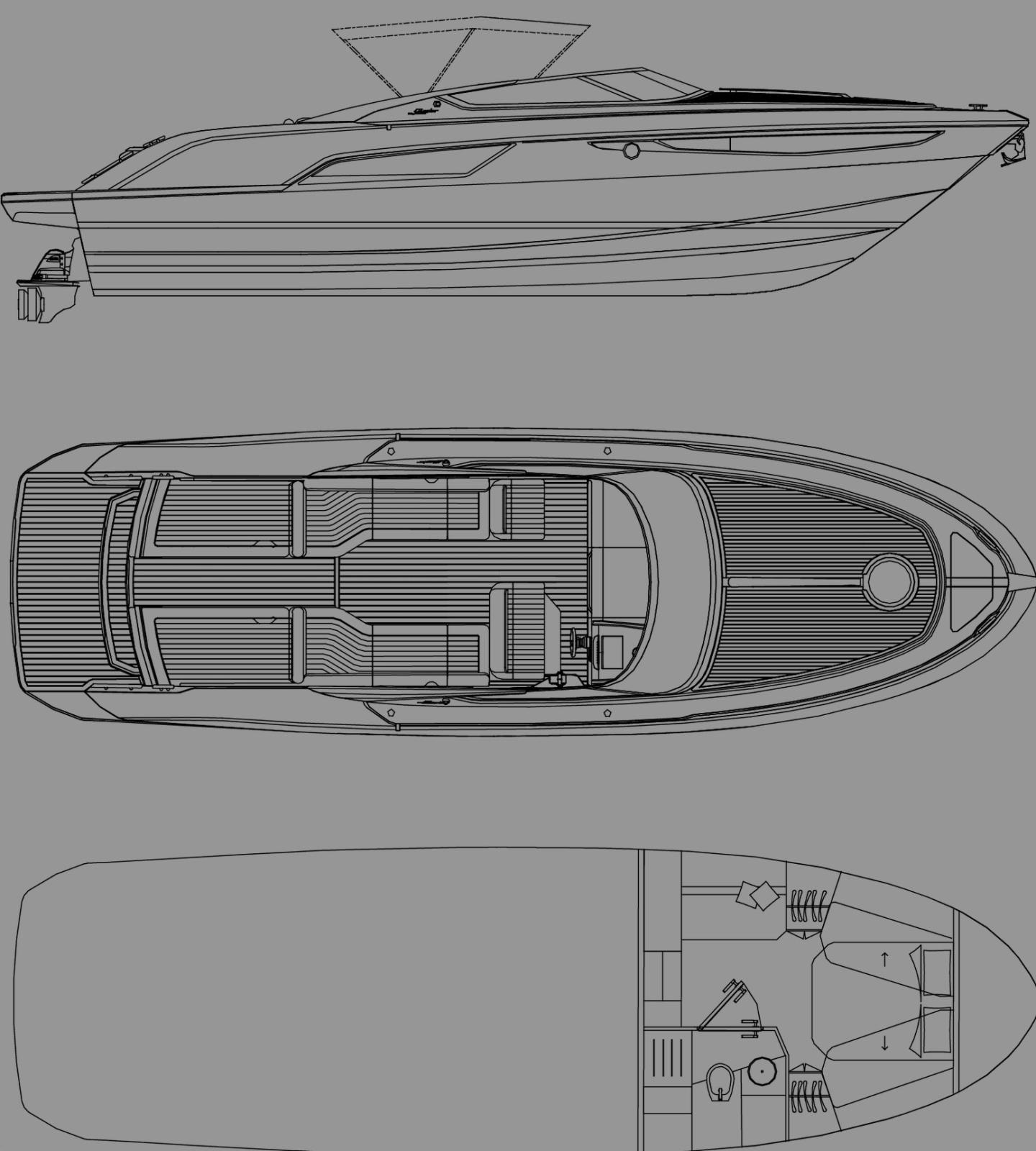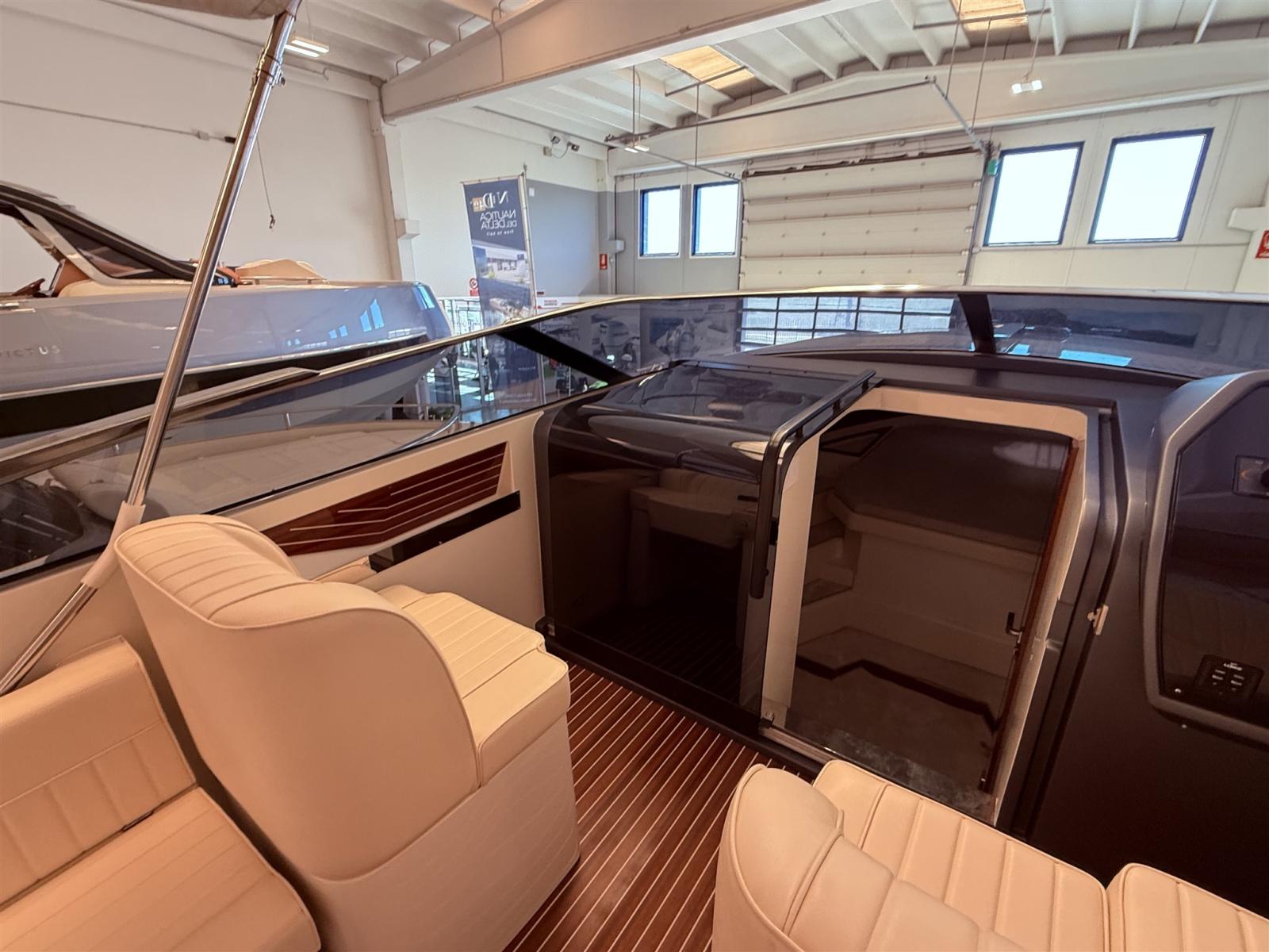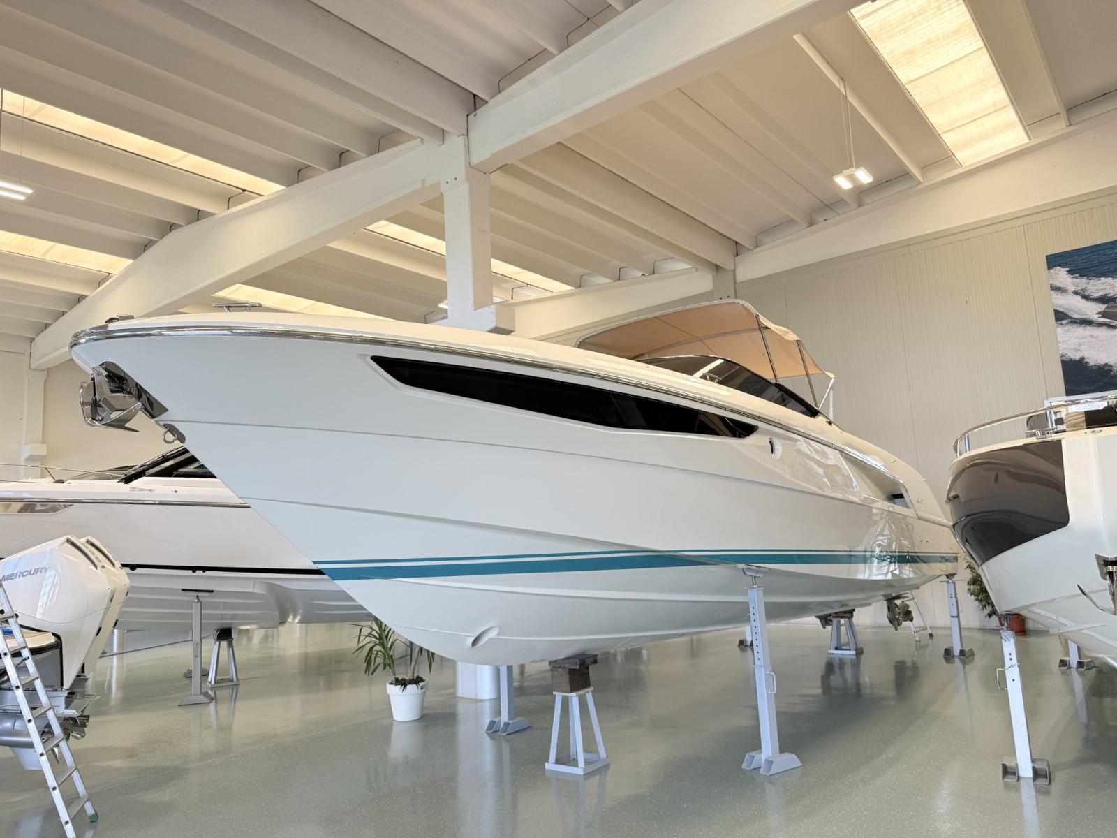 Bimini (a movimentazione idraulica), Coussins arrieres, Coussin avant, Housse de bateau, Taud de console.