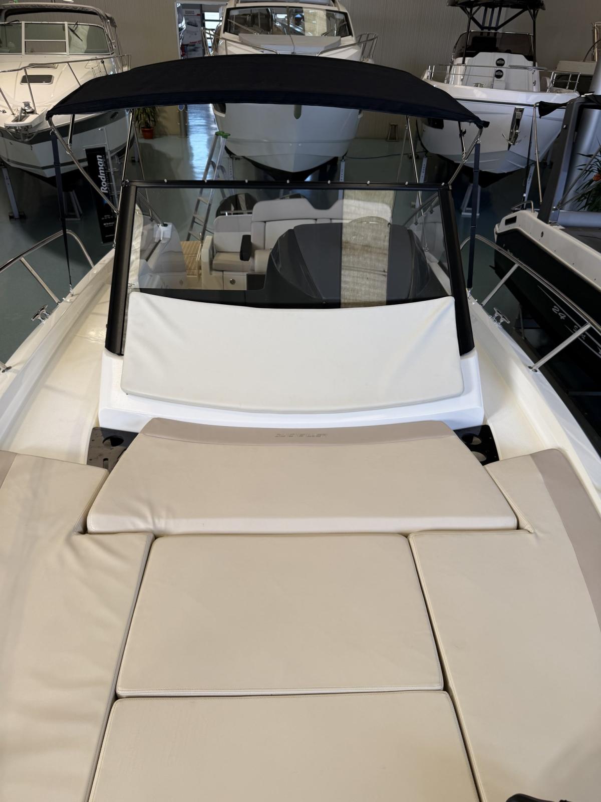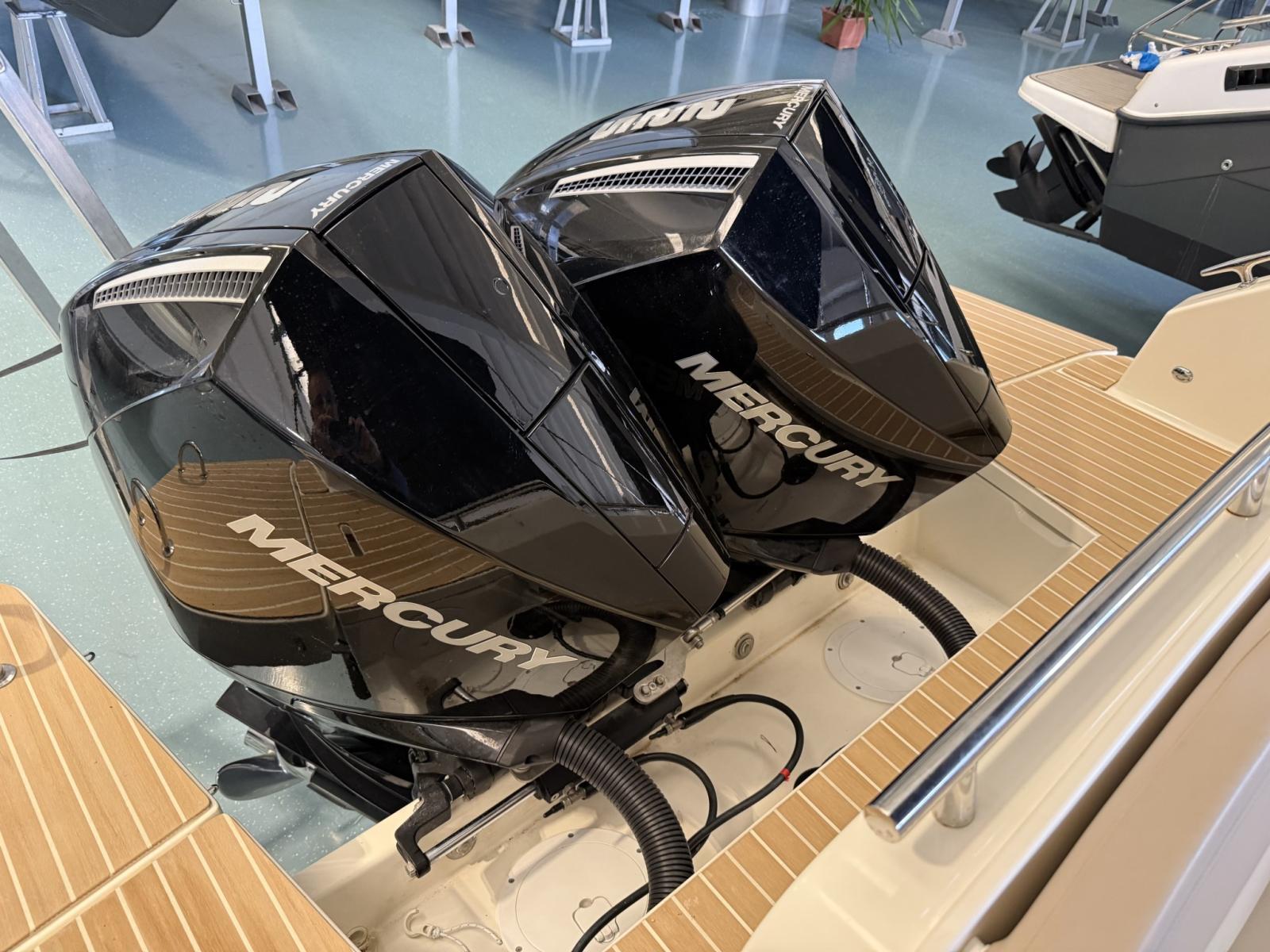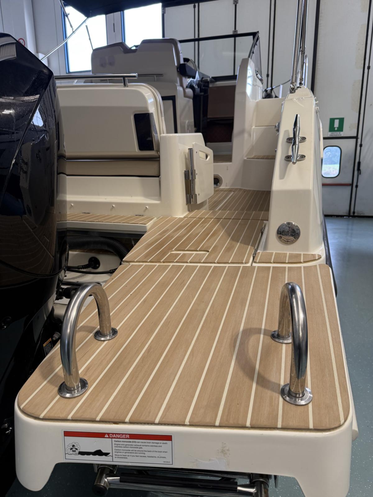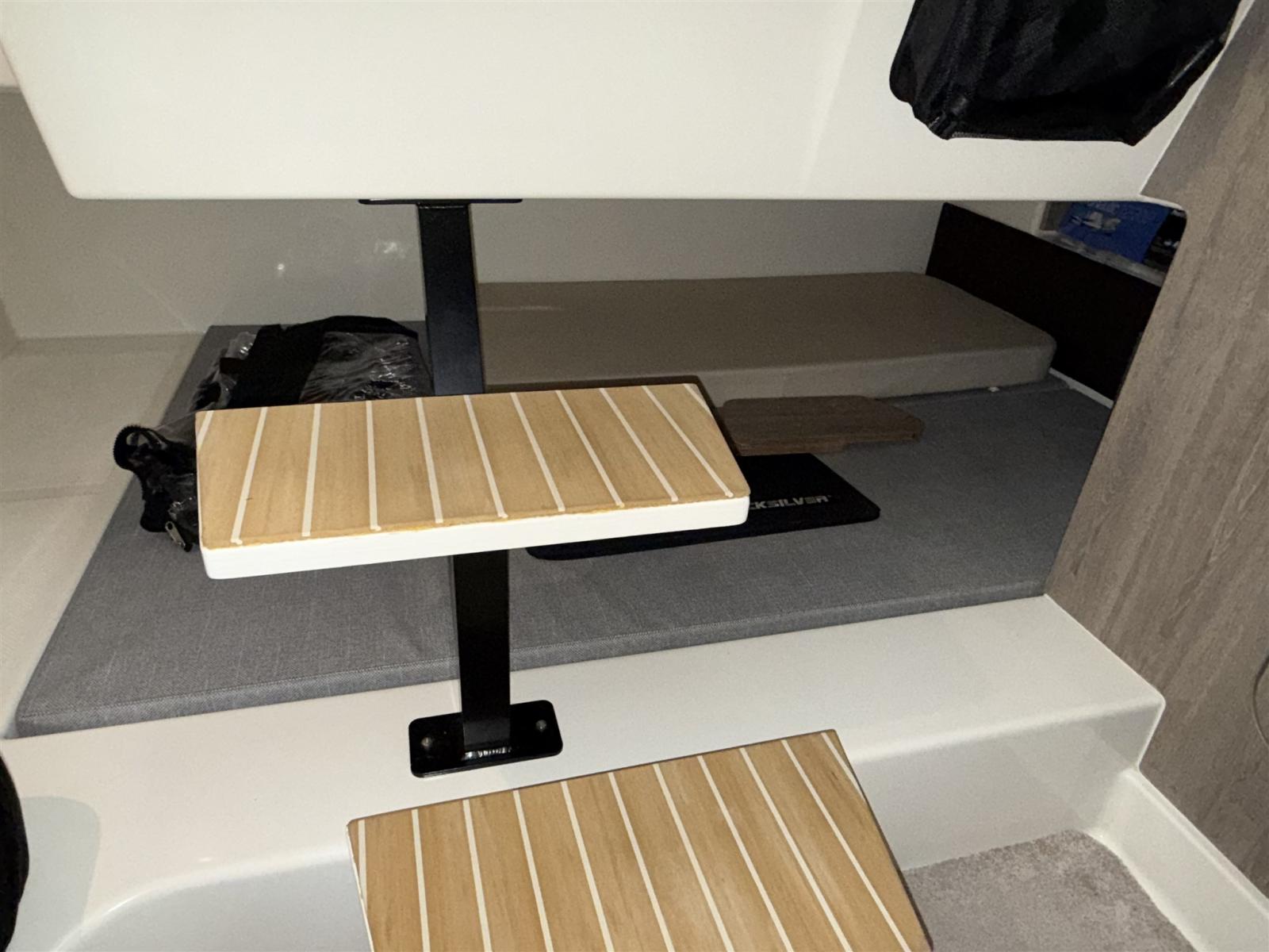 Alarme moteur, Eau sous pression, Câble d’alimentation à quai, Douche de cockpit, Flaps électriques, Indicateurs de flaps, Lavabo dans le cockpit, Éclairage de courtoisie, Défenses, Cockpit en teck (Flexiteek), Prise de quai, Connexion eau sous pression à quai, Guindeau électrique, Echelle de bain, table de cockpit, Corne.