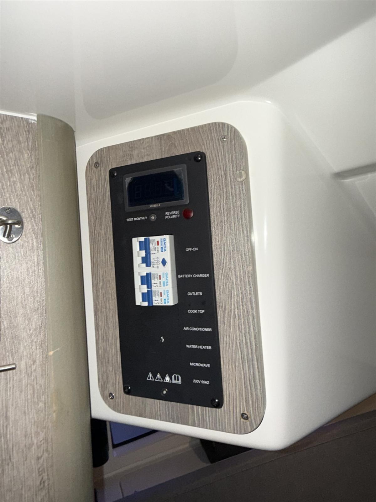 Indicateur du réservoir de carburant, Jauge de Réservoir d’Eau, Prises interieures 12v, Prises interieures 220v, Réservoir d'eau noire, Toilettes électriques.