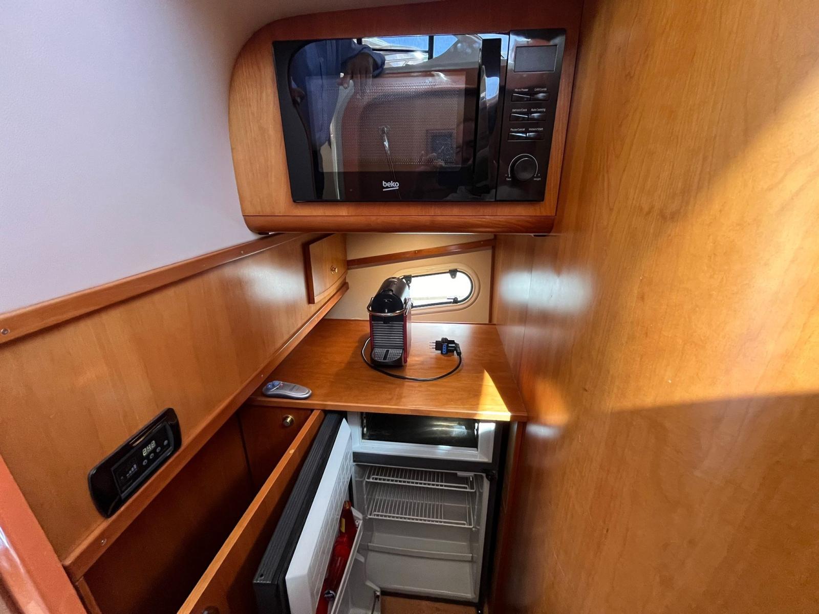 Révision du guindeau, Electr. Substitution. Micro-ondes., Substitution. Réfrigérateur de cuisine, Rifac. Porte de cockpit, collage de plate-forme en teck, Revis. Volets de la salle des machines.,Revis. Direction assistée à la volée, Remplacement des interrupteurs, Ombrage du cockpit., 4 nouvelles batteries., Nouvelle chaudière, Remplacement. flotteur d’eau, Subst. Douche à pompe de vidange d’eau, table interne refaite.