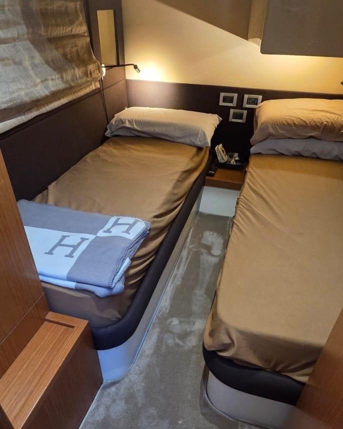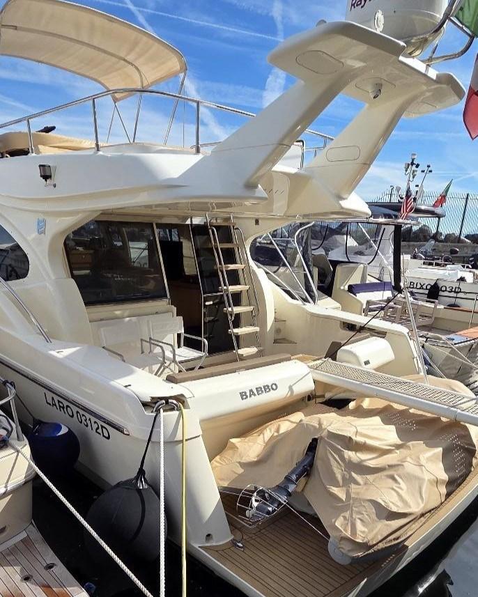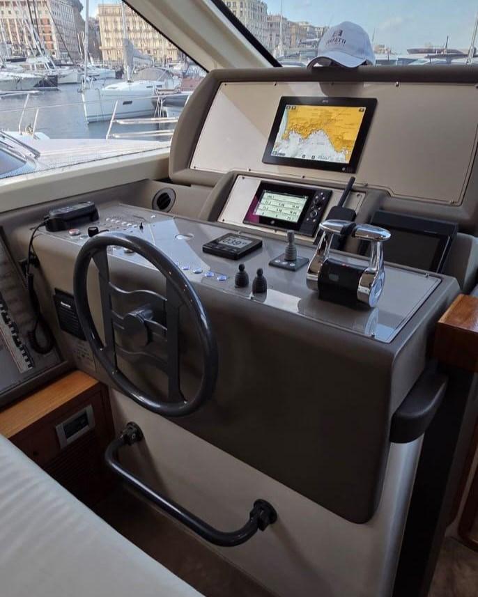 Alarme moteur, Alarme de pompe de cale, Alternateur, Douche de cockpit, Flaps hydrauliques, Extincteur(s) fixe(s), Passerelle (IDRAULICA), Plateforme arrière, Pompe de cale automatique, Pompe de cale manuelle, Porte latérale, Cockpit en teck, Prise de quai, Onduleur, Rollbar, Guindeau électrique, Echelle de bain, Selles pour Annexe, Winch électrique arrière.