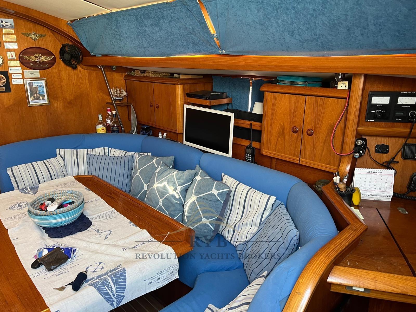 Batteries (2023), Passavant en teck, Double barre à roue, Bossoir pour HB, Passerelle, Pont en teck, Porte latérale, Cockpit en teck, Prise de quai, Guindeau électrique (revisionato 2021 + rimando in in pozzetto), Gréement monotoron, table de cockpit, Windex.