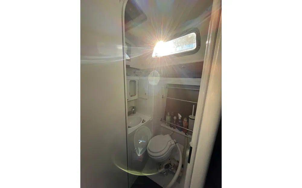 Que ce soit pour prendre les commandes ou simplement buller, tout est prêt ! GPS, pilote automatique, VHF portable et fixe, AIS, compas, sondeur, loch… et pour ceux qui restent à quai, les prises 220V, le circuit 12V/110V/220V et le chargeur de batteries sont de la fête. Côté navigation, vous profitez d’un grément complet : grand voile, génois sur enrouleur, lazy bag, winches, tangon de spi, tout est à portée de main. Ajoutez à tout cela le propulseur d’étrave pour faciliter les manœuvres, le guindeau électrique, campez l’annexe sur le bossoir et profitez de la plateforme arrière, douchette, échelle de baignade, et de lumières intérieures LED pour veiller tard !