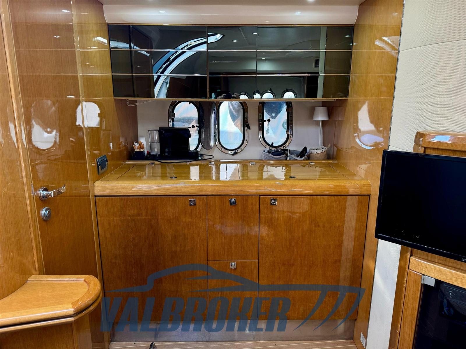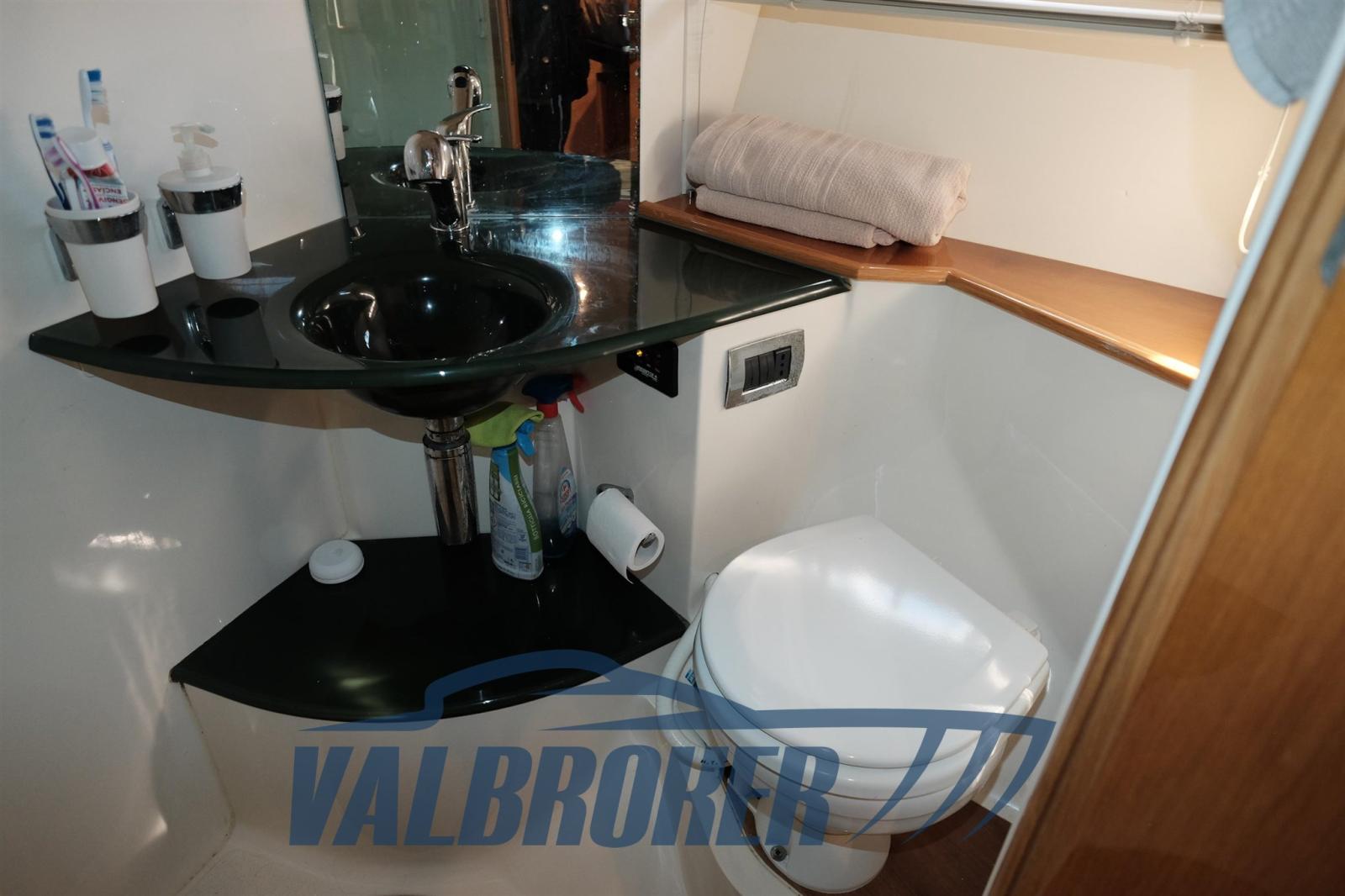 Magnifique toit rigide avec des lignes élégantes et très sportives. Enveloppé sur les côtés et sur le tableau de bord. Sous le pont, nous trouvons la cabine du propriétaire à l’avant, une cabine d’amis avec des lits plats et deux salles de bains. EN OPTION : générateur, climatisation, toit rigide électro-hydraulique, garage hydraulique, propulseur à proue. Nouveaux coussins et matelas internes. Sol de saloon en teck avec joints blancs !!