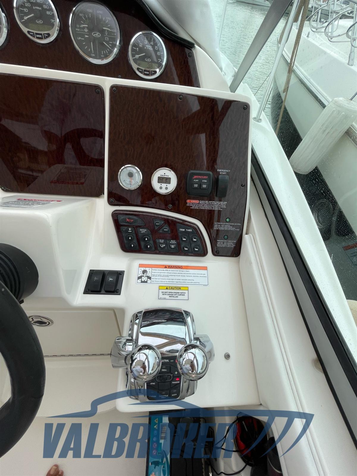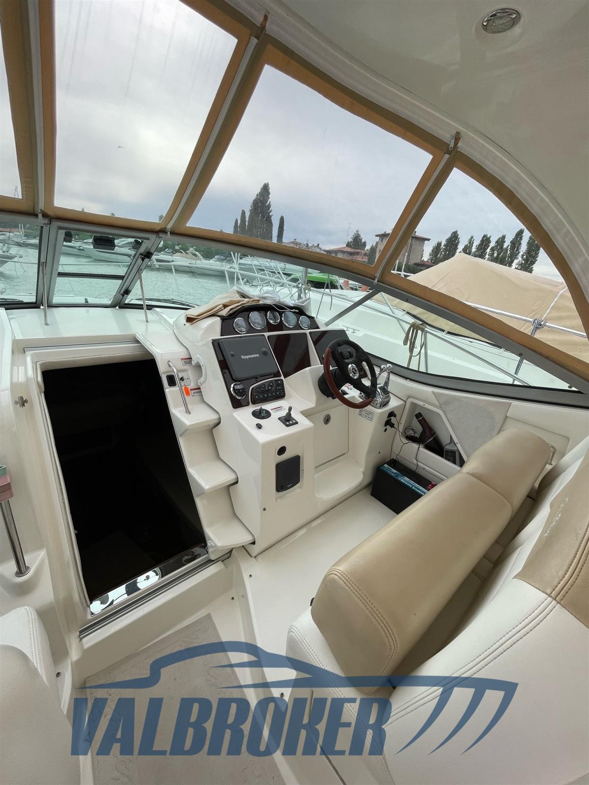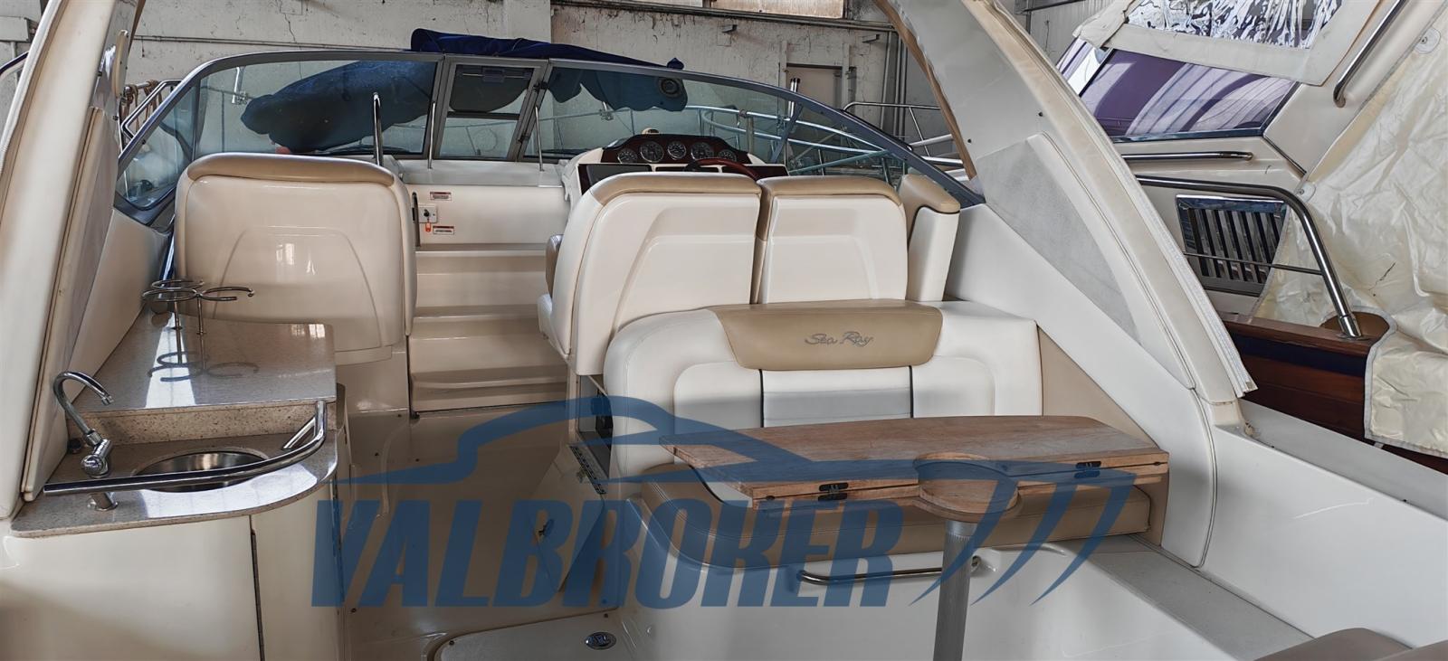 Excellente qualité de fabrication grâce au chantier naval américain important Sea Ray. Coque solide, robuste et bien structurée pour toutes les conditions météorologiques. Bateau en excellent état, il a toujours et seulement navigué en eau douce sur le lac de Garde. Propulsé par un V8 Mercruiser 6.2 Bravo III de 2x325 chevaux, avec seulement 250 heures de conduite !! Année modèle 2008. Stockage intérieur chaque hiver. Propulseur à l’avant, climatisation chaud/froide. Compartiment à ouverture pratique avec canapé sur la plateforme arrière. Coussins bicolores Sea Ray d’origine en excellent état.
