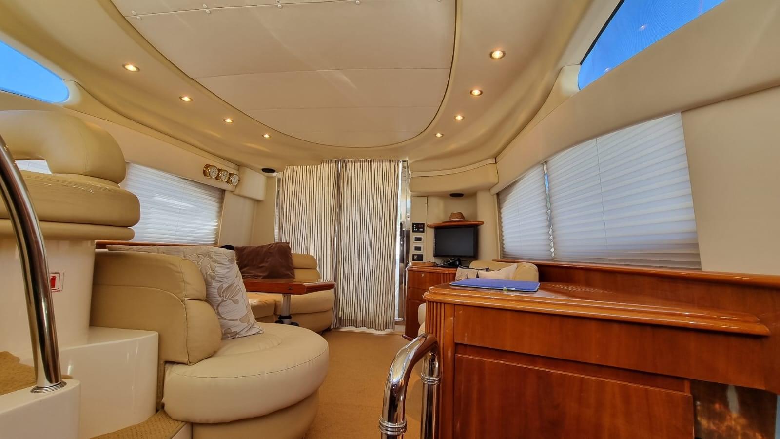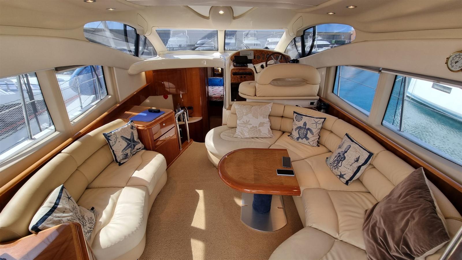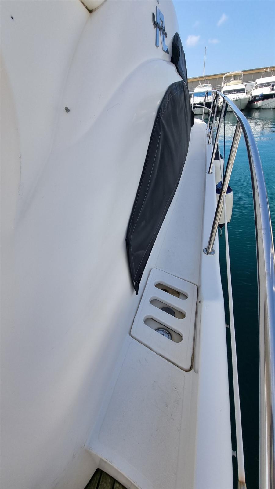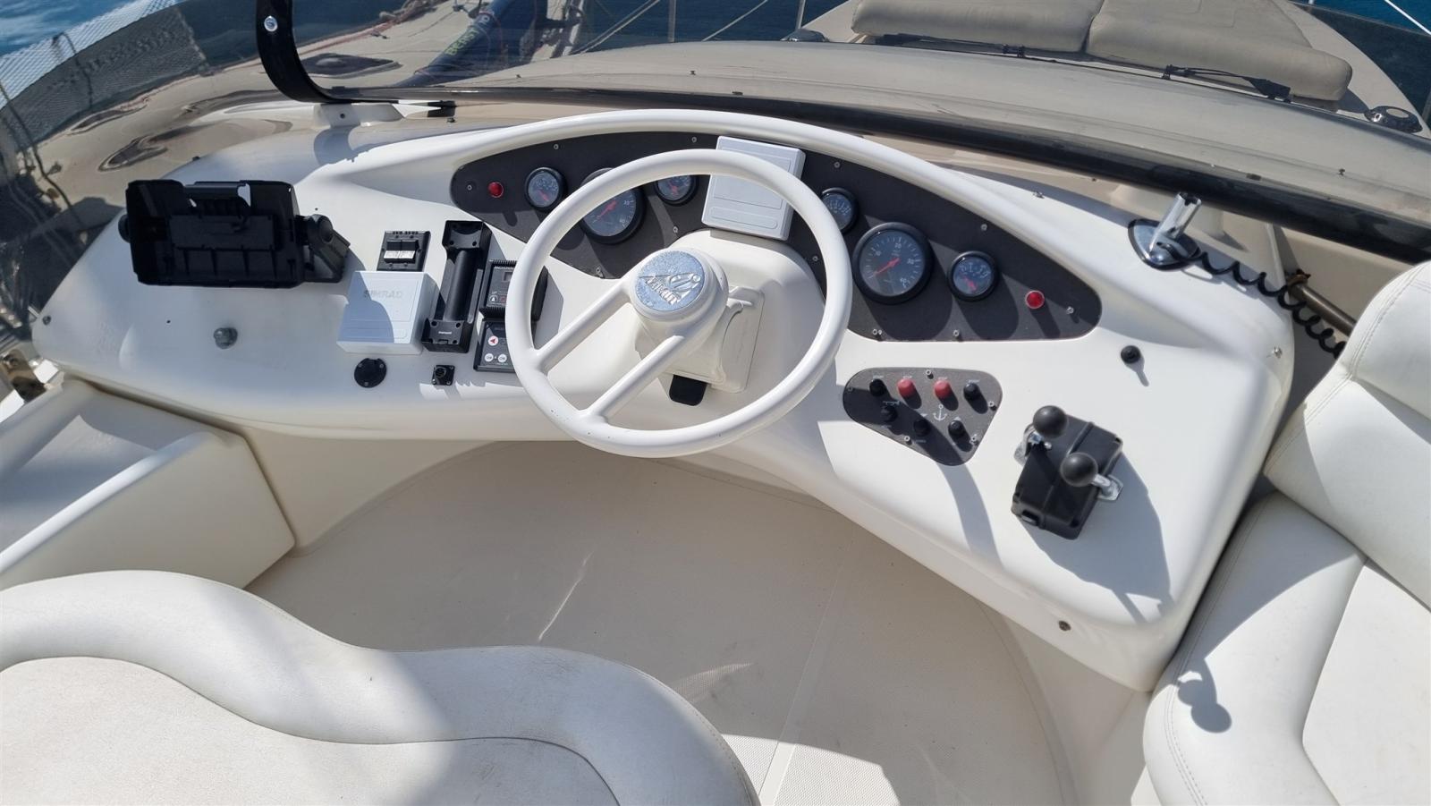Alarme gaz, Alarme moteur, Alarme de pompe de cale, Eau sous pression, Douche de cockpit, Double barre à roue, Flaps hydrauliques, Extincteur(s) fixe(s), Indicateurs de flaps, Éclairage de courtoisie, Passerelle, Pompe de cale automatique, Pompe de cale manuelle, Porte latérale, Cockpit en teck, Prise de quai, Onduleur, Rollbar, Guindeau électrique, Echelle de bain, table de cockpit, Corne.