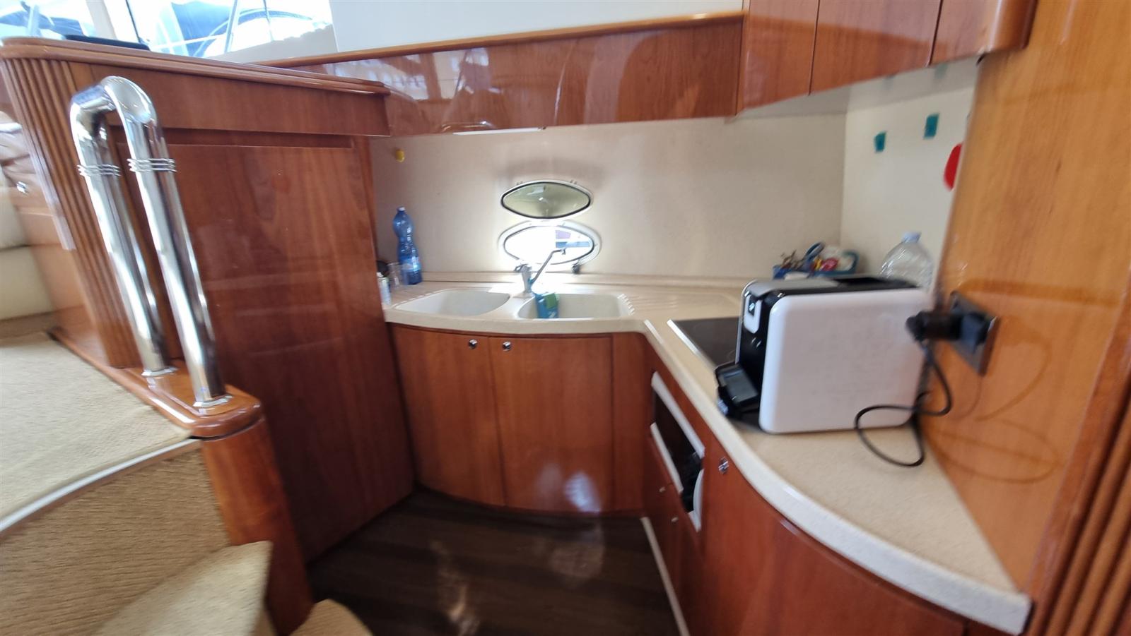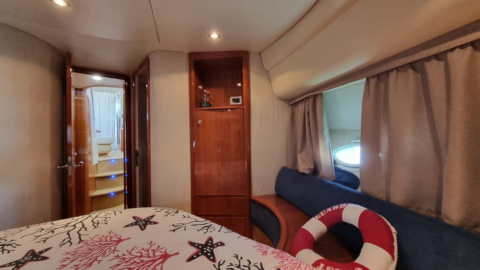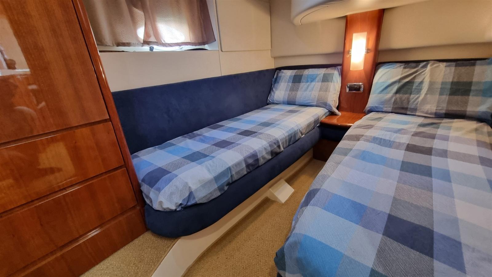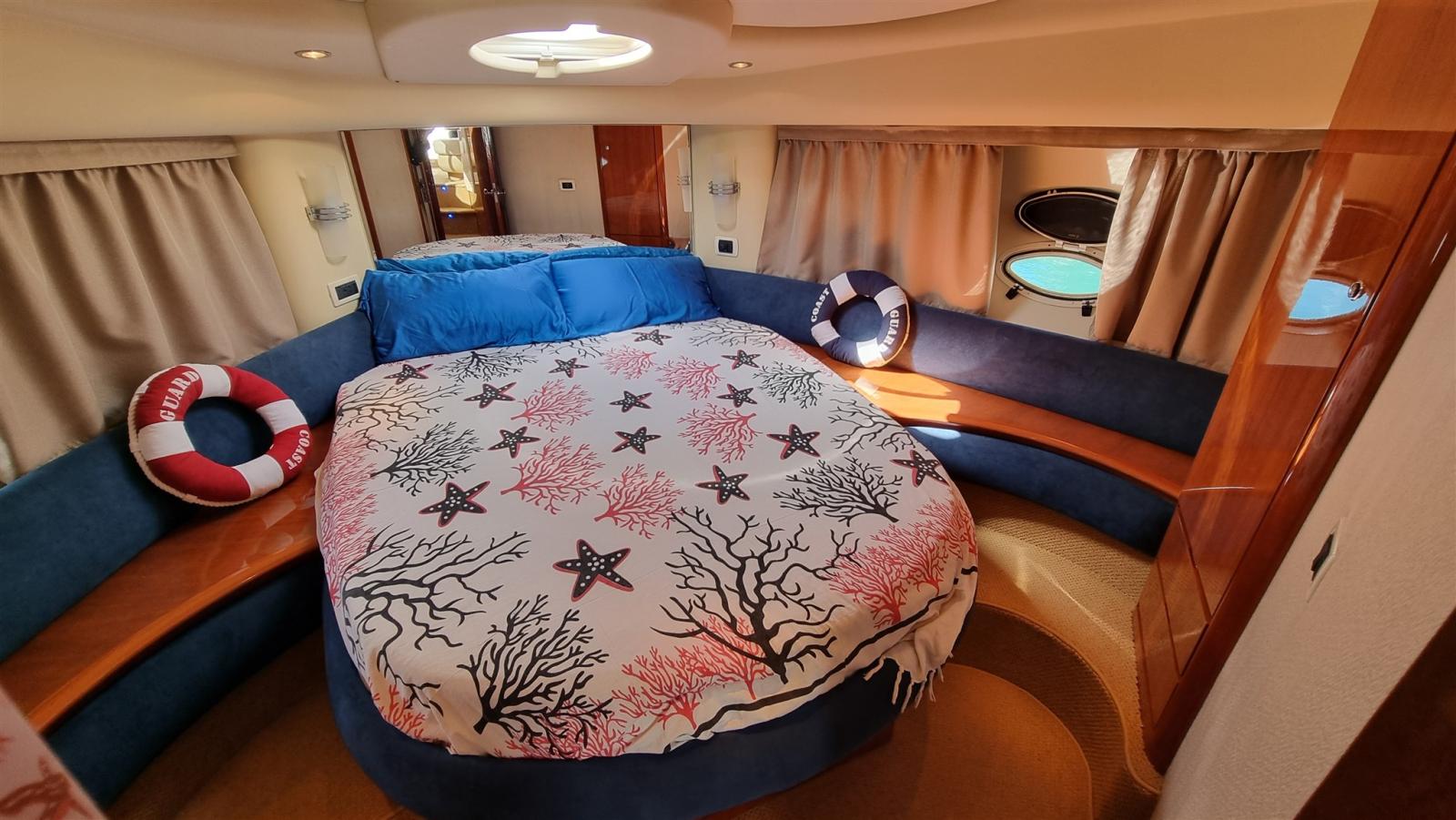 Alarme gaz, Alarme moteur, Alarme de pompe de cale, Eau sous pression, Douche de cockpit, Double barre à roue, Flaps hydrauliques, Extincteur(s) fixe(s), Indicateurs de flaps, Éclairage de courtoisie, Passerelle, Pompe de cale automatique, Pompe de cale manuelle, Porte latérale, Cockpit en teck, Prise de quai, Onduleur, Rollbar, Guindeau électrique, Echelle de bain, table de cockpit, Corne.