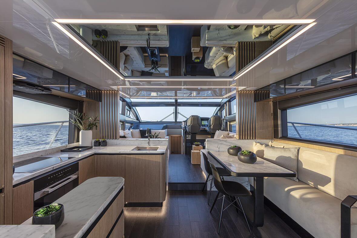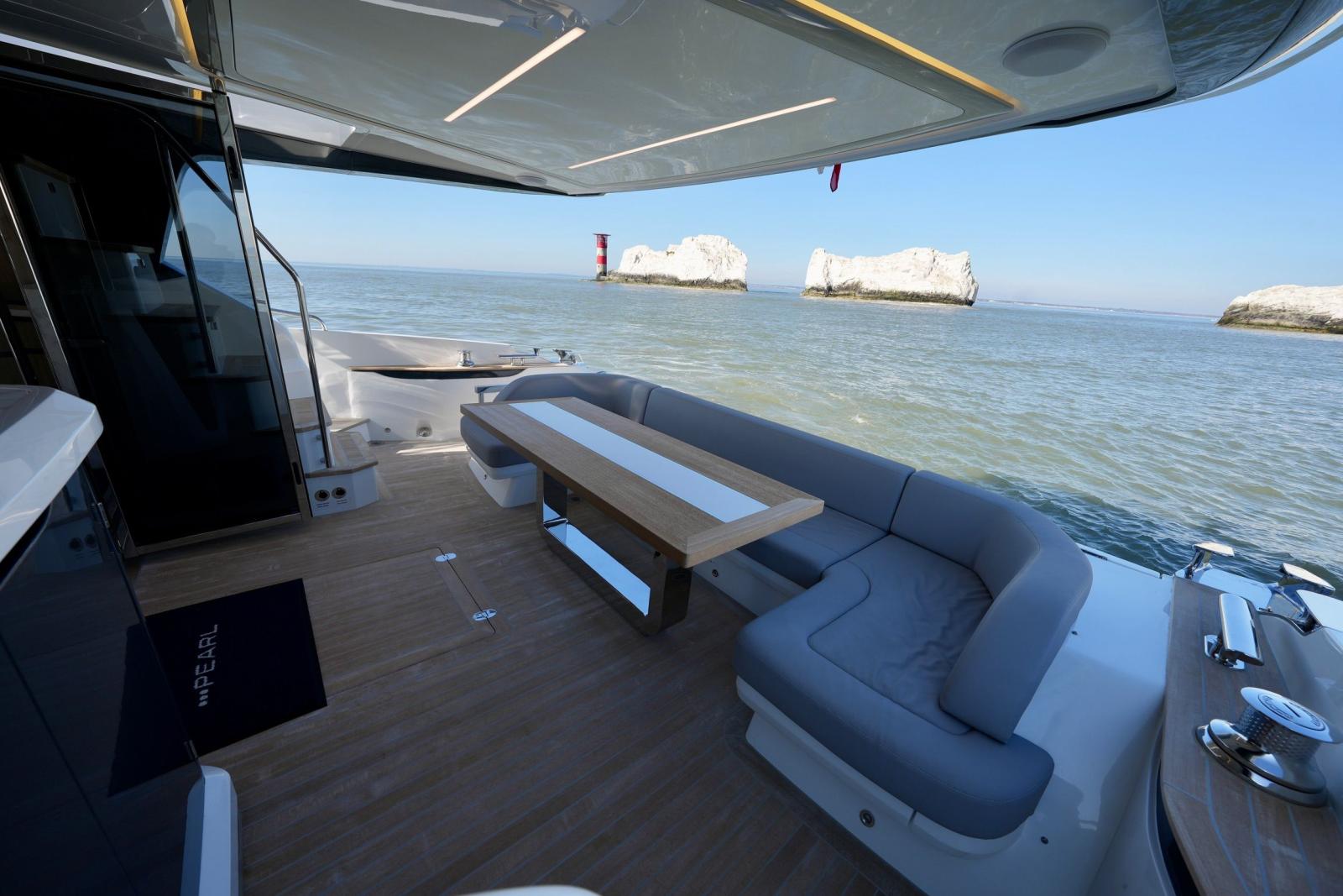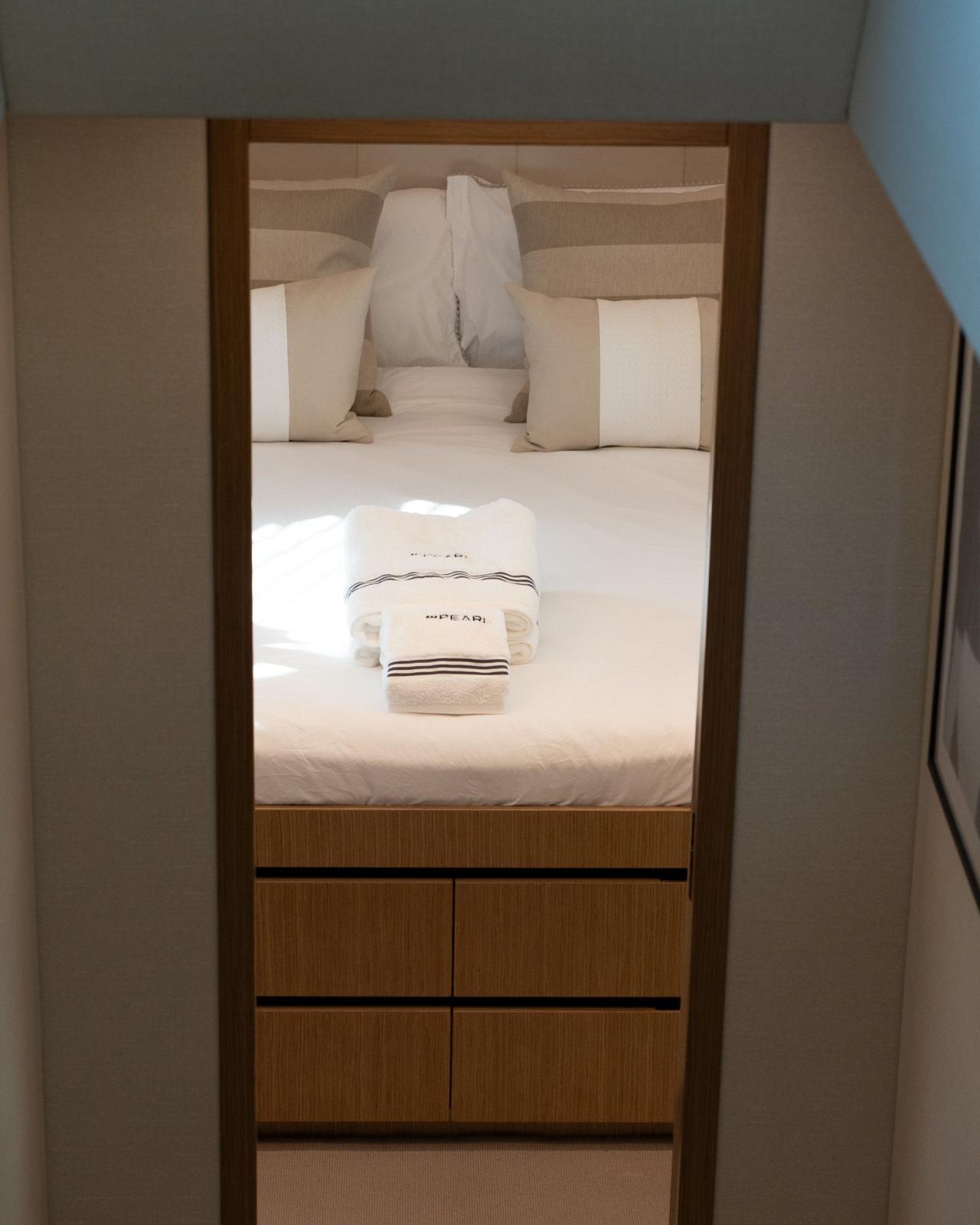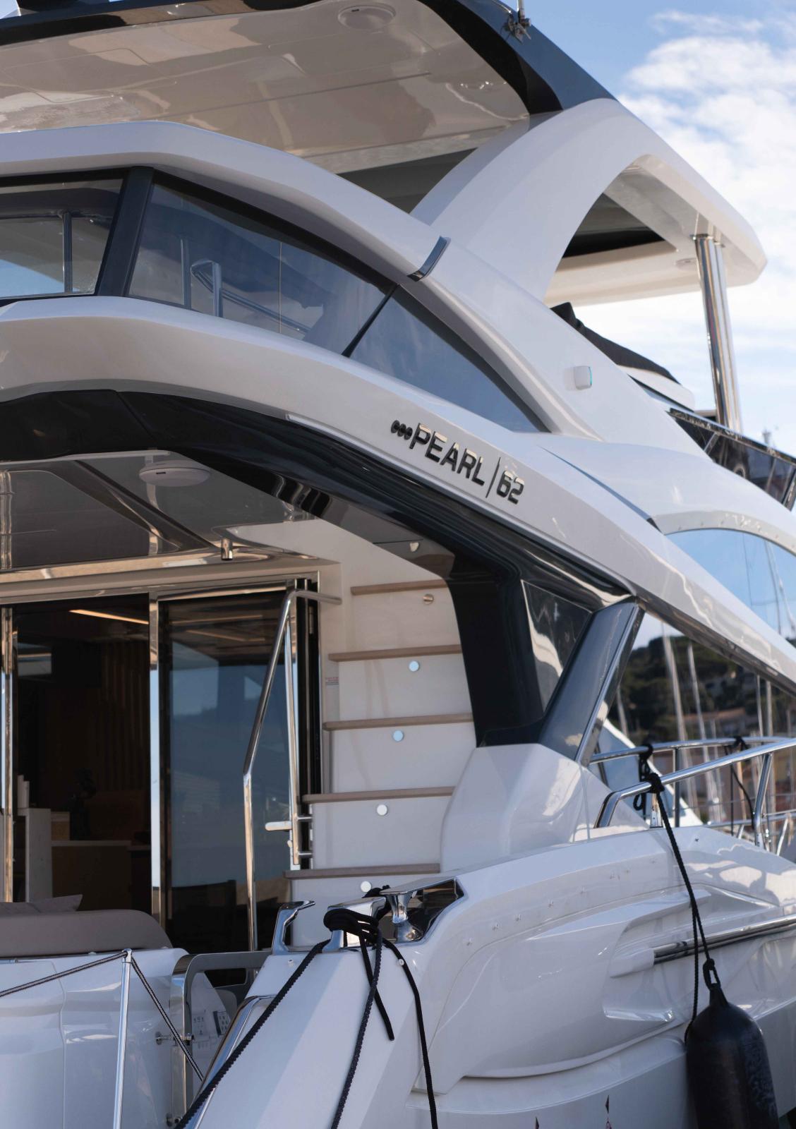 Conçu pour offrir un confort maximal en croisière, le Pearl 62 propose des espaces intérieurs lumineux, une circulation fluide entre les zones de vie et un aménagement idéal pour la navigation en famille ou entre amis. Son flybridge spacieux, ses bains de soleil et son cockpit convivial en font un yacht parfaitement adapté à la plaisance méditerranéenne.