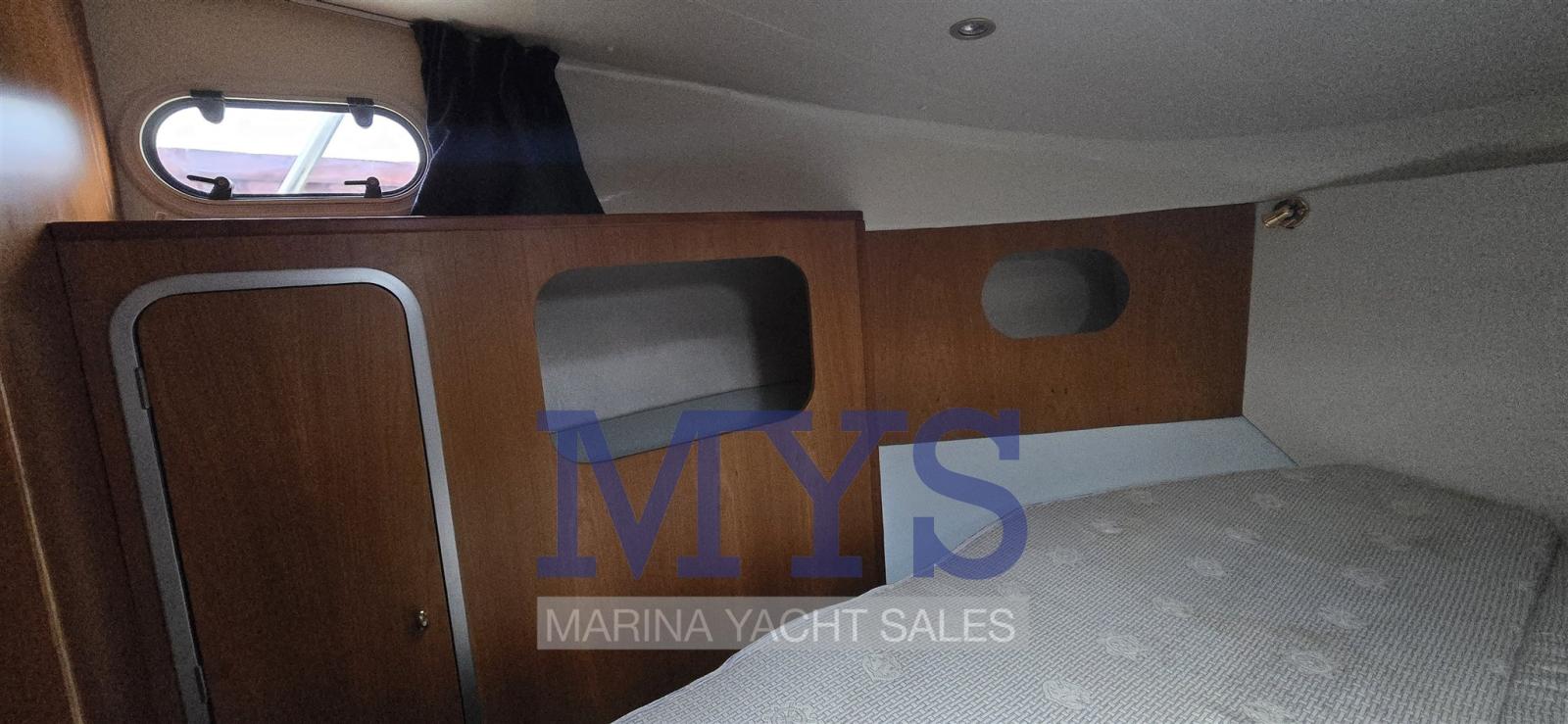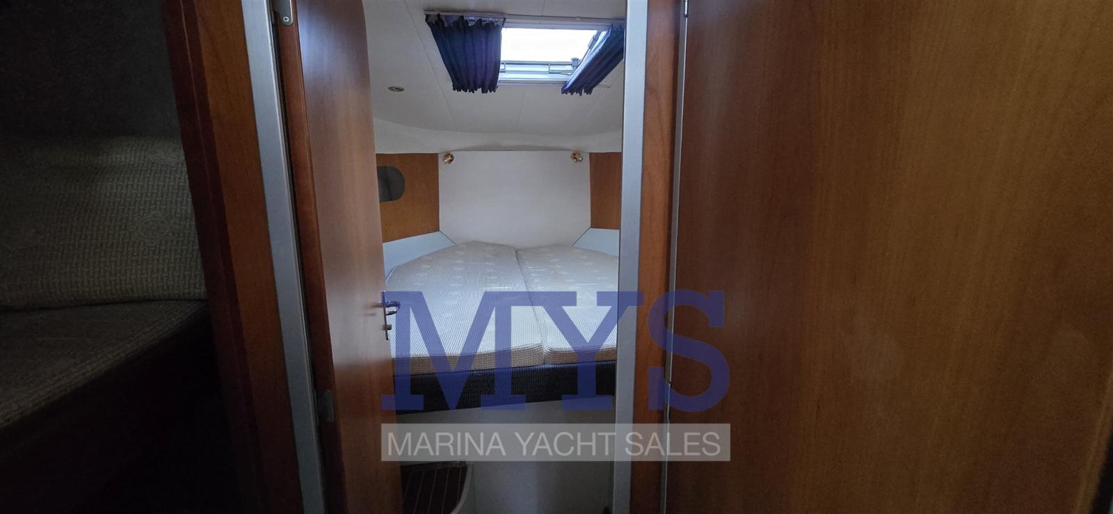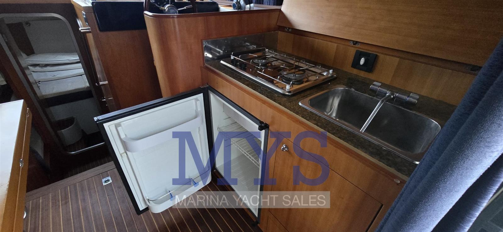 Alarme moteur, Alarme de pompe de cale, Douche de cockpit, Hard top, Lavabo dans le cockpit, Éclairage de courtoisie, Passerelle, Porte latérale, Cockpit en teck, Prise de quai, Guindeau électrique, Echelle de bain, Table pliante de salon, Corne.