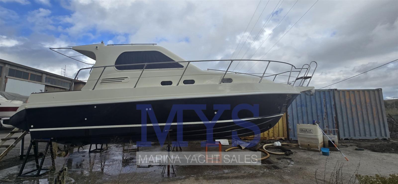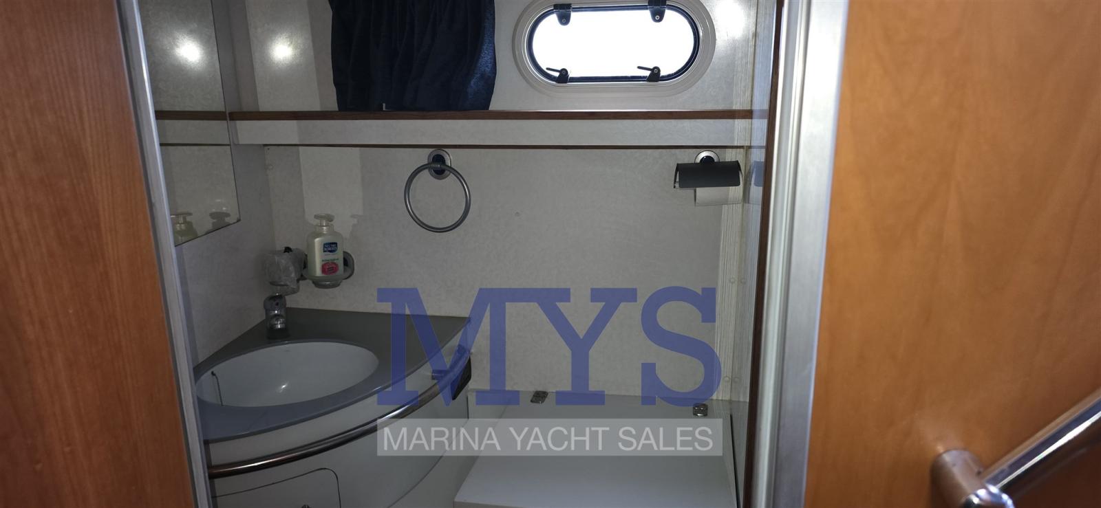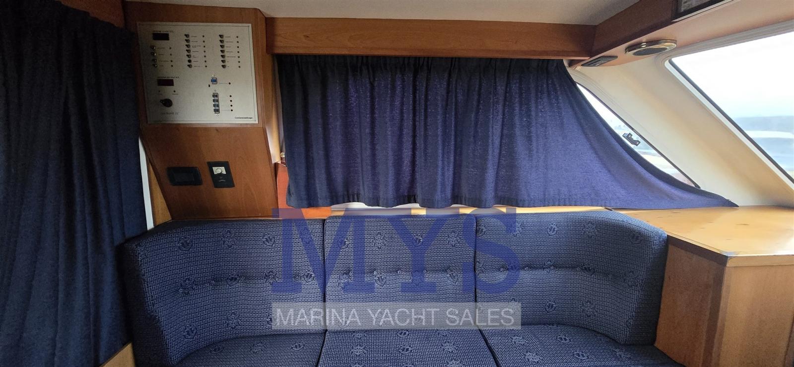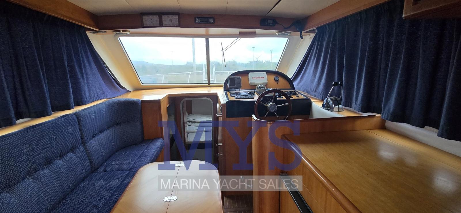 Alarme moteur, Alarme de pompe de cale, Douche de cockpit, Hard top, Lavabo dans le cockpit, Éclairage de courtoisie, Passerelle, Porte latérale, Cockpit en teck, Prise de quai, Guindeau électrique, Echelle de bain, Table pliante de salon, Corne.