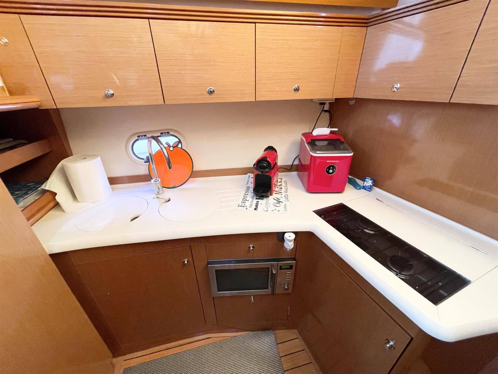 Cuisine, Cuisinière, Glacière, Machine à glaçons, Machine a café, Plaque vitrocéramique.