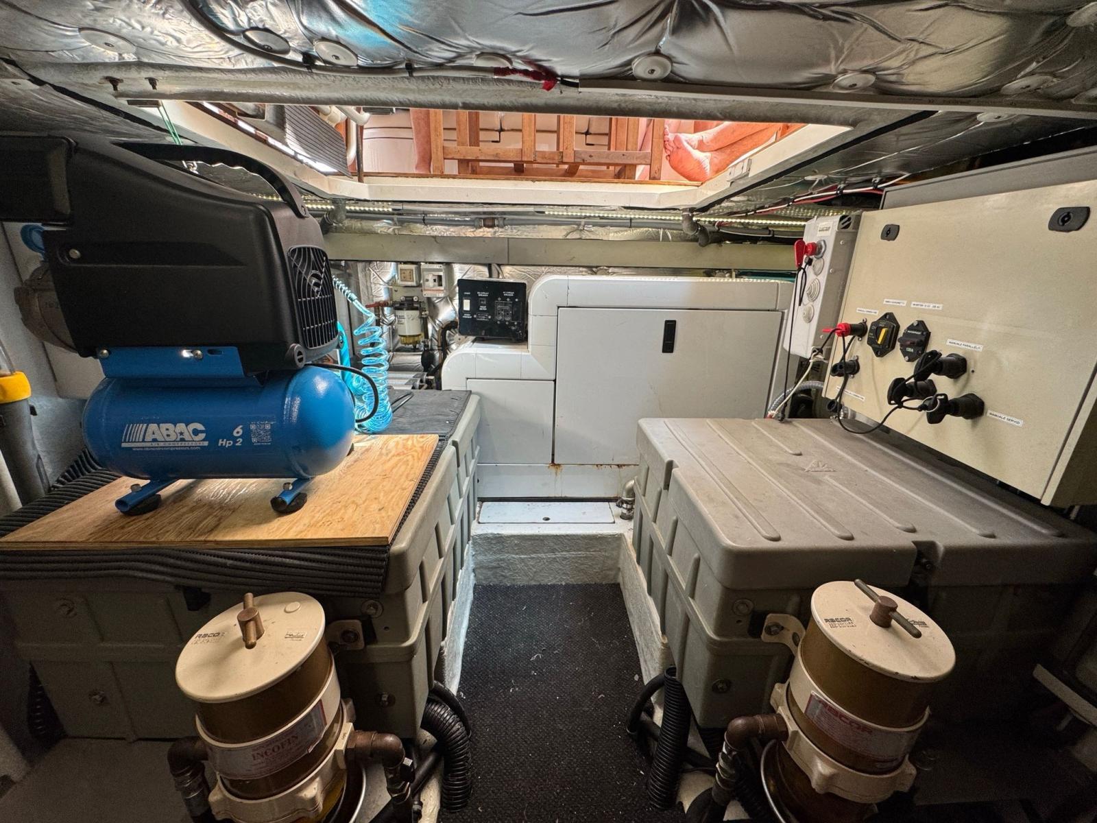 Air conditionné (dinette e cabine), Ballon d'eau chaude (elettrico), Coffre-fort, Air Conditionné, Dessalinisateur (60l/h Schenker), Convertisseur (12/220), Prises interieures 12v, Prises interieures 220v, 2 Toilettes électriques.