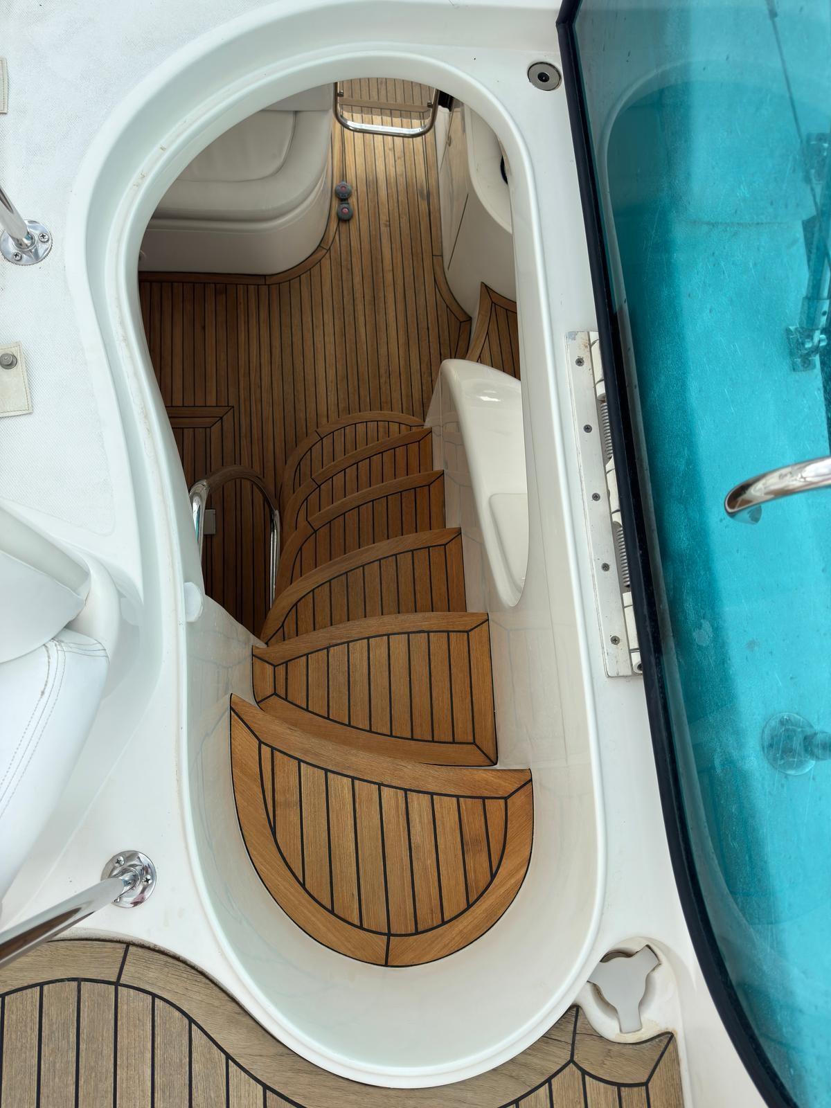 Bimini (sul fly), Taud de cockpit (tendalini ombreggianti pozzetto), Sellerie complète, Coussins arrieres, Coussin avant (+ copertura prendisole), Sellerie de fly, sellerie de cockpit, Tauds de pare-brise, Taud de fly.