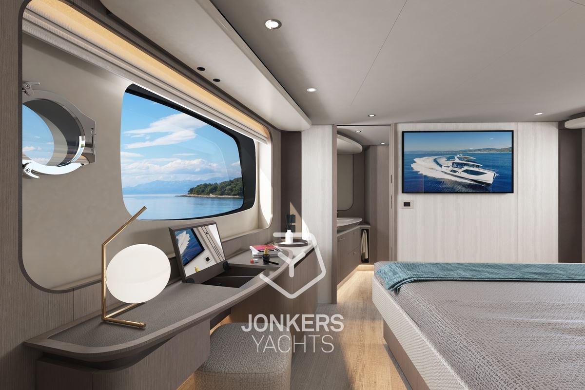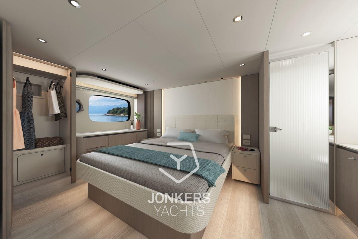 La cabine principale pleine poutre à l’avant est lumineuse et spacieuse, avec un walk-in et un mobilier personnalisable ; la cabine VIP au milieu du navire offre le même niveau de confort avec une salle de bain attenante et de grandes fenêtres panoramiques ; La cabine d’invités comprend deux lits simples pouvant être convertis électriquement en lits doubles.
