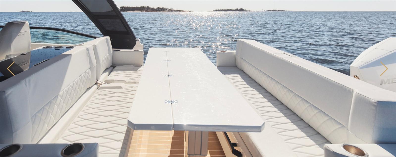Le Saxdor 320 GTO est l’équilibre parfait entre le design italien, la fonctionnalité américaine, la qualité allemande et un prix à la française. Équipé d’un T-top et de passerelles latérales, il offre un design épuré, des performances performantes avec des moteurs hors-bord et une coque efficace et économique en navigation. Les trois versions (GTO, GTC et GT) partagent ces caractéristiques distinctives. La configuration avec un seul moteur V8 Mercury de 300 ch lui permet d’atteindre une vitesse maximale de 40 nœuds, avec une croisière confortable autour de 30 nœuds. Avec deux moteurs de 300 ch, en revanche, le Saxdor 320 dépasse facilement les 50 nœuds, en maintenant une vitesse optimale entre 20 et 40 nœuds. Le solarium prolongé à l’avant et la dînette qui se transforme en espace de détente offrent amplement d’espace pour s’allonger et profiter du soleil. De plus, d’un simple geste, le dossier rabattable transforme les sièges avant en banquettes confortables tournées vers l’avant pour accueillir les invités. Contactez-nous pour plus de détails.