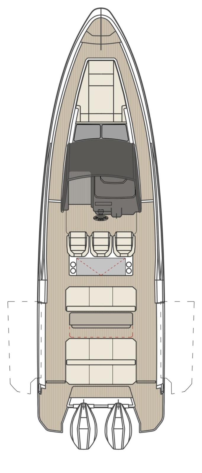 2 Alarme moteur, Alarme de pompe de cale, Eau sous pression, 4 Batteries, Hard top, Lavabo dans le cockpit, Éclairage de courtoisie, Plateforme arrière, 2 Pompe de cale automatique, Porte latérale, Echelle de bain, Corne.