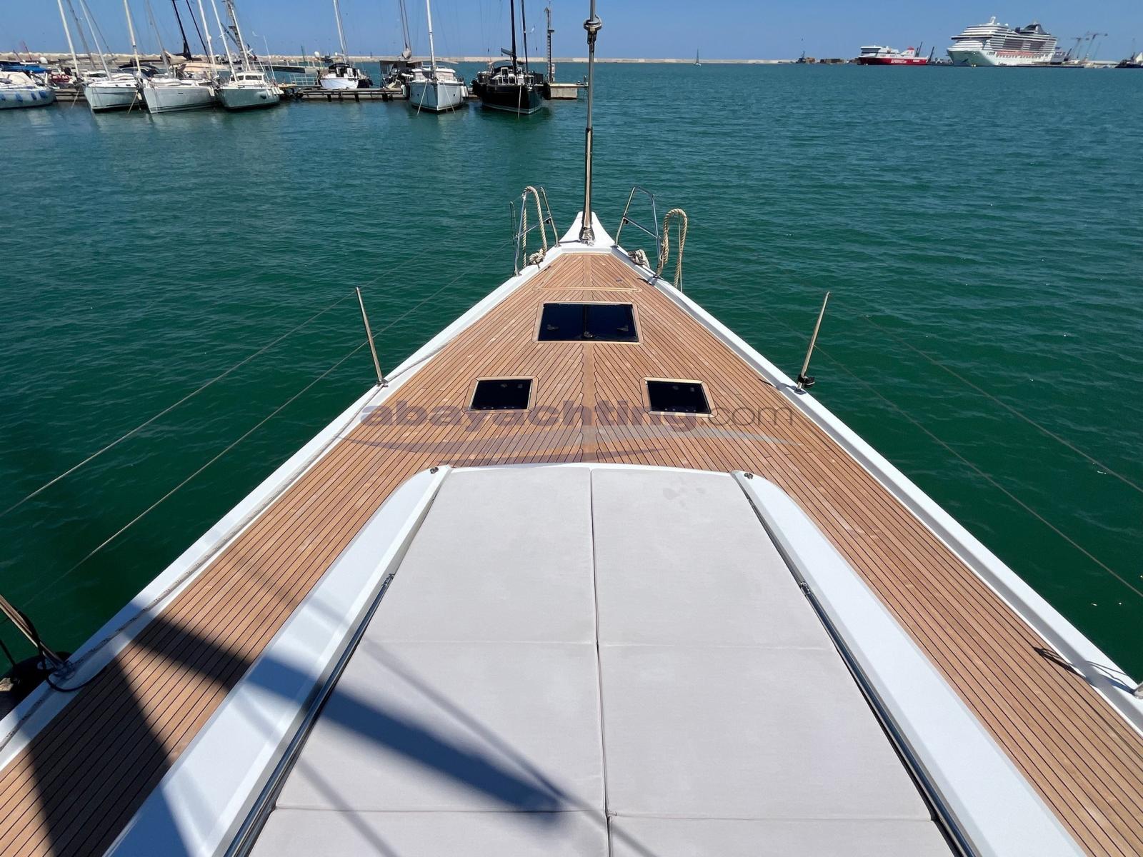 Ancre (DELTA 25KG + CATENA 125 MT), Ligne d'arbre de rechange, Eau sous pression, 6 Batteries, Passavant en teck, Douche de cockpit, Double barre à roue, Propulseur d'étrave (RETRATTILE), Passerelle (IN CARBONIO), Plateforme arrière (ELETTRICA), Pompe de cale manuelle, Cockpit en teck, Prise de quai, Guindeau électrique (Salpa ancora elettrico da 1500W con comando ripetuto in pozzetto e contametri), Gréement Rod, Echelle de bain, Chaise support HB, table de cockpit, Pont en teck, 4 Winch (2 ELETTRICI HARKEN RADIAL MAGGIORATI 60" + 2 DA 50).