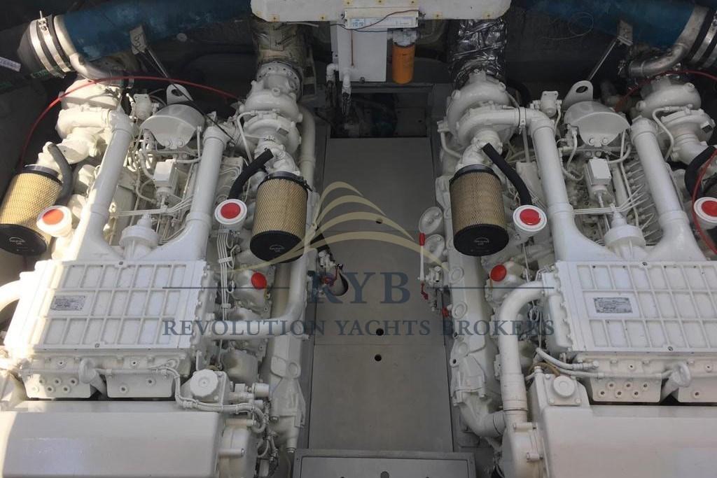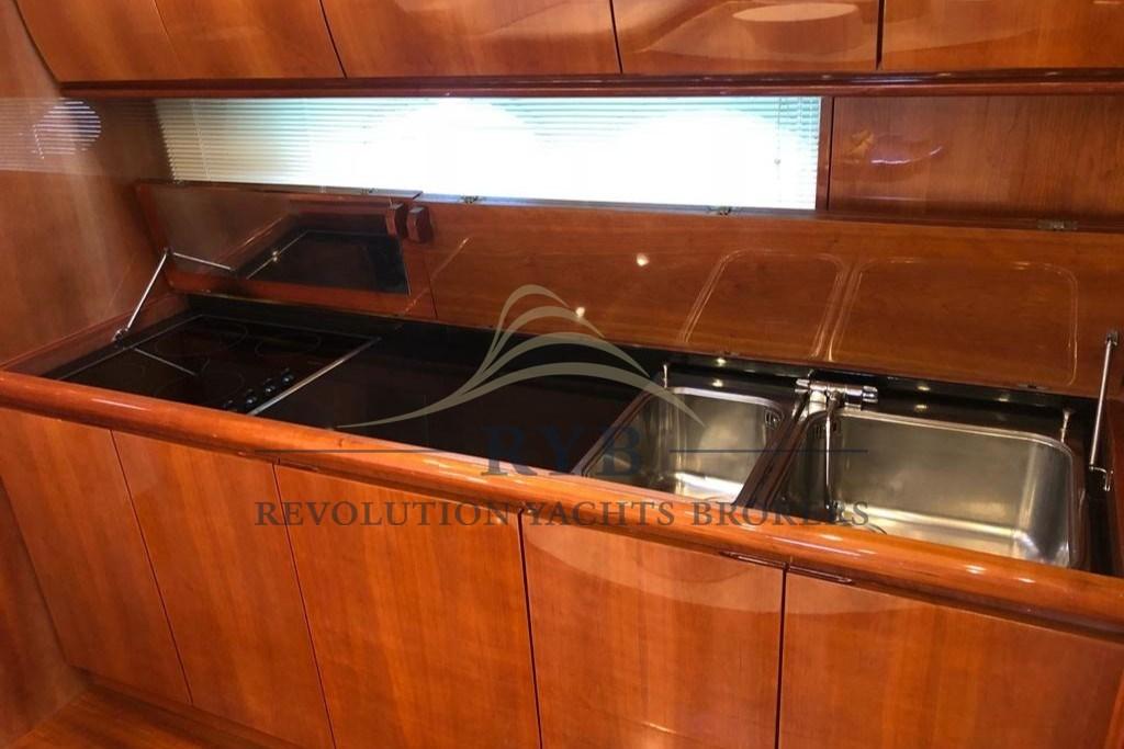 Alarme moteur, Eau sous pression, Douche de cockpit, Phare de poursuite, Flaps hydrauliques, Hard top, Indicateurs de flaps, Lavabo dans le cockpit, Éclairage de courtoisie, Spots sous-marins, Passerelle (idraulica), Plateforme arrière (TEAK), Pompe de cale automatique, Cockpit en teck, Prise de quai, Onduleur, Guindeau électrique, Echelle de bain, table de cockpit, Table pliante de salon, Corne, Winch électrique arrière.