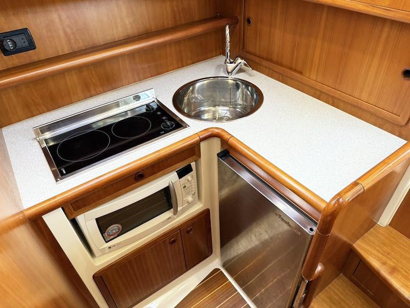 Feux de navigation ; Feu d’ancre ; Phare ; Un guindeau électrique ; Encore une fois ; Bornes d’amarrage ; Essuie-glaces ; Rampes en bois ; radeau de sauvetage ; Mât de drapeau en bois ; cockpit en teck ; passerelle hydraulique Opacmare ; quai arrière ; Douche dans le cockpit ; Auvent de cockpit ; Échelle de nage ; Enceintes du cockpit ; Lumières du cockpit ; Coussins de pont ouvrant à l’avant ; Crochet en bois pour bateaux ; Autoclave ; Pompe à eau salée ; Pompes de cale électriques ; Prise 220V ; Des volets ; Sirène ; Mod de générateur. Dynamica ; Batteries ; Charger ; Déconnexion de batterie ; Chaudière ; Micro-ondes ; Modification du frigo. Frigoboat ; Congélateur ; Propulseur d’arc ; La climatisation ; Toilettes électriques ; Plaque de brûleur en verre en céramique