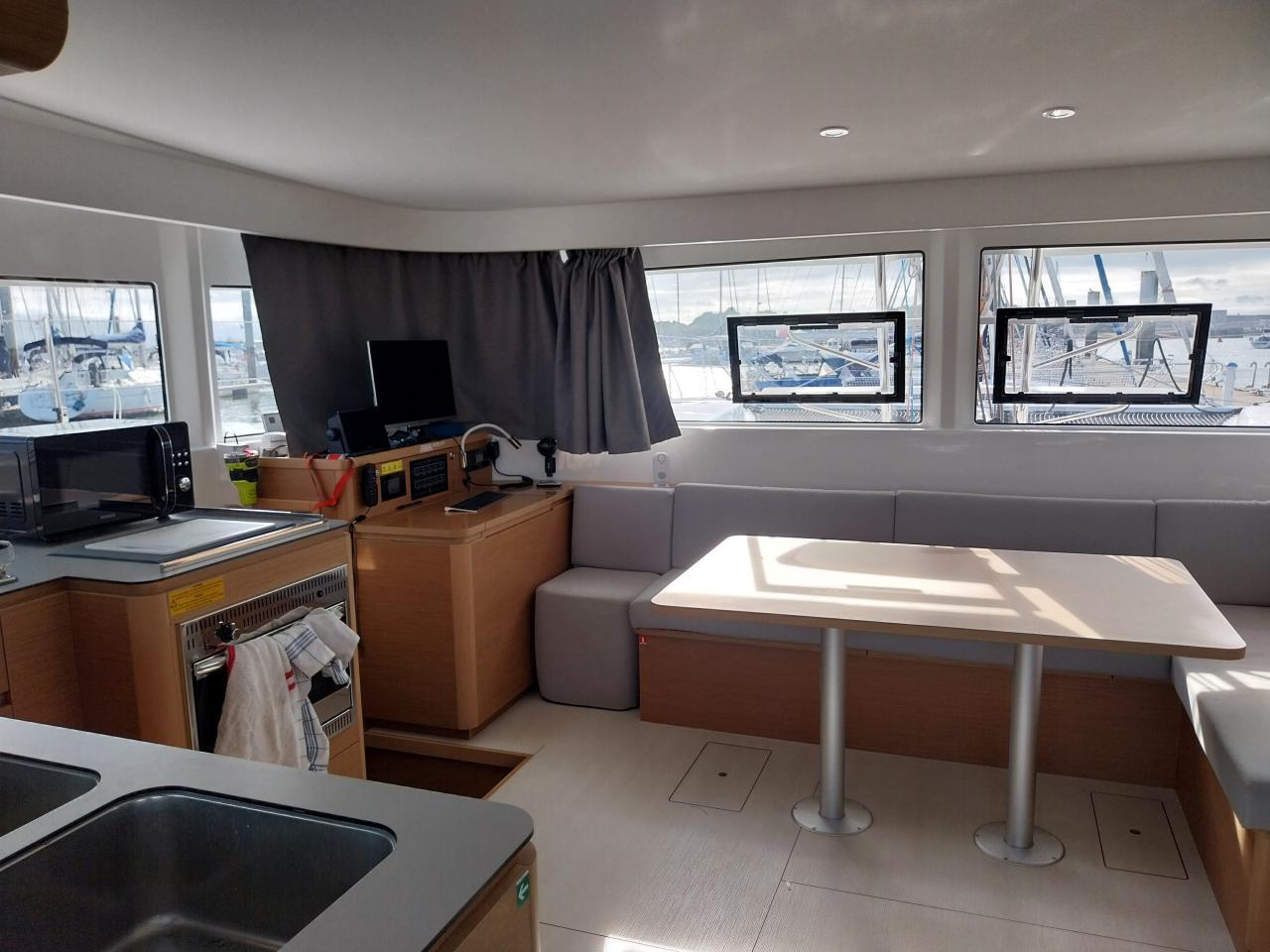Table du carré en avant à tribord avec banquette en L