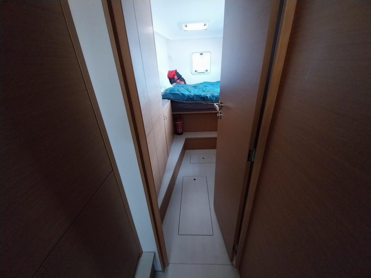 Une pointe avant bâbord pour rangements ou cabine simple matelas et hublot petit meuble de rangement