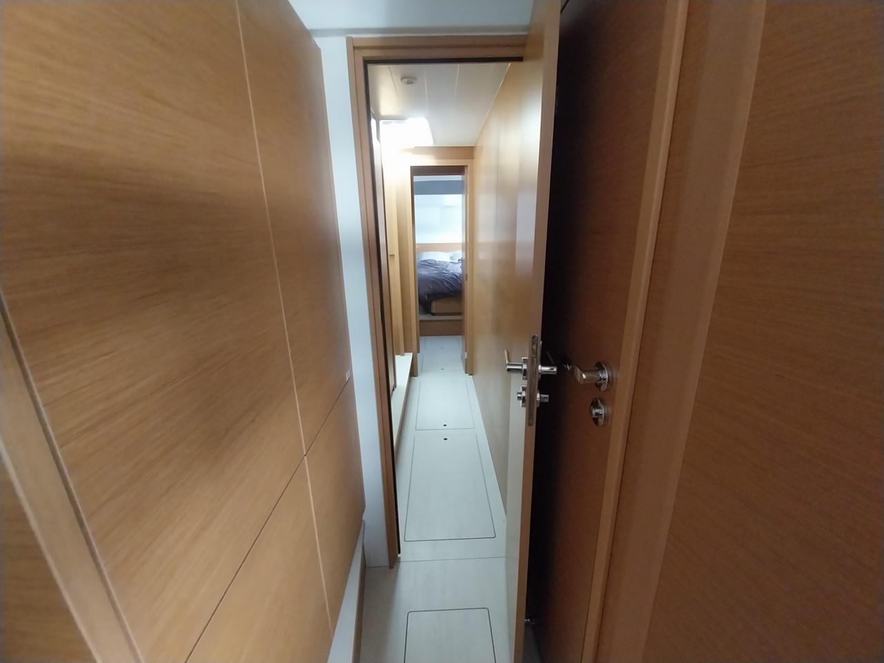 Une cabine double à l’avant avec penderie, coffre sous couchette et rangements