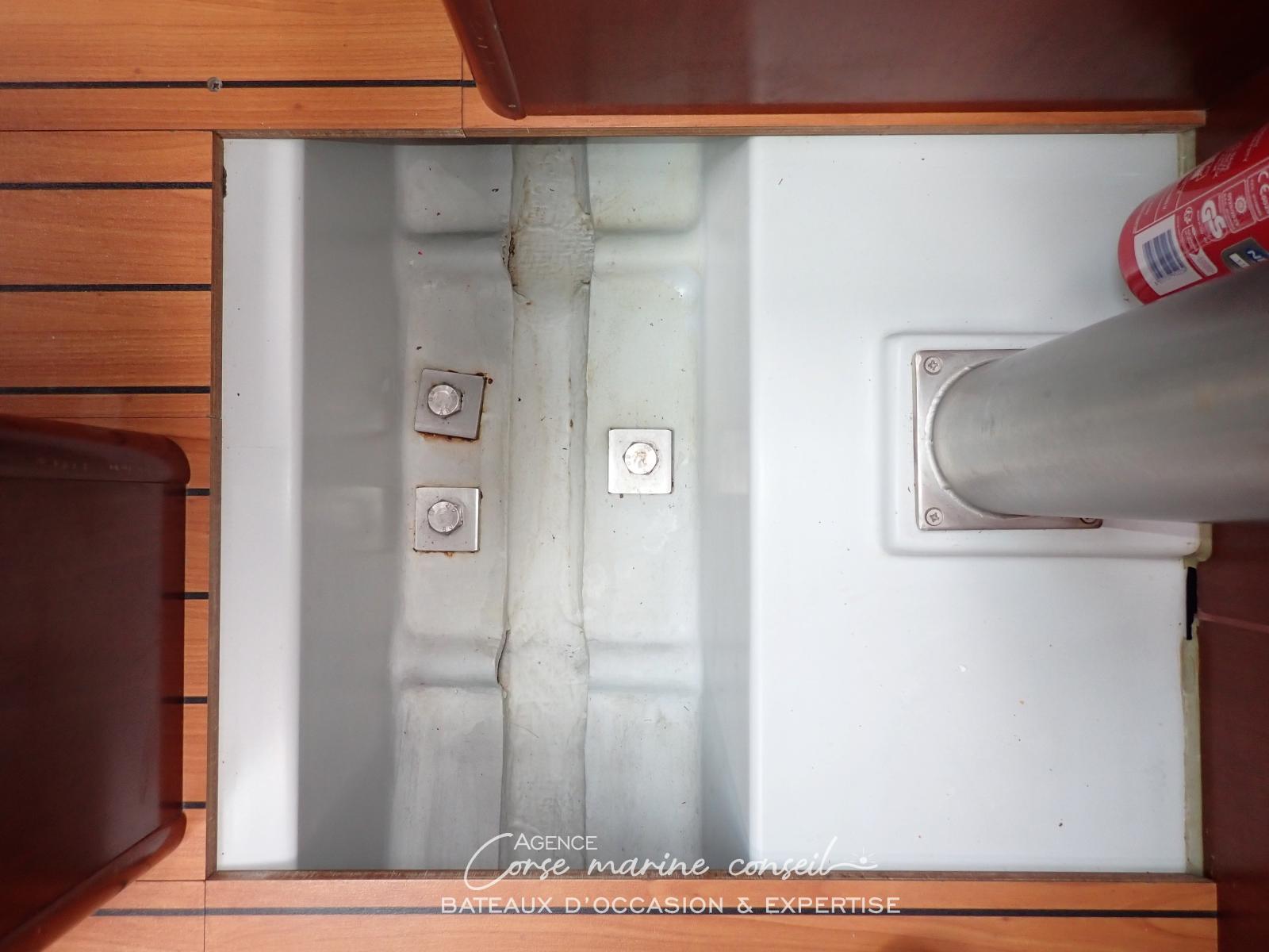 Table à carte sur tribord, placard et comptoir en enfilade sur tribord