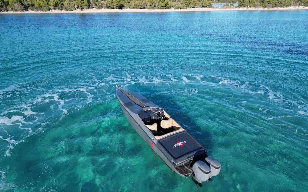 Véritable légende de l’offshore américain, le Cigarette Café Racer 35 incarne l’ADN pur de la performance et du design intemporel.