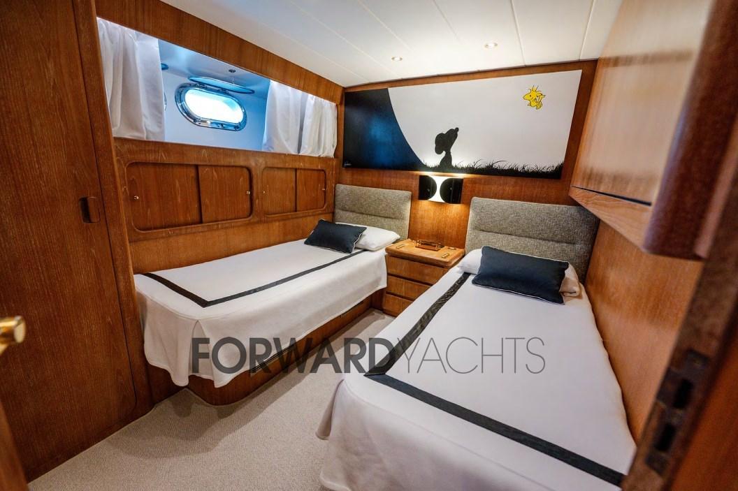 Le bateau est équipé de 2 moteurs MTU 2 300Hp et équipé de nombreux accessoires, notamment : stabilisateurs d’ailerons CMC, nouveaux générateurs Mase, nouveau dessalinisateur 400l/h, peinture de coque 2024, grue sur le flybridge et bien plus encore.