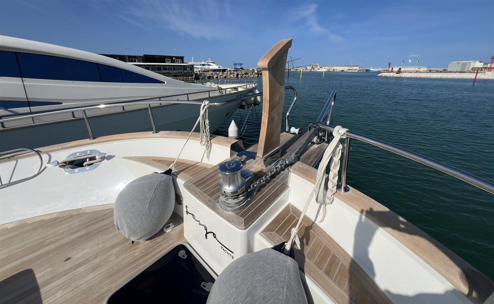 Alarme moteur, Alarme de pompe de cale, Ouverture du compartiment moteur électrique, 2 Eau sous pression, 2 Radeau de sauvetage (CIASCUNO DA 6 PERSONE), Passavant en teck, Chargeur de batterie (VICTRON 24V 70A), Douche de cockpit, Phare de poursuite, Flaps hydrauliques (INTRUDER), Extincteur(s) fixe(s), Indicateurs de flaps, Lavage de chaine, Éclairage de courtoisie, Pompe de cale automatique, Porte latérale, Cockpit en teck, Prise de quai, Connexion eau sous pression à quai, Répétiteur électronique, Guindeau électrique, Echelle de bain, Selles pour Annexe, table de cockpit (IN LEGNO - REGOLABILE IN ALTEZZA ELETTRICAMENTE), Table pliante de salon, Annexe, Filières avec sortie latèrale, Corne, 2 Winch électrique arrière, Winch électrique avant.