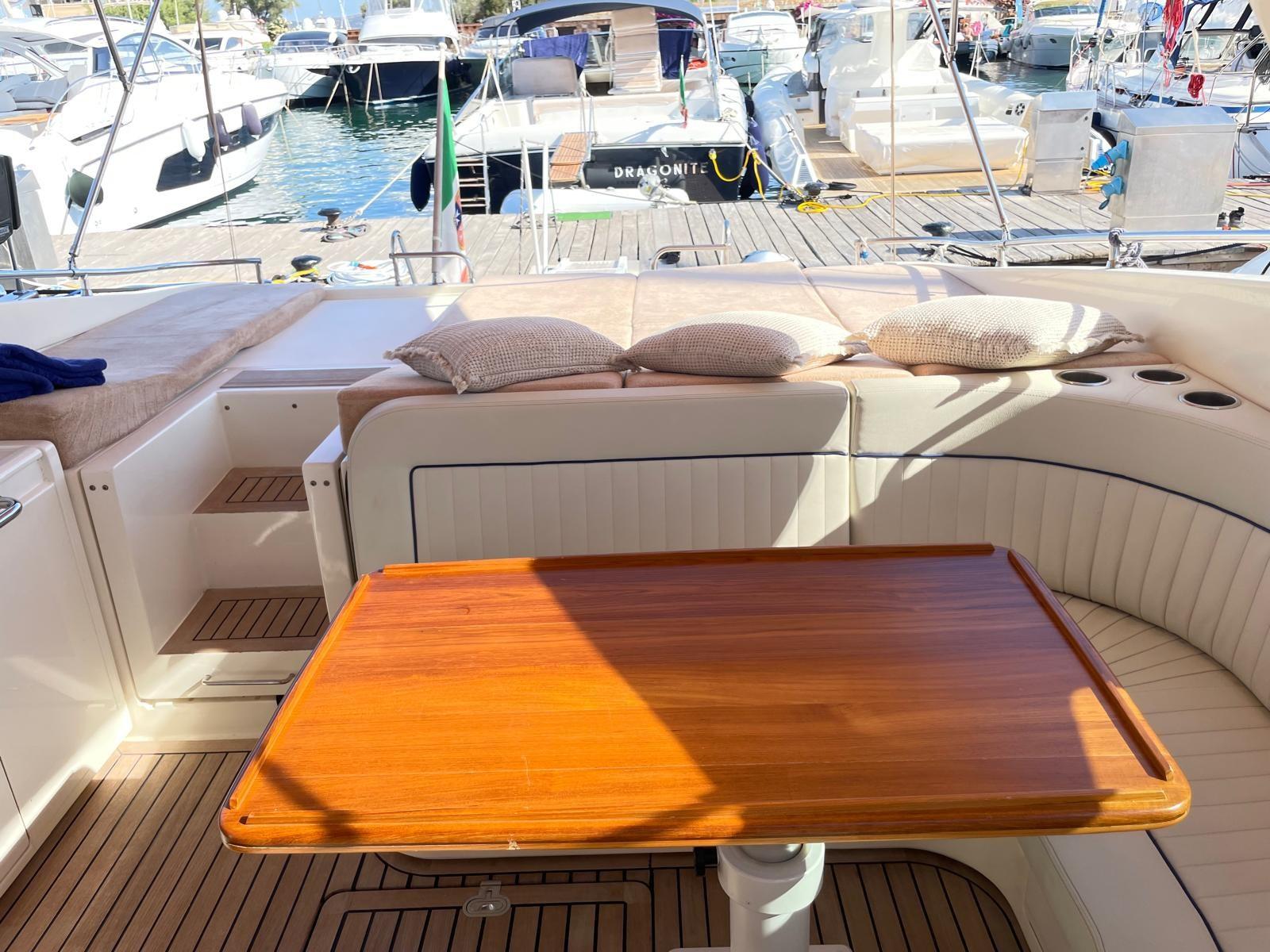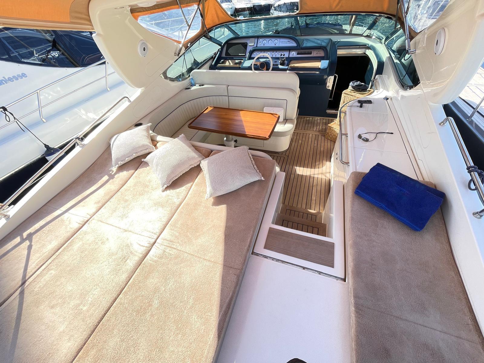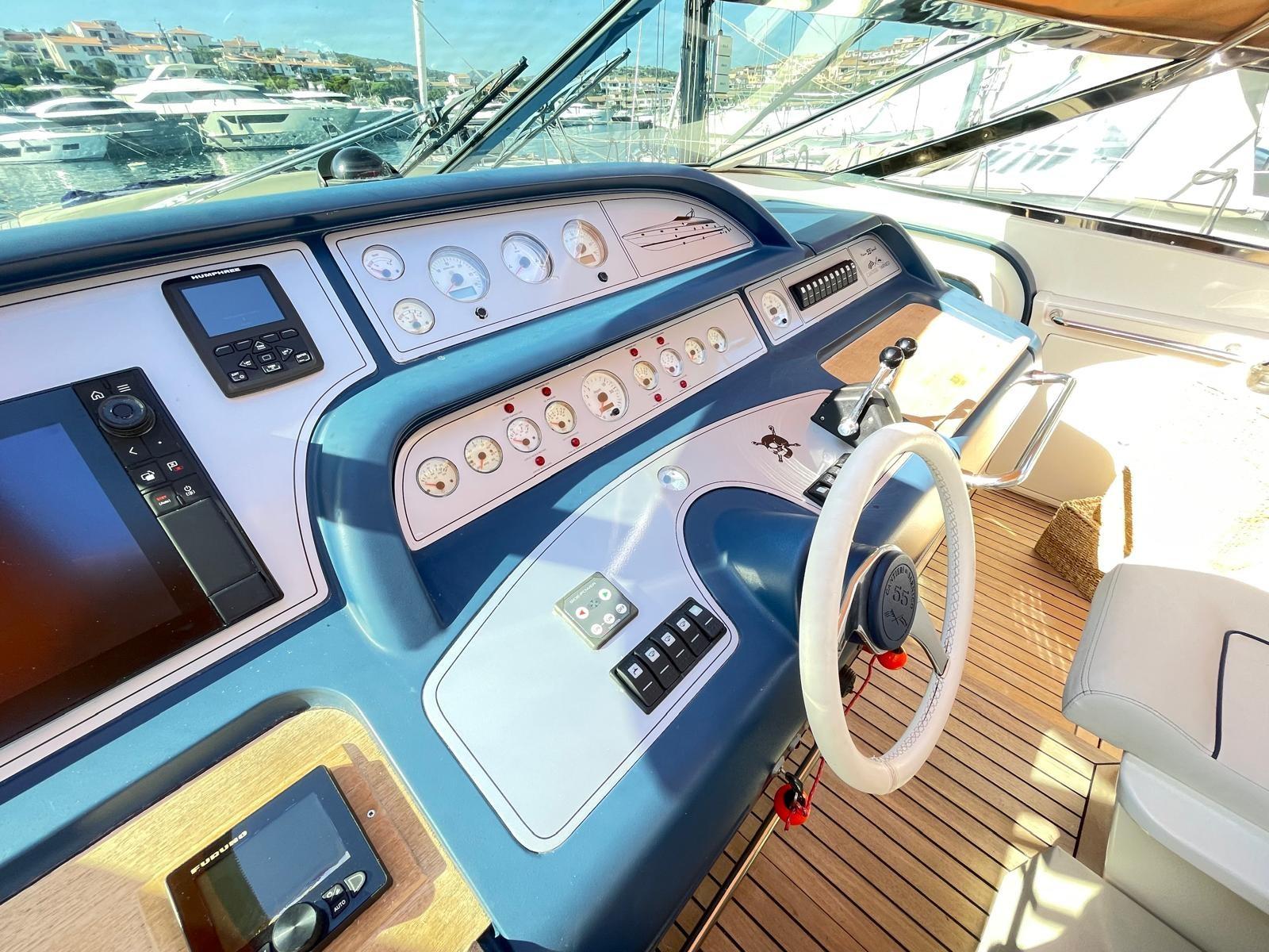 Le Sarnico Maxim 55 est un yacht à moteur de luxe d’environ 17 mètres de long, caractérisé par un design élégant et des espaces extérieurs généreux tels que le cockpit et le bain de soleil.