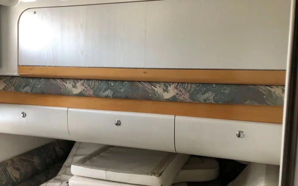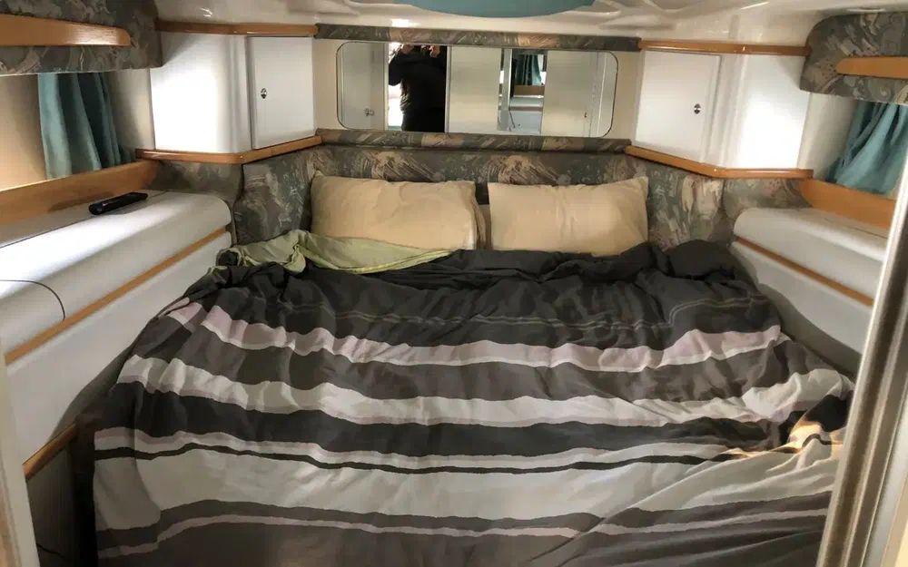 Avec ses 2 cabines confortables et la possibilité d’y loger aisément 6 personnes grâce à un carré transformable, invitez famille ou amis sans compter. Chacun y trouvera son bonheur, que ce soit pour bronzer sur le bain de soleil avant ou profiter du réfrigérateur bien rempli avant une sieste réparatrice.