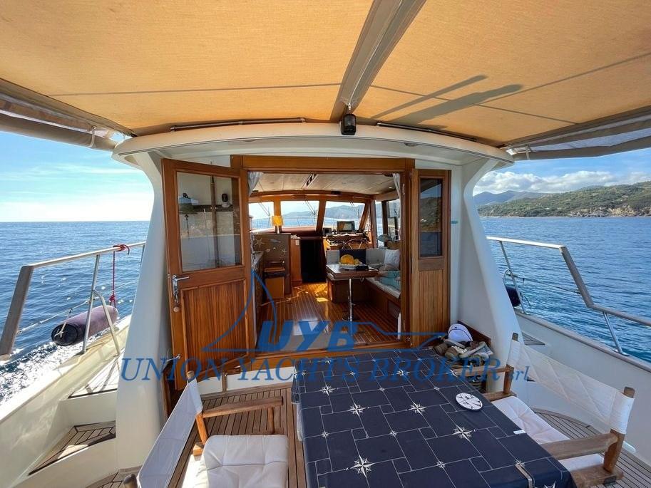 Eau sous pression, 3 Batteries, Passavant en teck, Chargeur de batterie (Victron), Douche de cockpit, Flaps hydrauliques, Panneau solaire, Passerelle (idraulica), Plateforme arrière (strutturale), Pompe de cale manuelle, Prise de quai, Guindeau électrique, Echelle de bain, Winch électrique arrière.