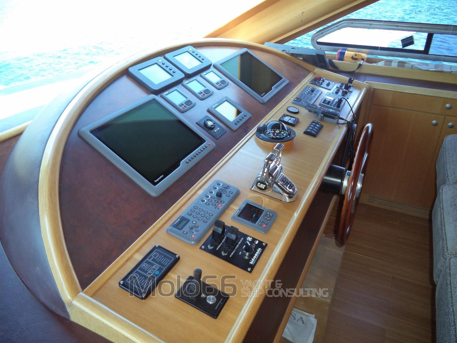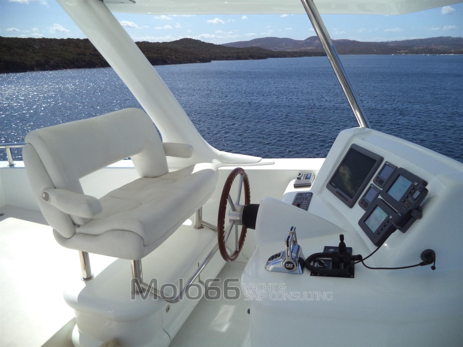 Alarme moteur, Alarme de pompe de cale, 2 Ancre, Eau sous pression, Passavant en teck, Douche de cockpit, Double barre à roue, Flaps hydrauliques, Hard top, Extincteur(s) fixe(s), Plateforme arrière, Pont en teck, Cockpit en teck, 2 Guindeau Hydraulique, Echelle de bain, Winch électrique arrière, Winch électrique avant.