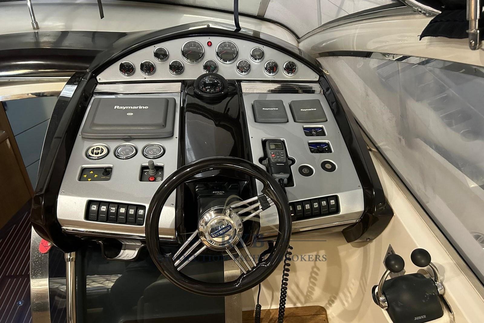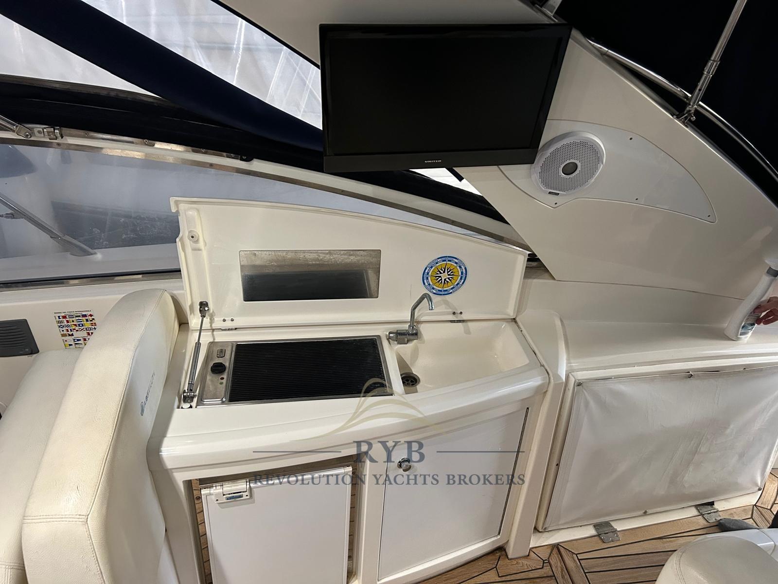 Alarme moteur, Eau sous pression, 4 Batteries, Douche de cockpit, Flaps électriques, Garage à annexe, Extincteur(s) fixe(s), Lavabo dans le cockpit, Passerelle (idraulica a scomparsa), Plateforme arrière, Pompe de cale automatique, Porte latérale, Cockpit en teck (2015 nuovo), Prise de quai, Onduleur, Rollbar, Guindeau électrique, Echelle de bain, table de cockpit, T-Top.