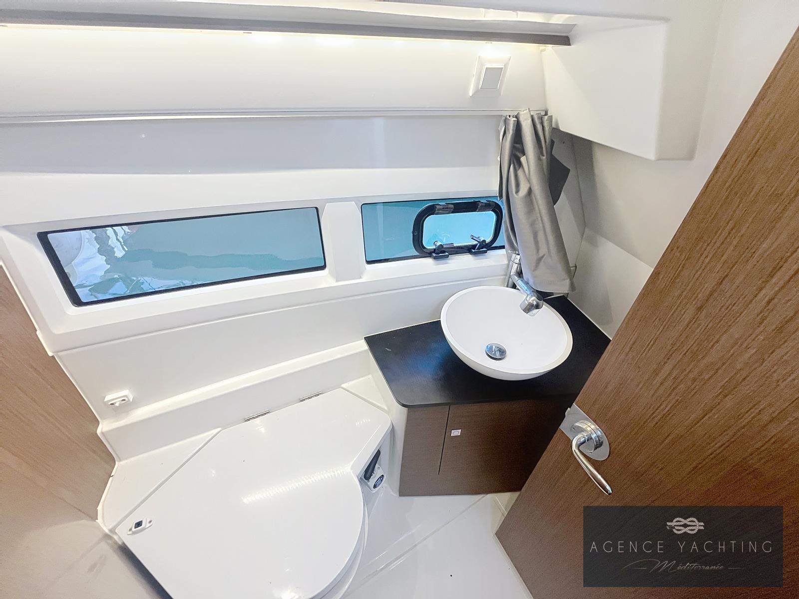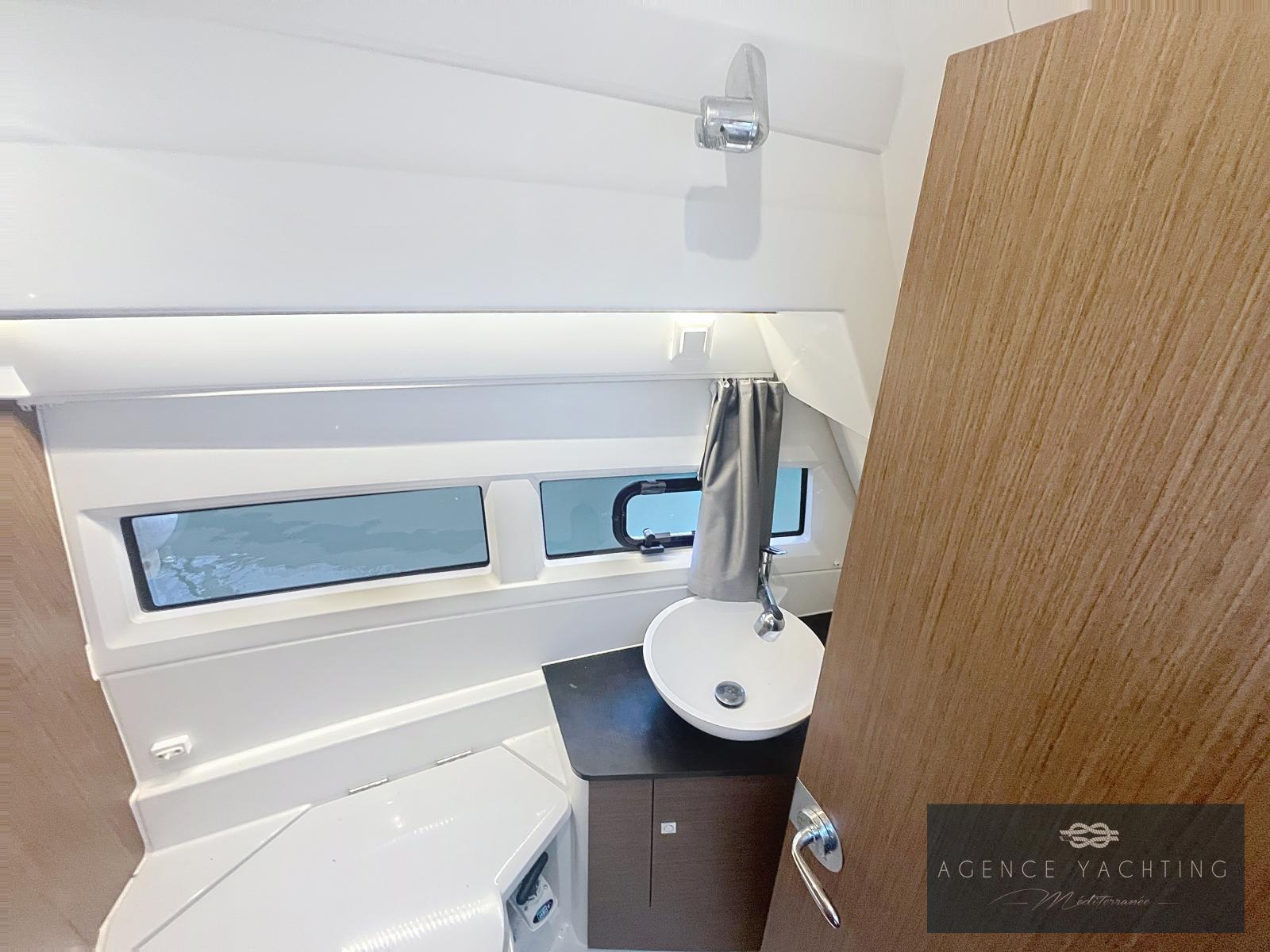 À l’extérieur, tout est conçu pour la convivialité et le plaisir en mer. Le cockpit modulable permet de passer facilement d’un espace repas à un large bain de soleil, tandis que les grandes plateformes de bain et l’échelle inox facilitent l’accès à l’eau en toute sécurité. Les moments au mouillage sont sublimés par une circulation fluide entre les espaces et un équipement pensé pour le confort à bord, aussi bien en navigation qu’à l’arrêt.