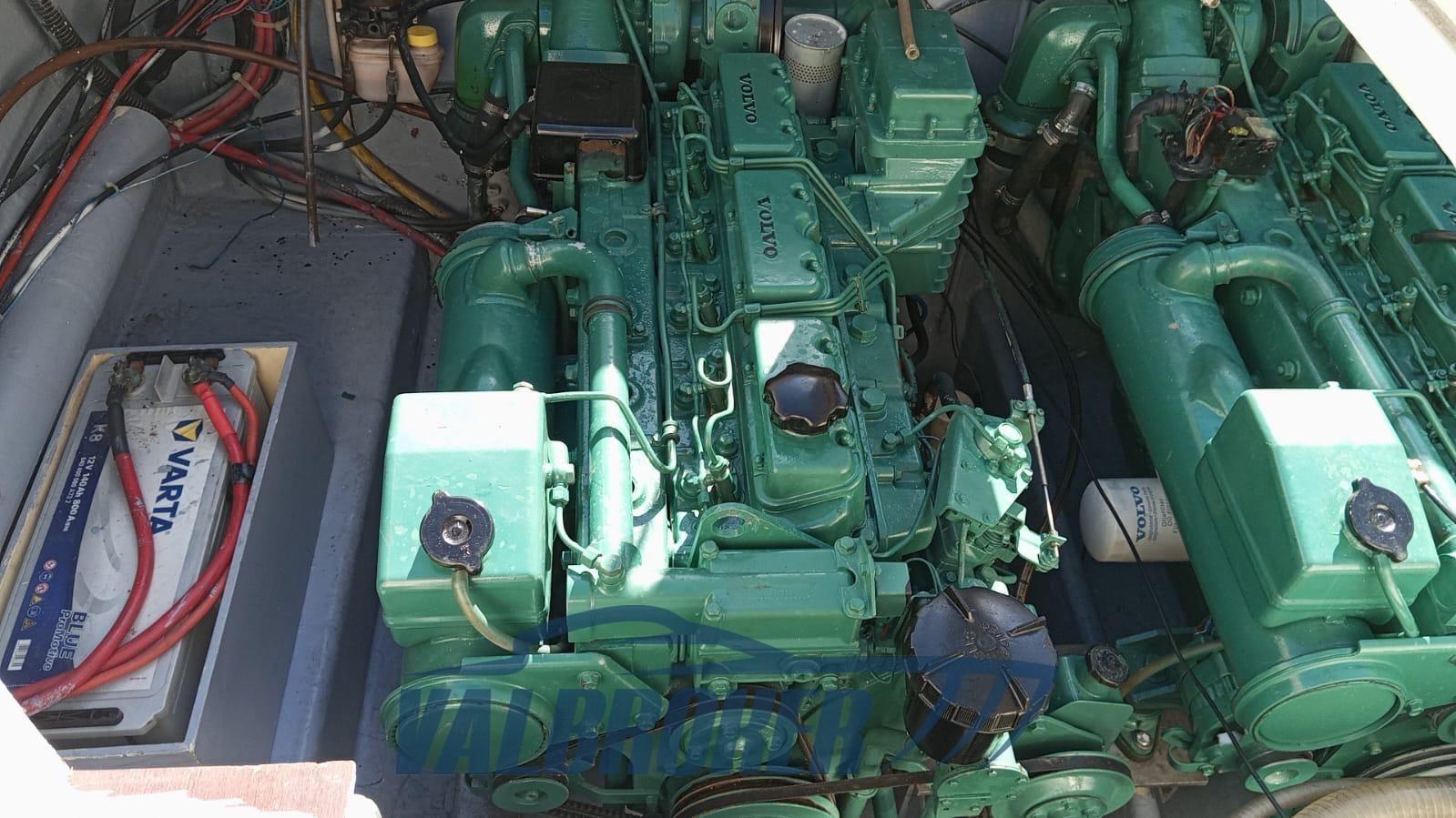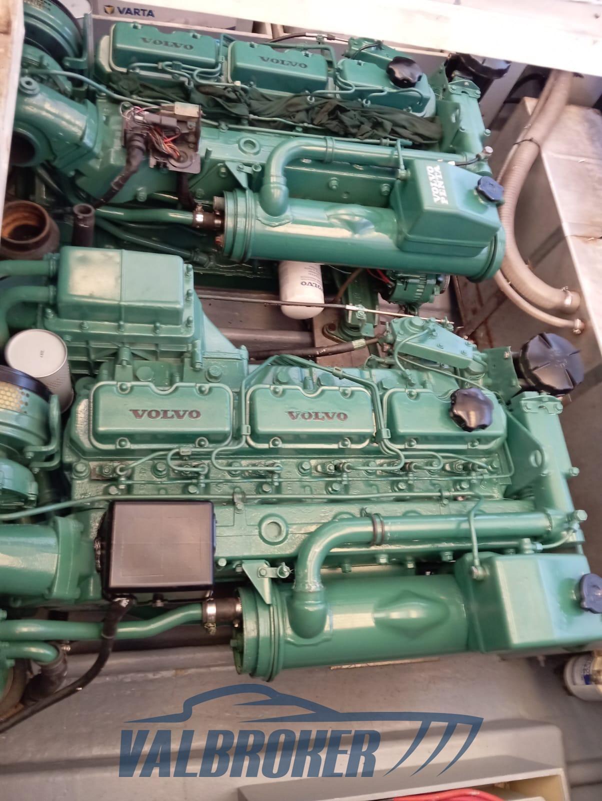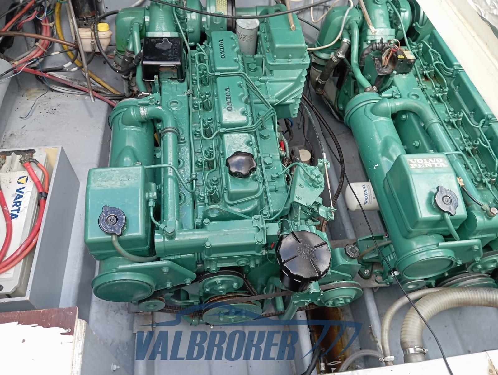 Travaux réalisés en 2024 : remplacement de 2 batteries de service et 2 moteurs, treuil, guindeau électrique, nettoyage et dessalement de l’intérieur de la cabine, remplacement des filtres diesel, peinture de la cale et de la salle des machines, remplacement de 4 hélices sur les deux transmissions, remise en état des moyeux de transmission arrière.