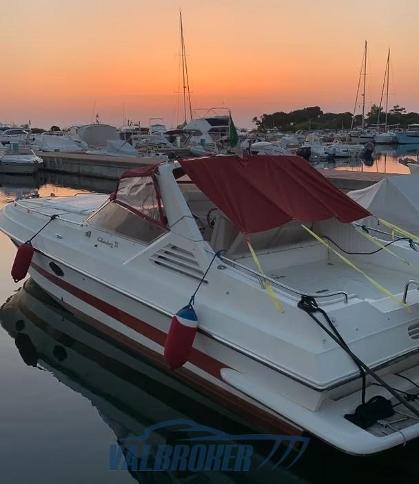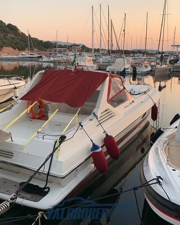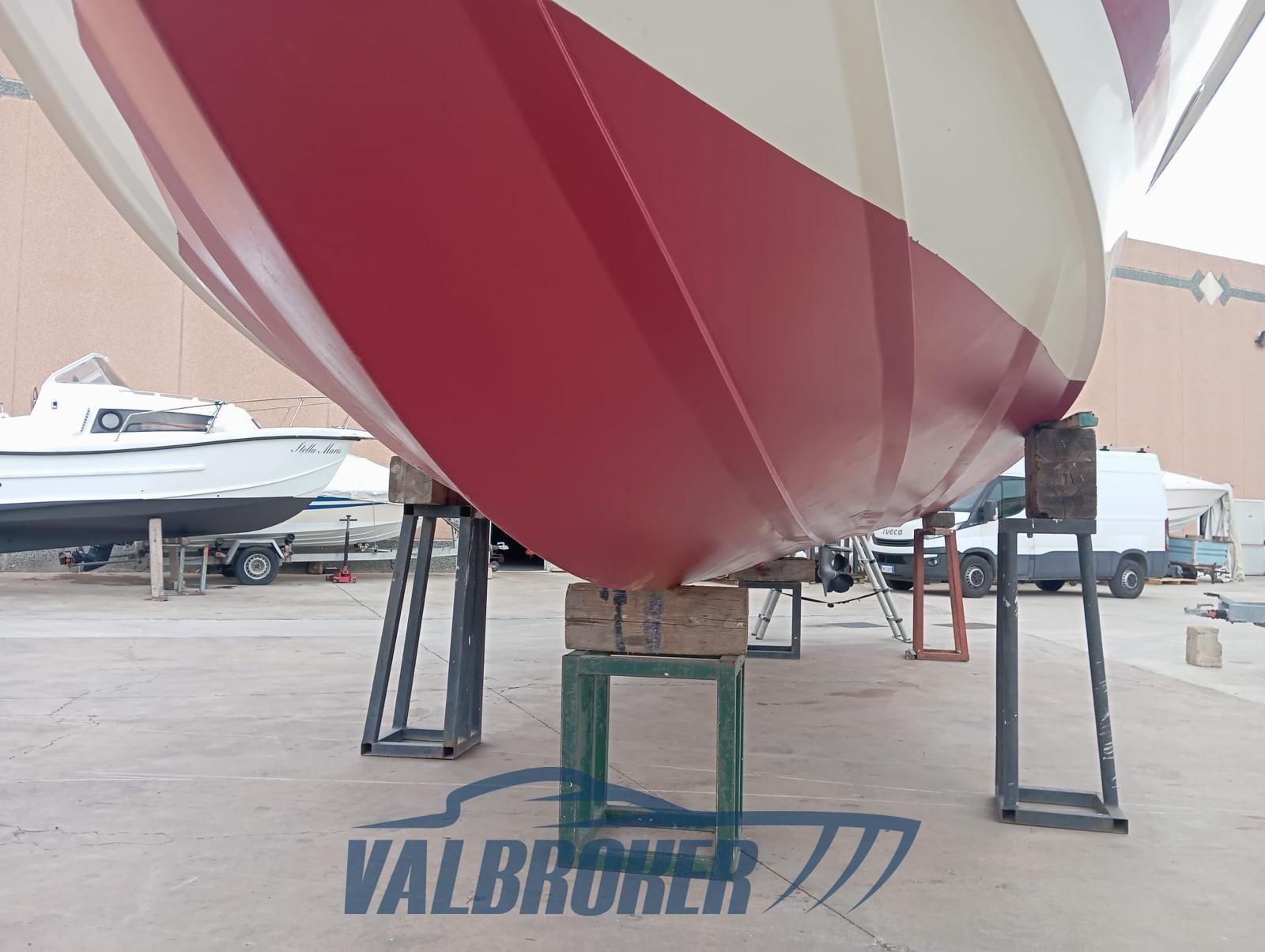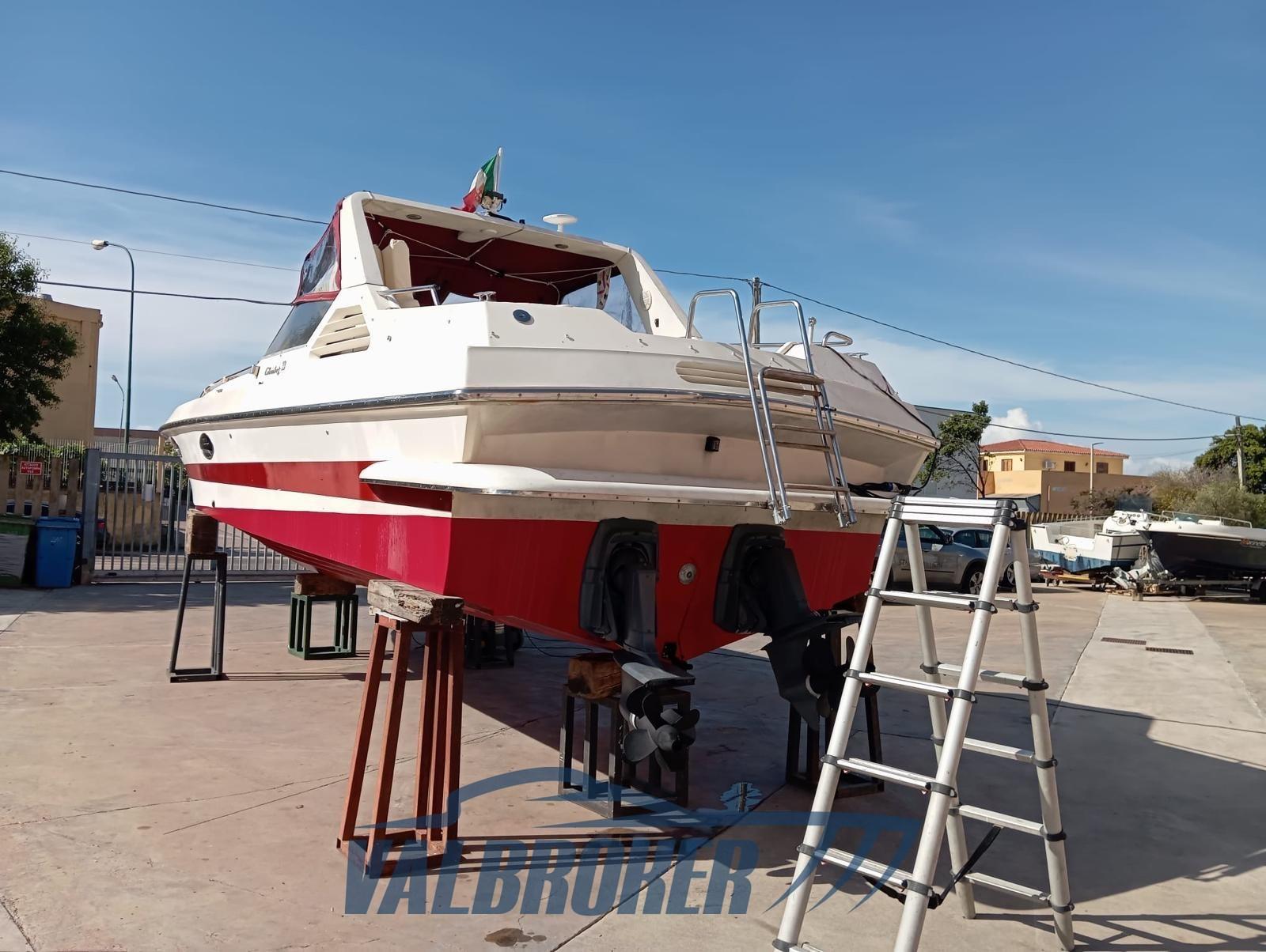 Colombo 33 visible en Sardaigne. Bateau à moteur du chantier naval italien historique de Colombo, très apprécié pour ses lignes élégantes et sportives. Propulsé par deux Volvo Penta 41, atterri en 2024 pour un entretien et un service exceptionnels (heures précédentes 800).