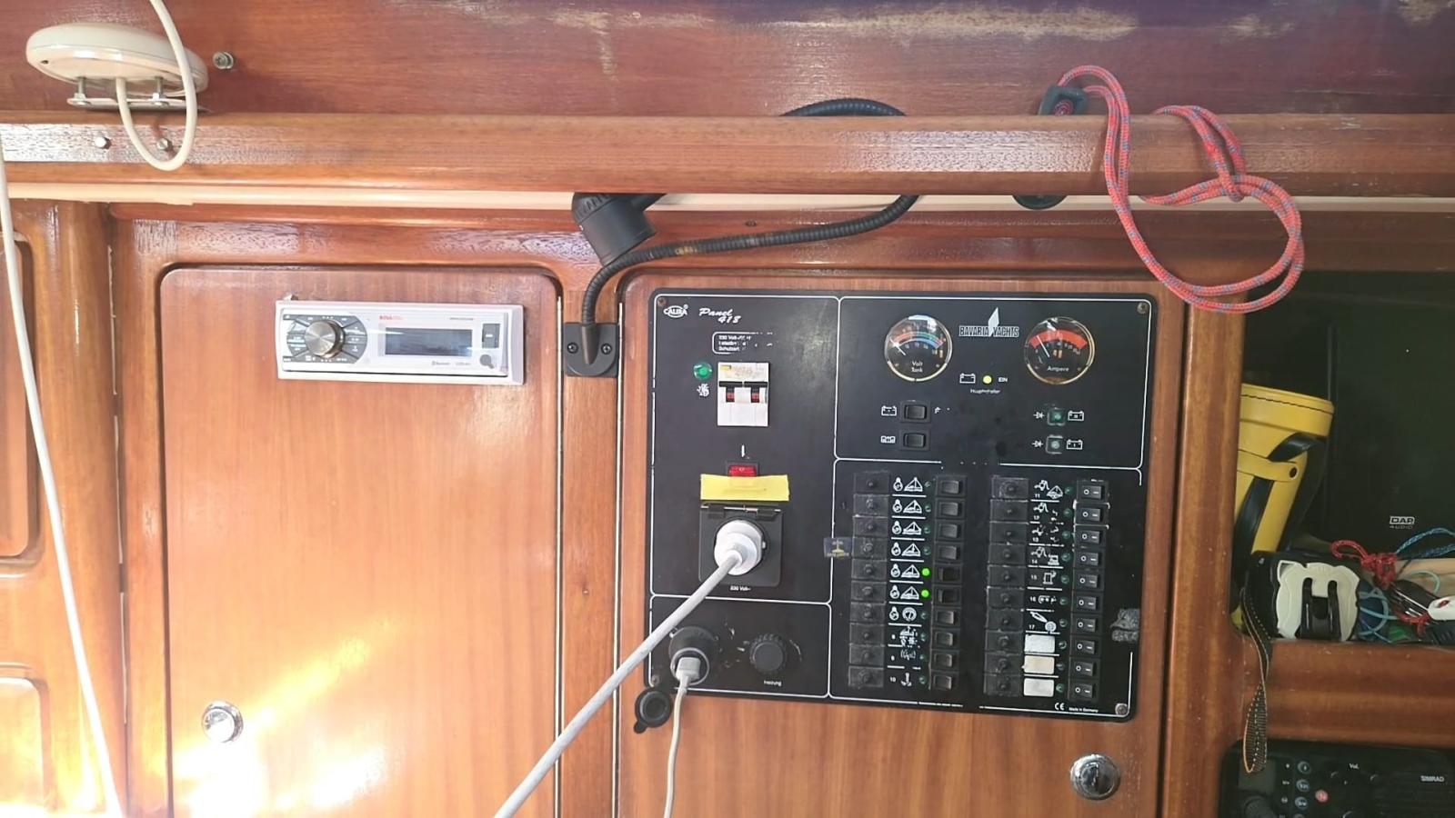 Alarme moteur, Ancre (con catena 40 mt), Eau sous pression, 3 Batteries (2 servizi + 1 motore agm), Douche de cockpit, Pompe de cale automatique, Onduleur, Guindeau électrique, Echelle de bain.